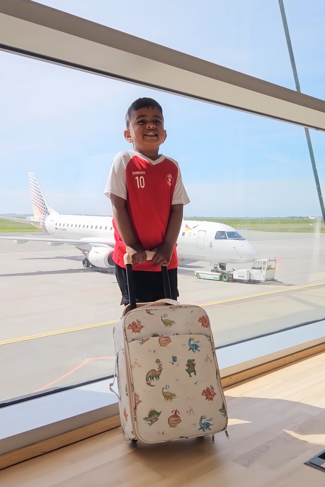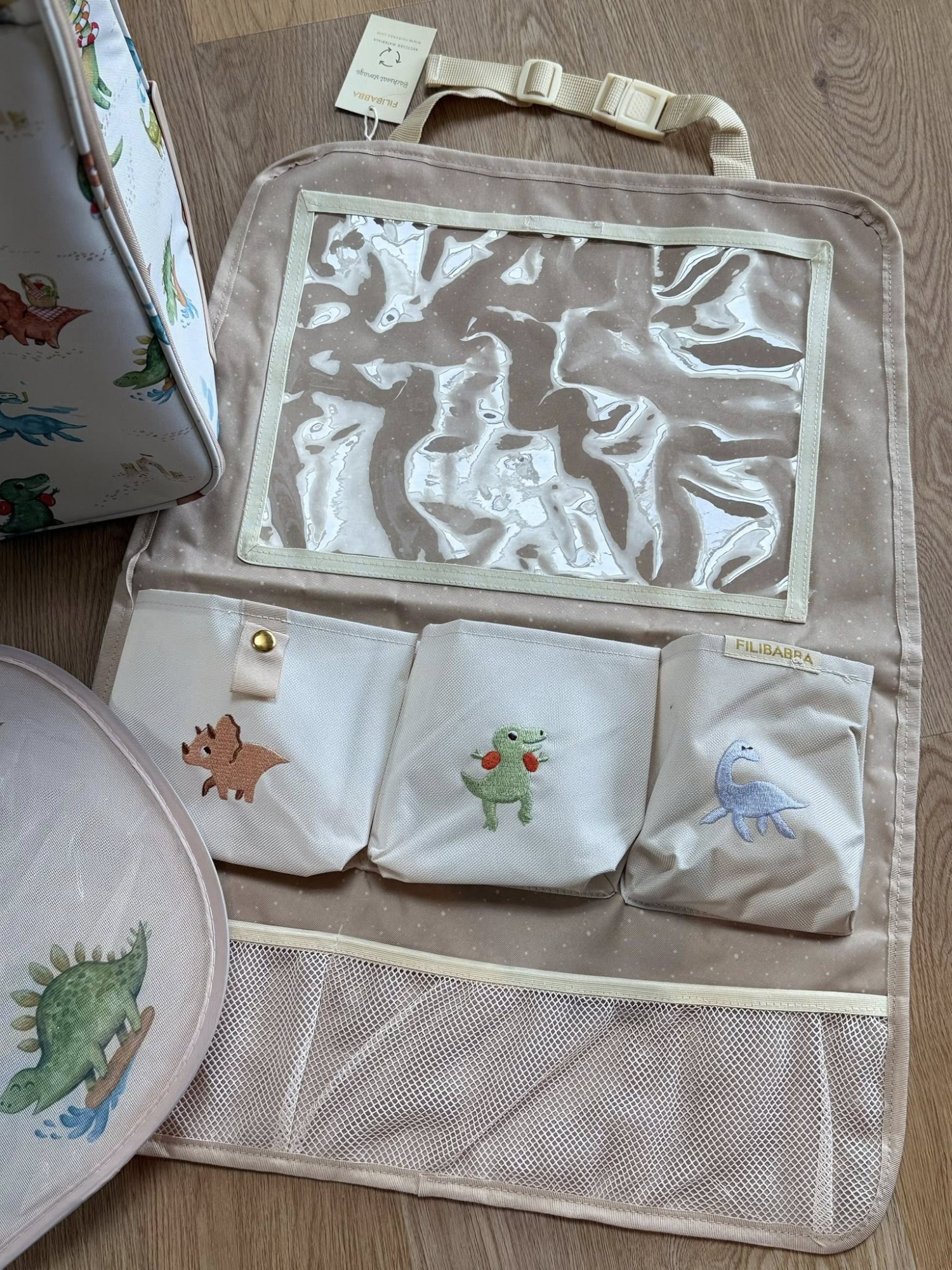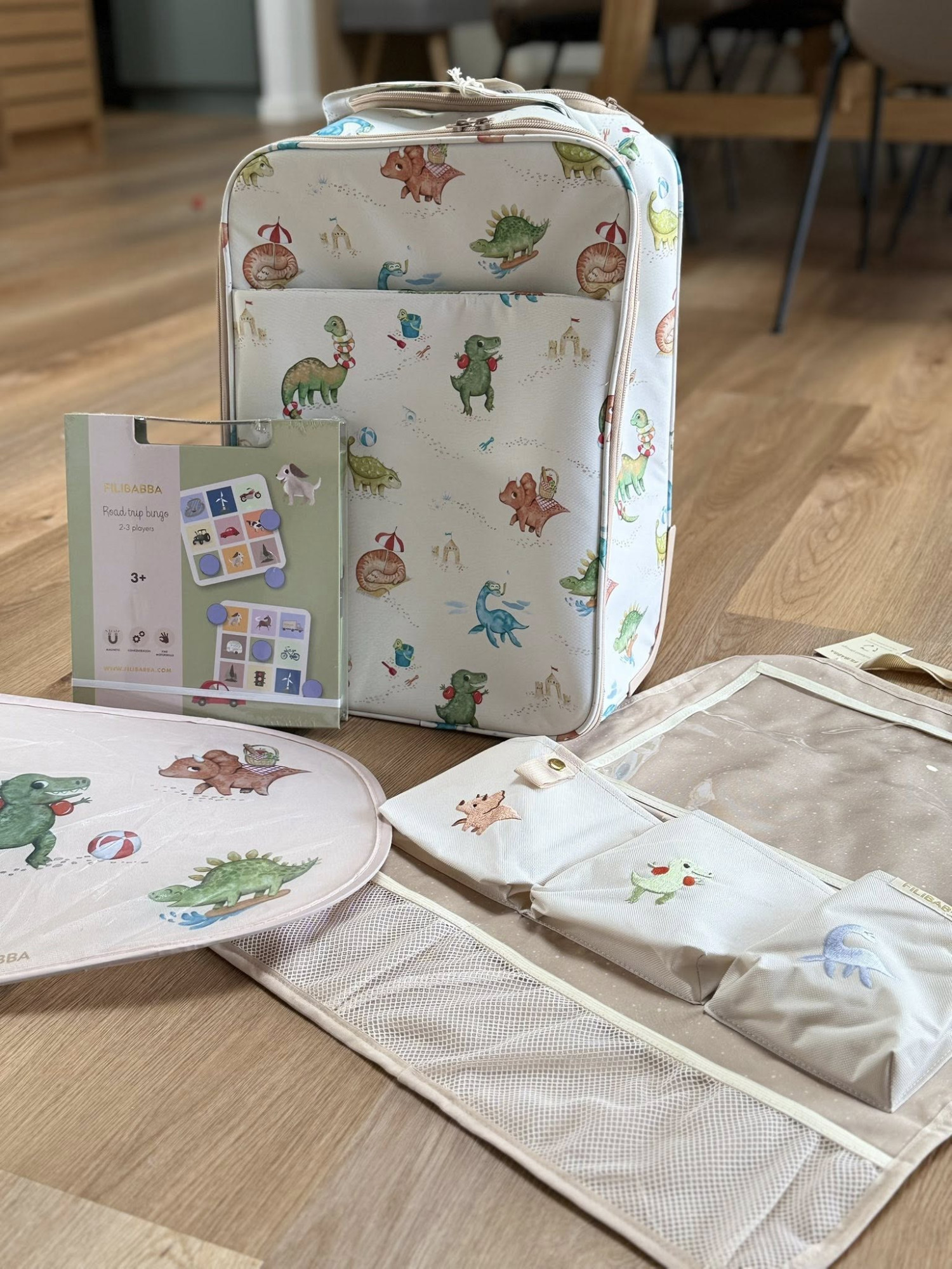 Noah pÄ 3 Är kastede straks sin kÊrlighed over den fine beach kuffert med dino-print, som passer perfekt til hans alder og er oplagt som hÄndbagage. Familien har ogsÄ testet den matchende organizer til ryglÊnet og det magnetiske Road Trip Bingo, som allerede er blevet en fast del af bilturene.