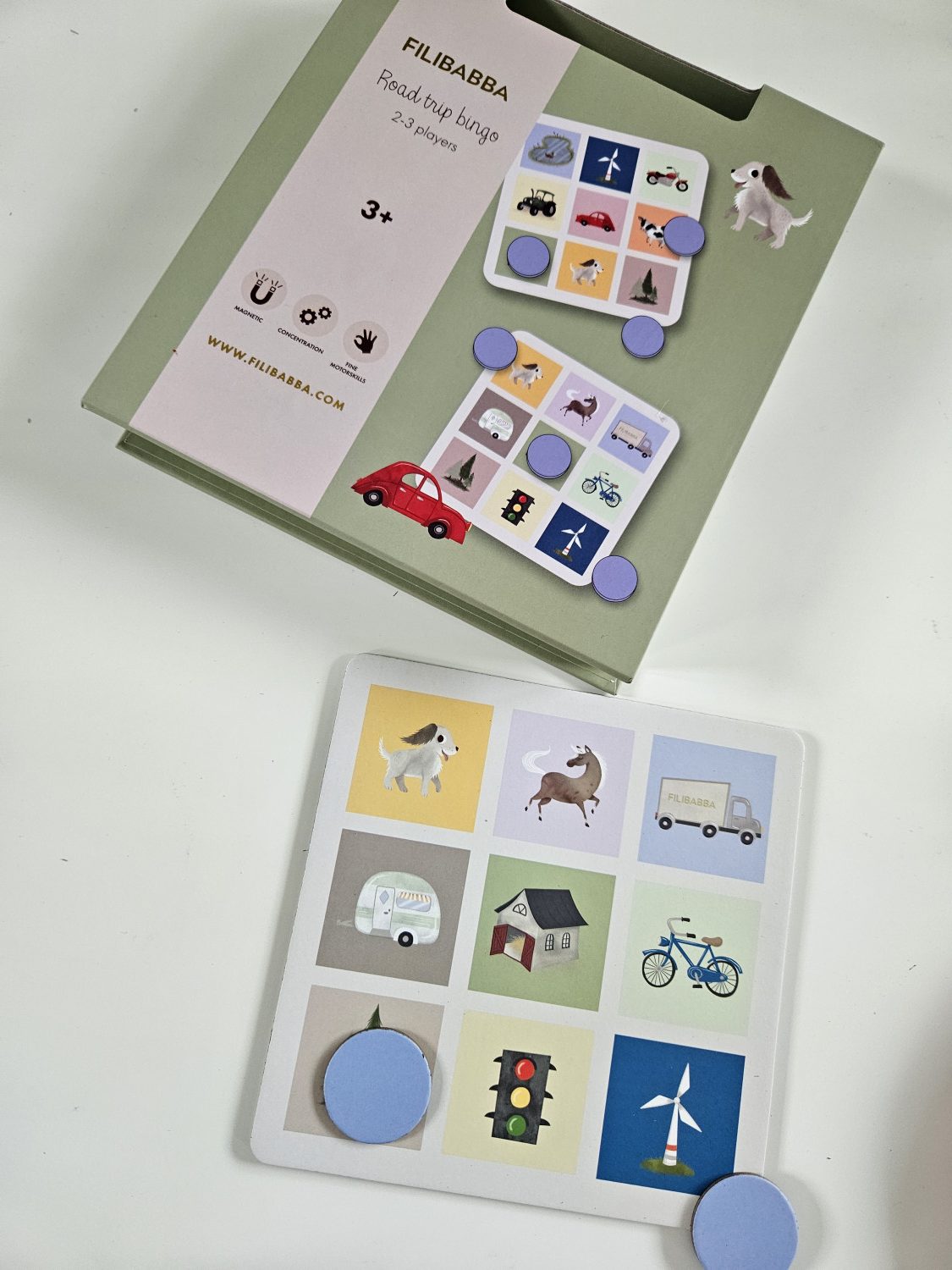 - Magnetisk spil Road Trip Bingo â et sjovt og skĂŠrmfrit spil, der gĂžr lange kĂžreture mere underholdende for bĂžrn.