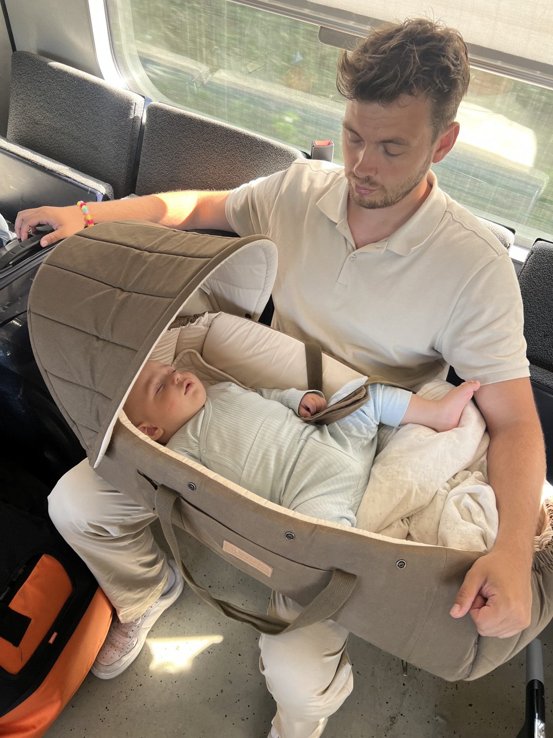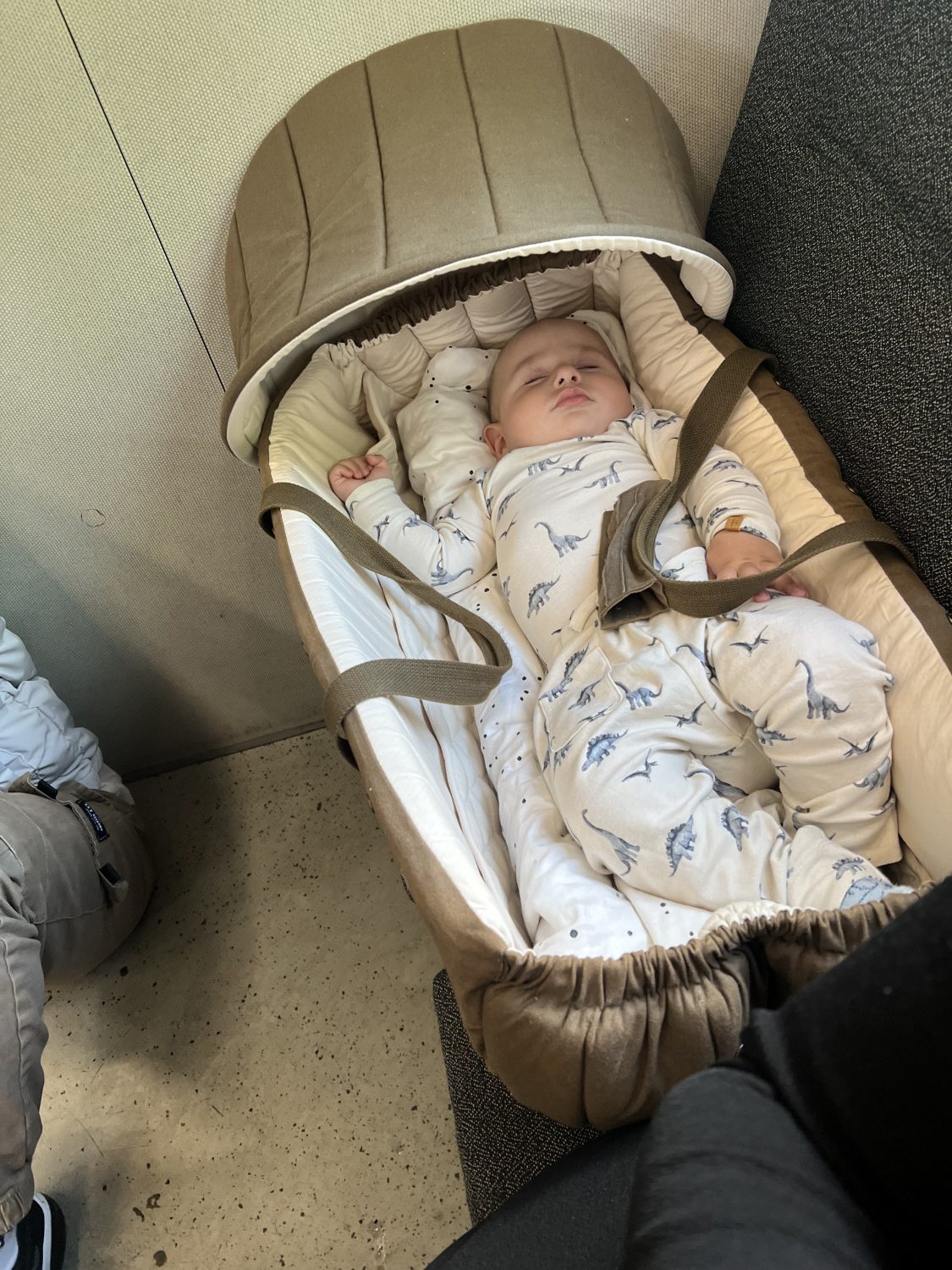 isĂŚr i lufthavnen, hvor vores 5 mĂĽneder gamle baby kunne sove trygt.â