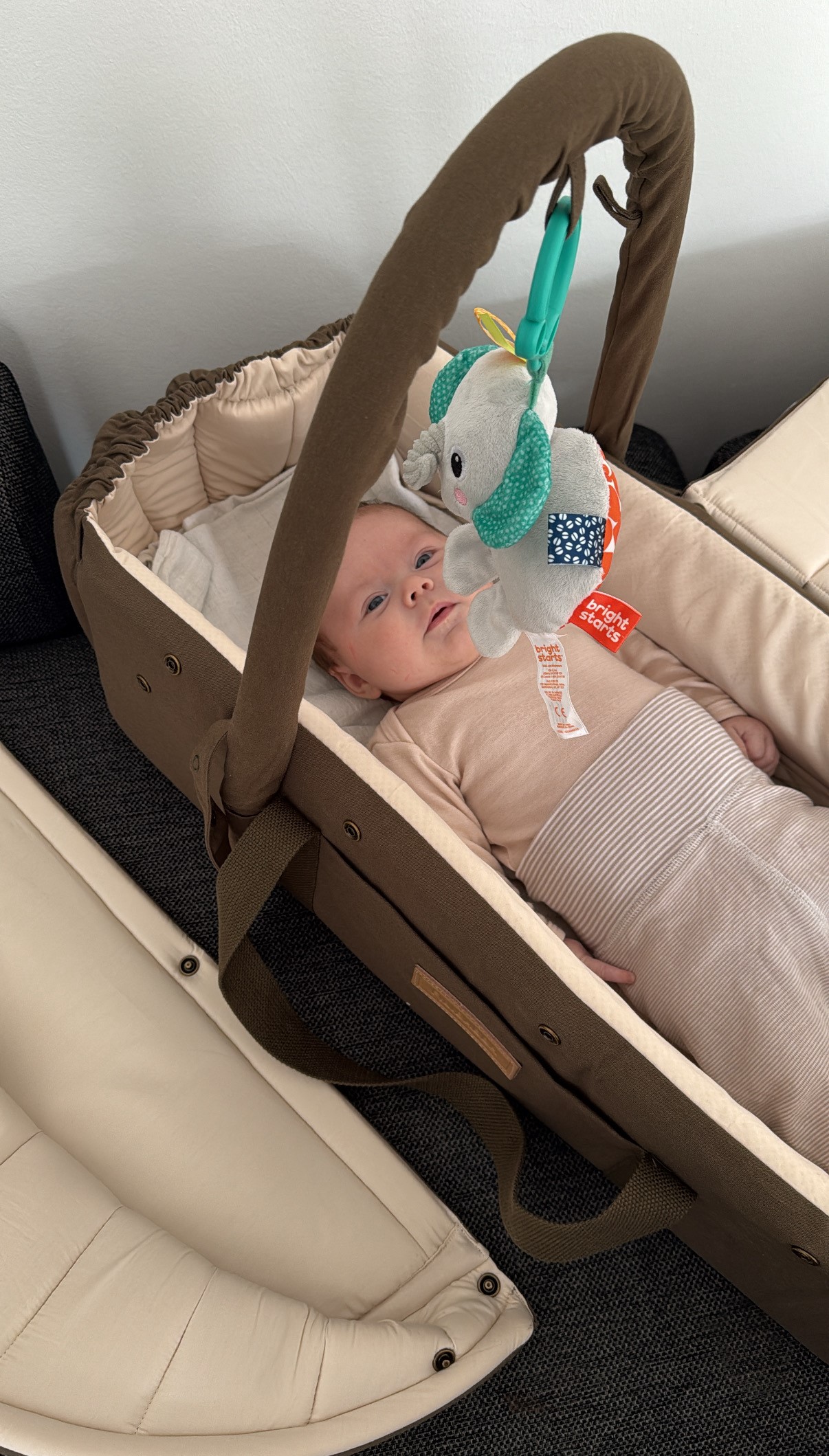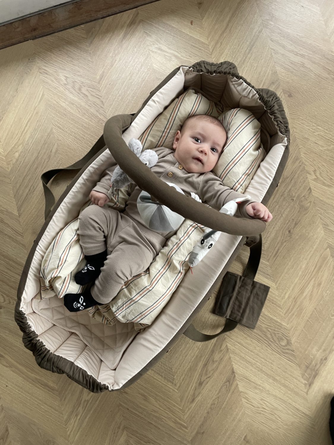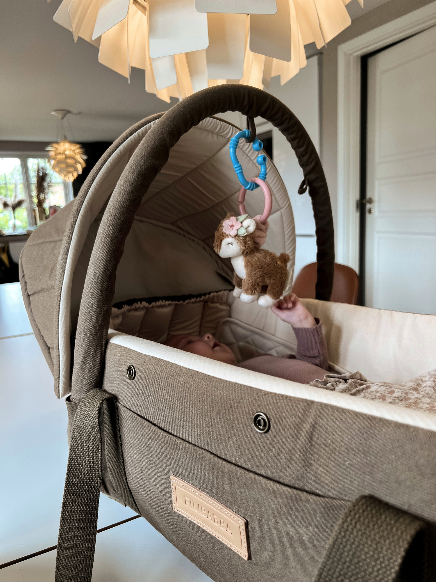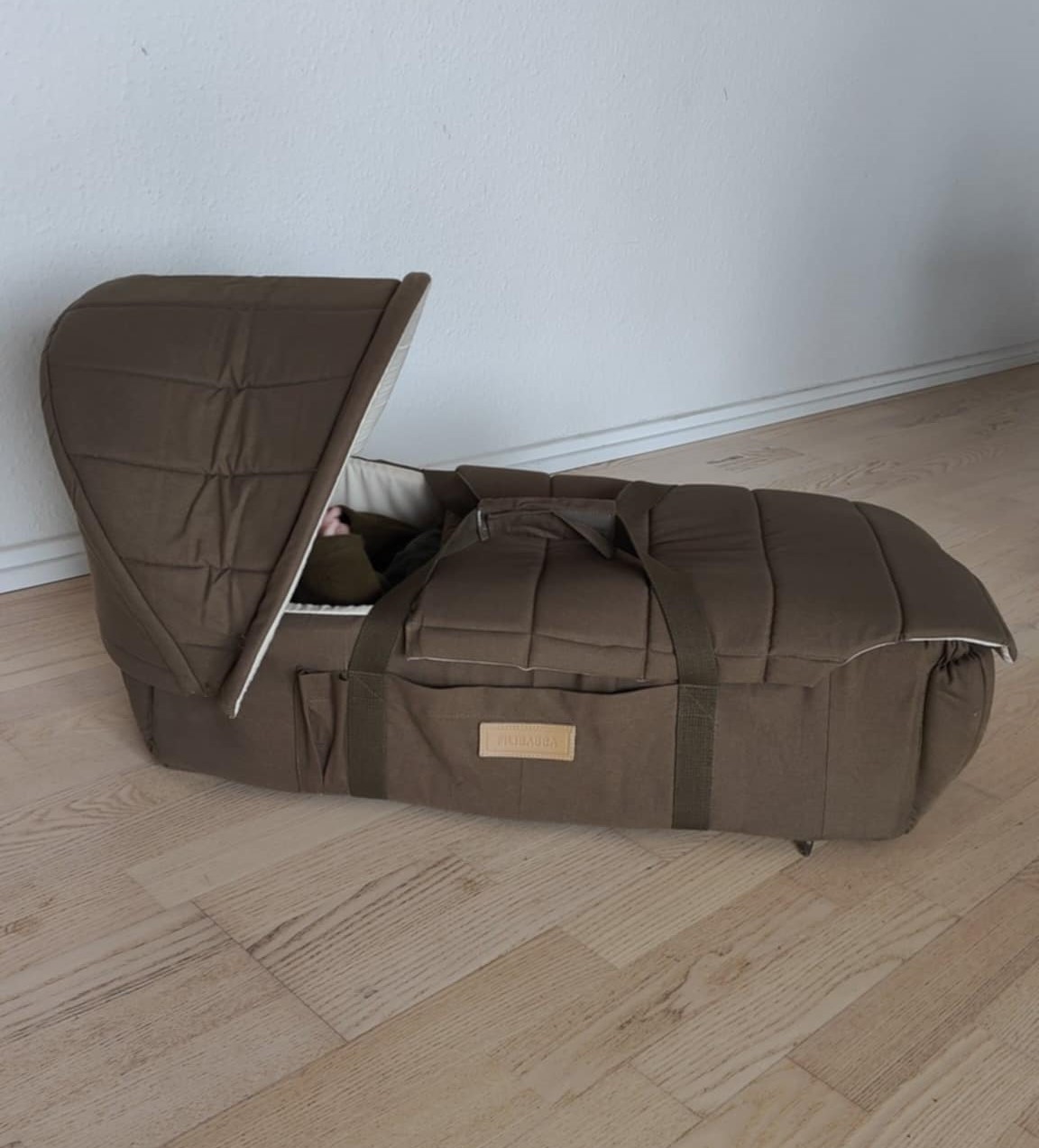 MEGET GOD Frida Swift Lift für generelt meget ros for sin fleksibilitet. Den fungerer büde som lift, babynest, sovested og legeomrüde og gør det nemt at flytte en sovende baby uden at forstyrre søvnen.
