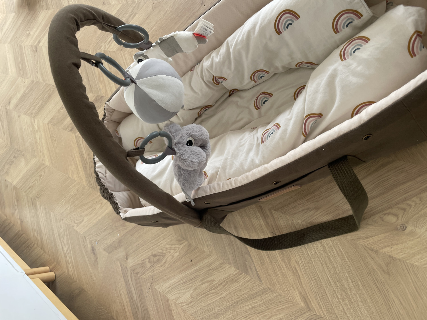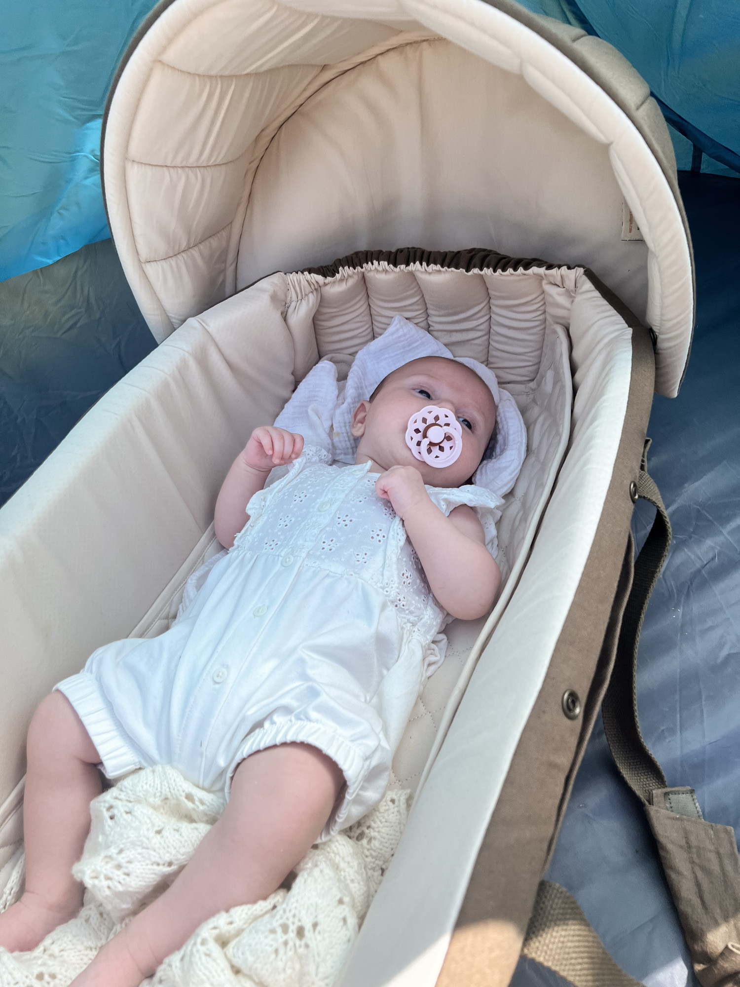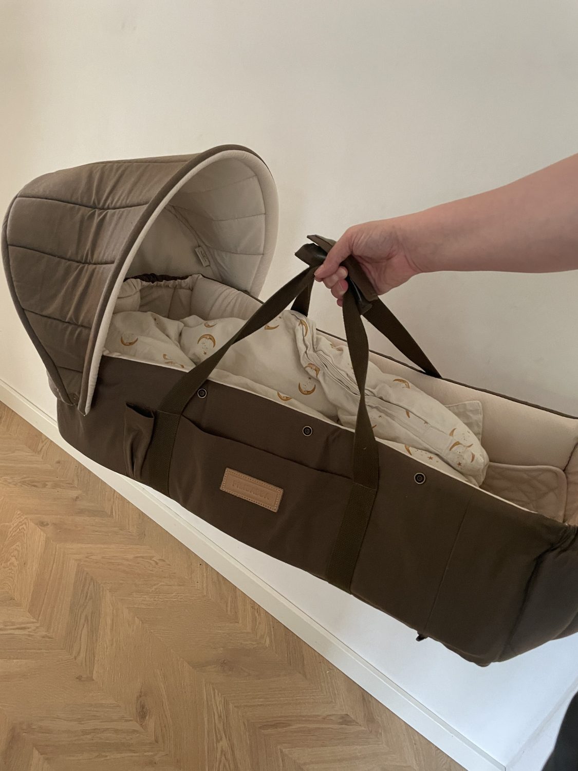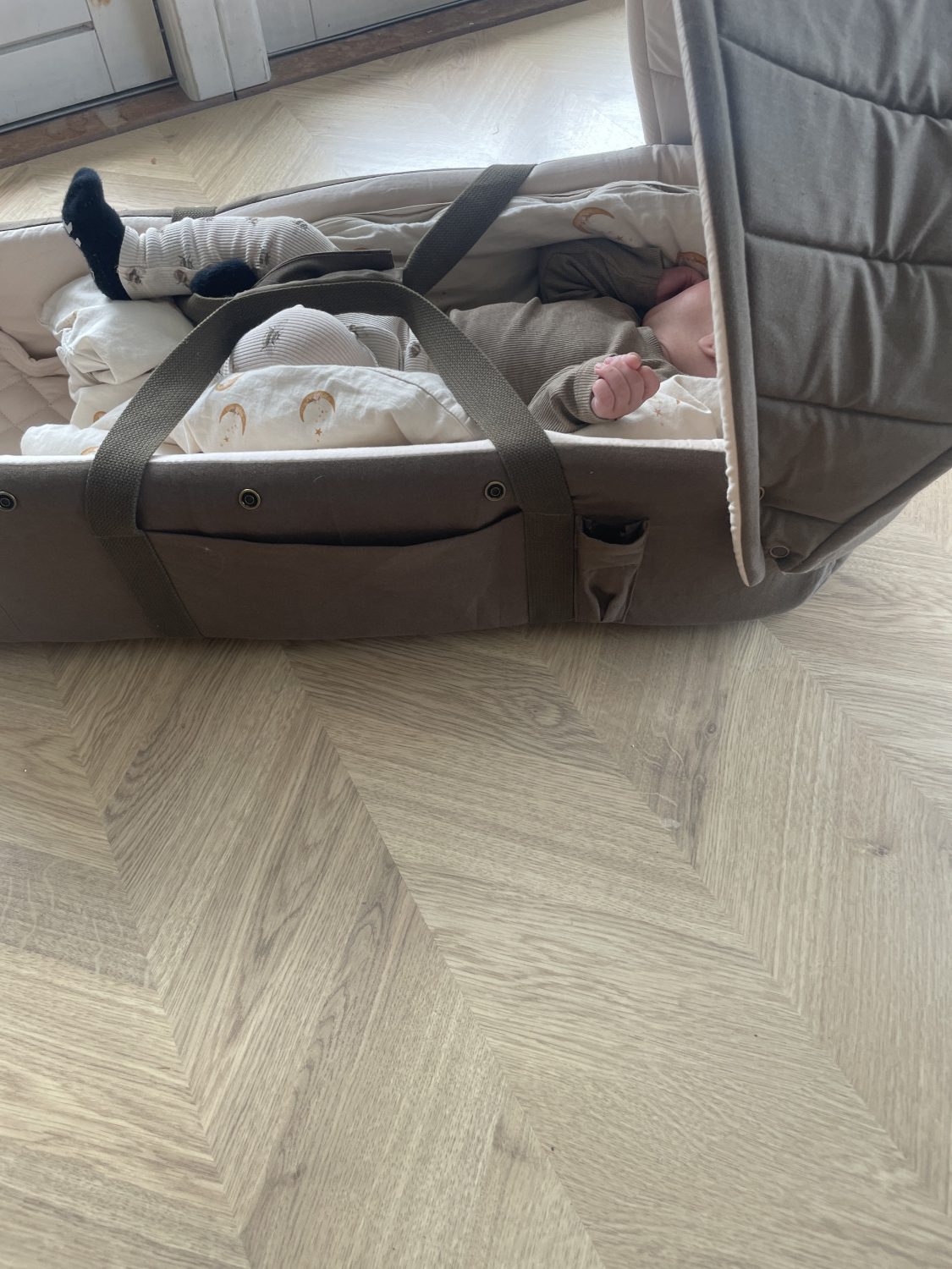 hvor baby kunne sove trygt i rejsesengen.â