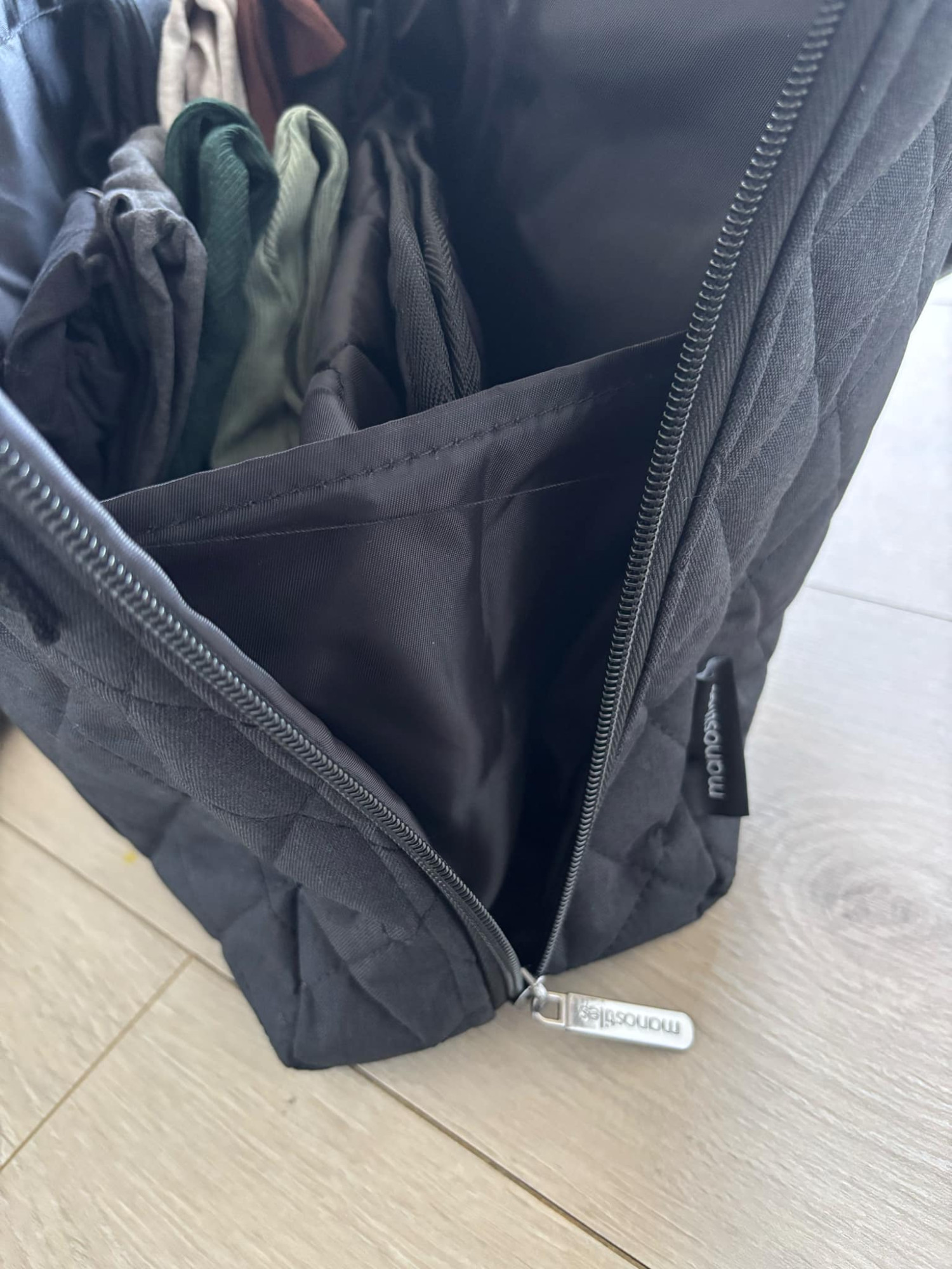 MEGET GOD Tasken er rummelig, praktisk og organiseret med flere rum, hvilket gĂžr den ideel til smĂ„bĂžrnsfamilier â ogsĂ„ med flere bĂžrn.