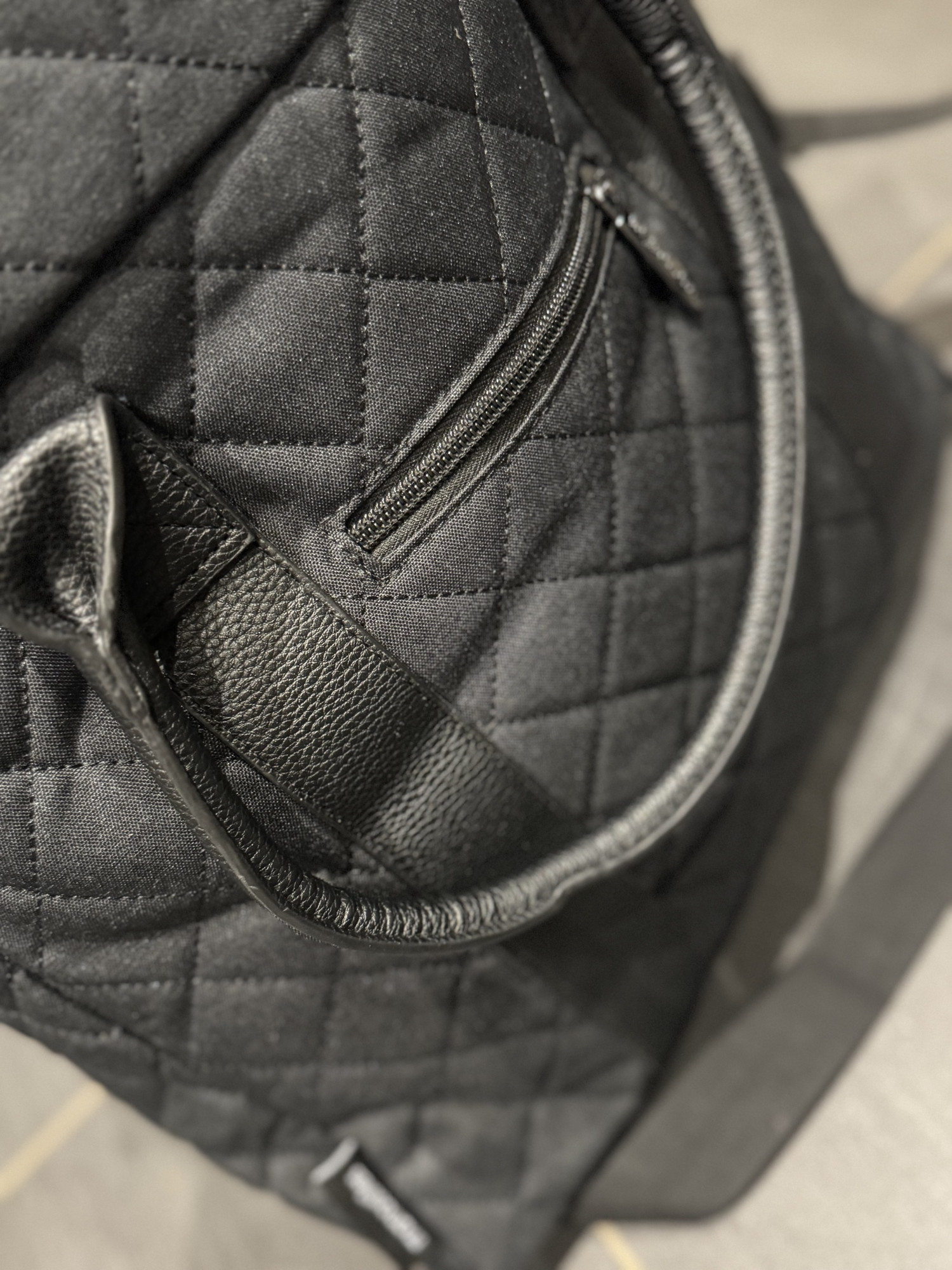 Det quiltede design og lĂŠderhankene giver samtidig tasken et stilfuldt udtryk.