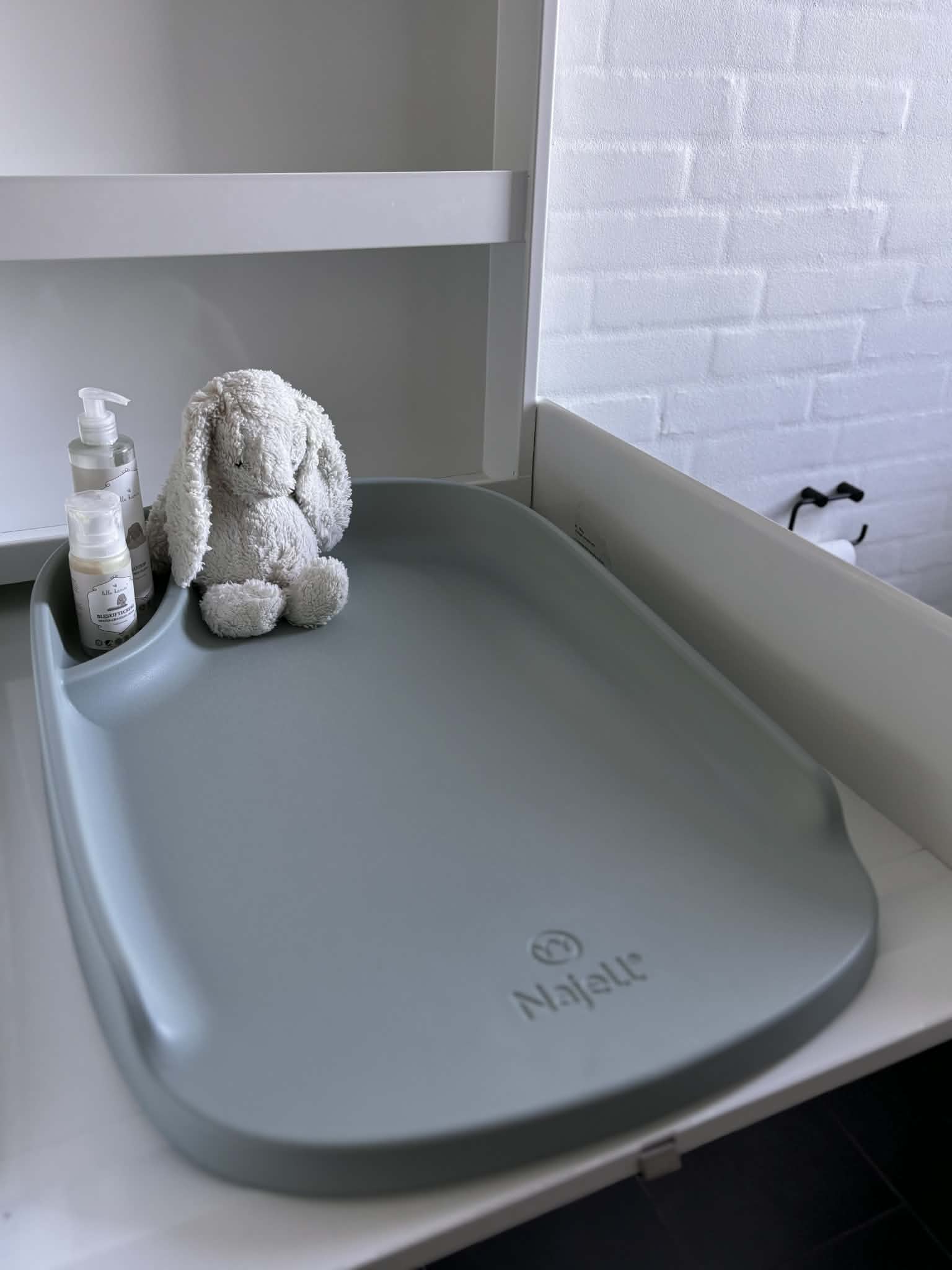 Puslepuden er designet med skridsikre fødder og forhøjede kanter, som skaber en stabil og tryg oplevelse â bĂĽde for barn og forĂŚldre.