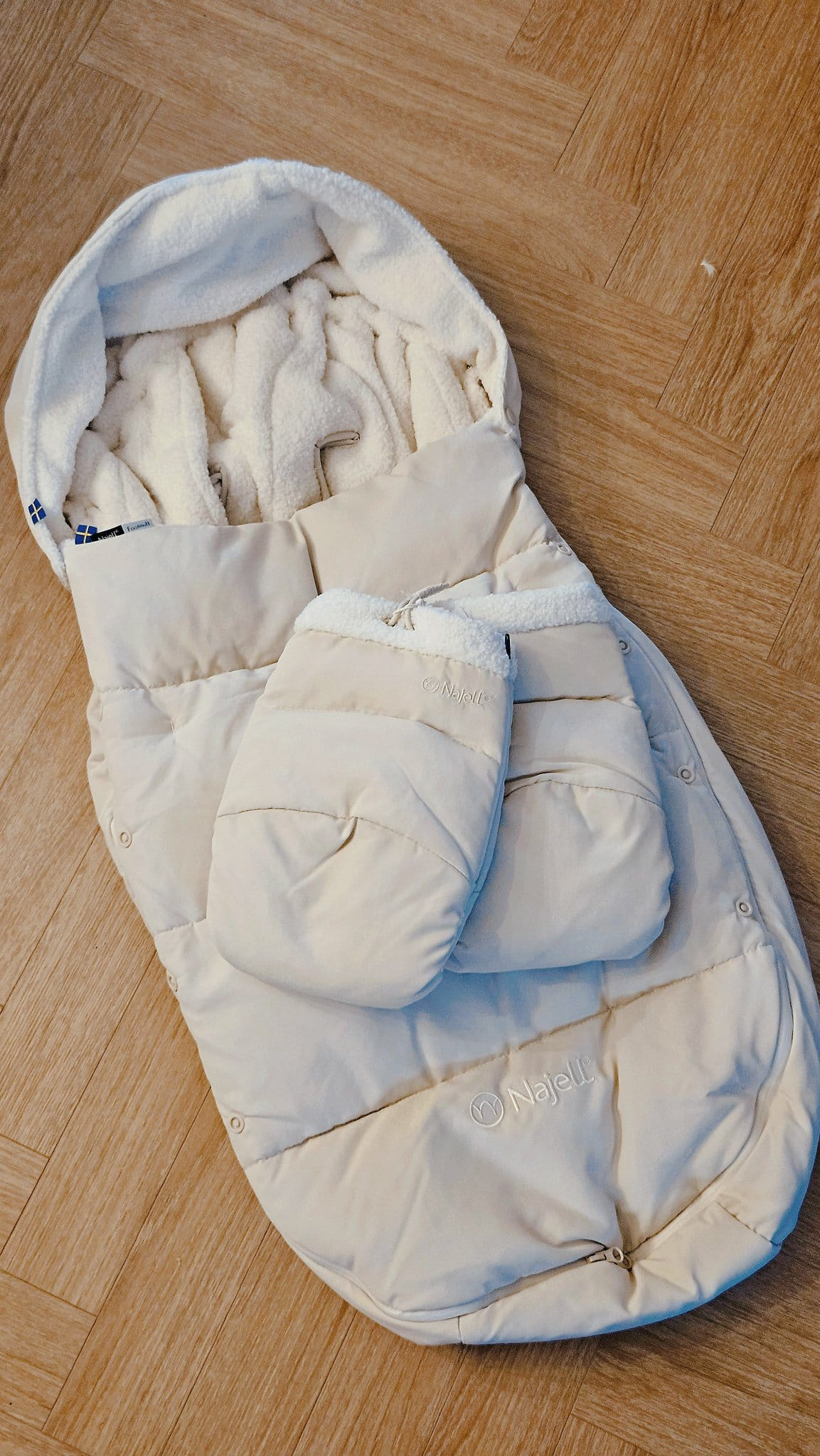 Flere af vores testere har testet den nye lÌkre kørepose i dun fra NAJELL samt matchende hündvarmere.