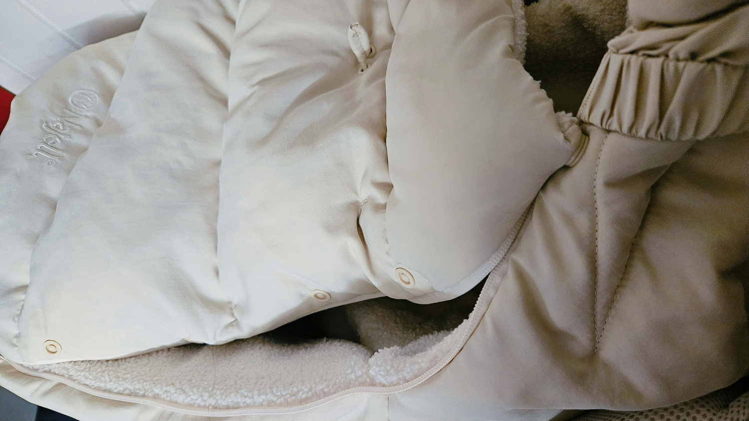 Materialerne føles solide og slidstÌrke, yderstoffet er vind- og vandafvisende, og indersiden er foret med blød teddy/fleece, som giver et lunt og indbydende miljø for barnet.
