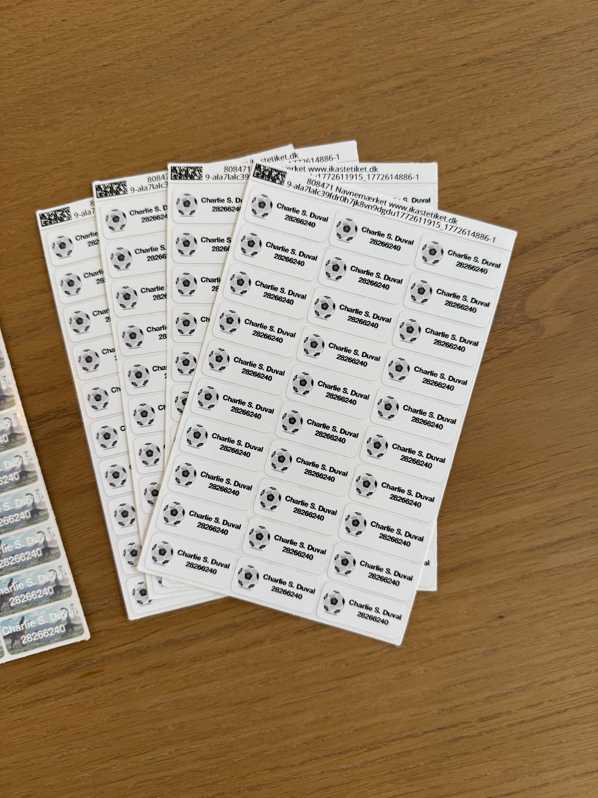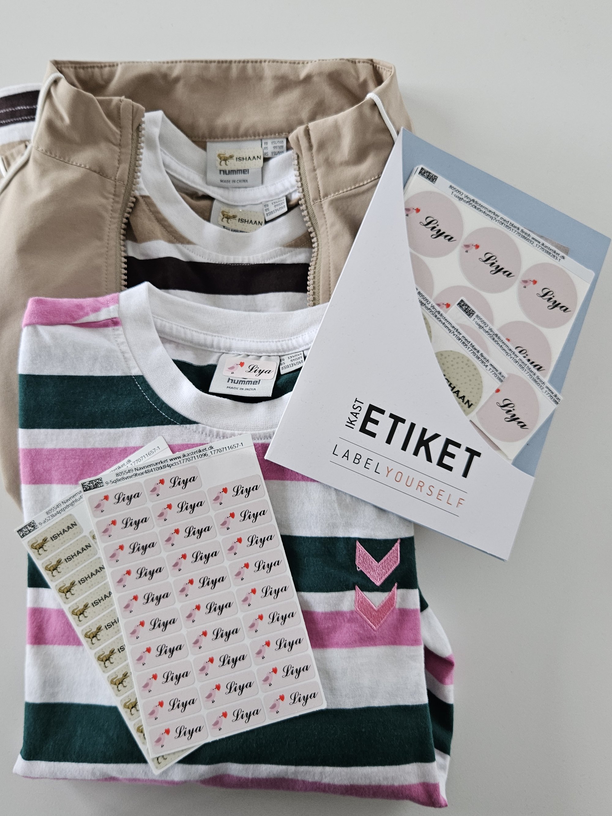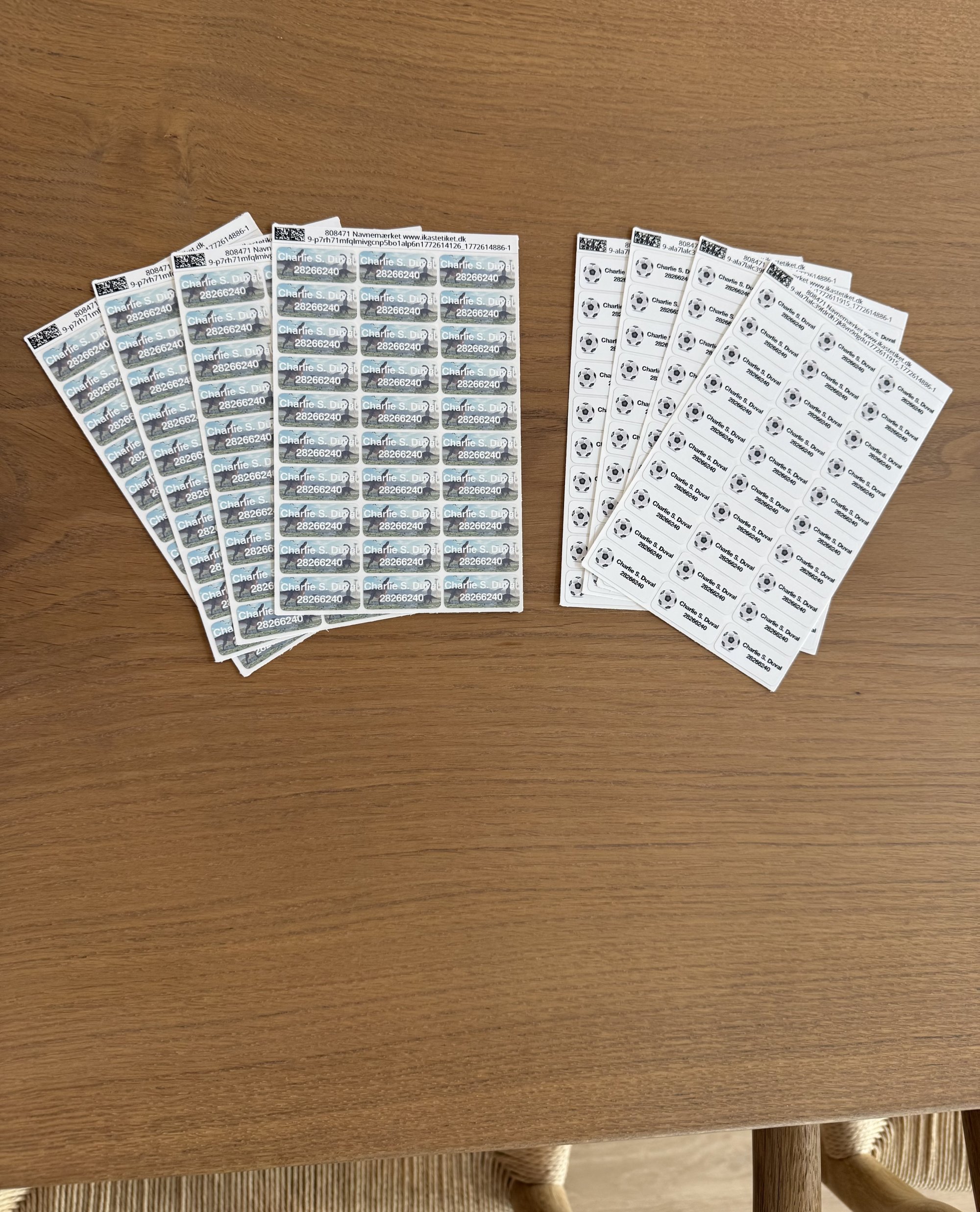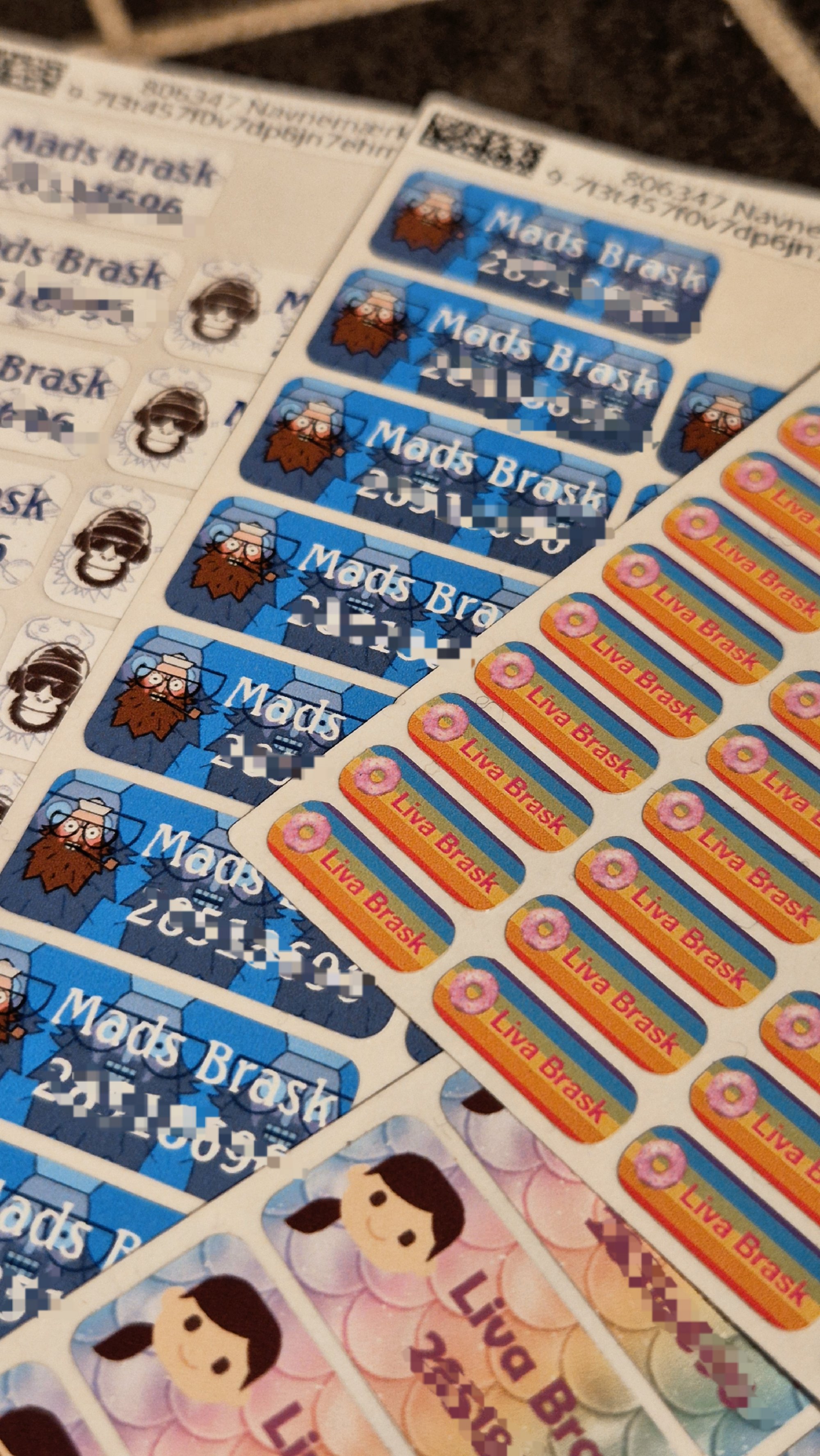 Navnemærker og klistermærker der skaber overblik i garderobe og skoleliv