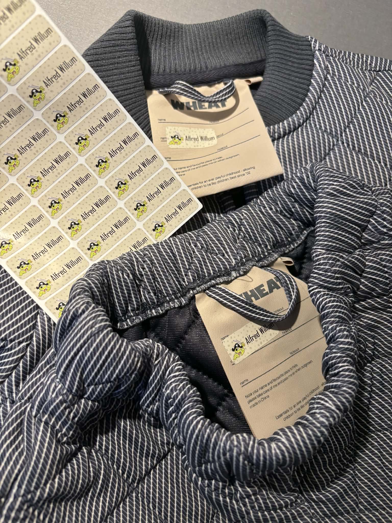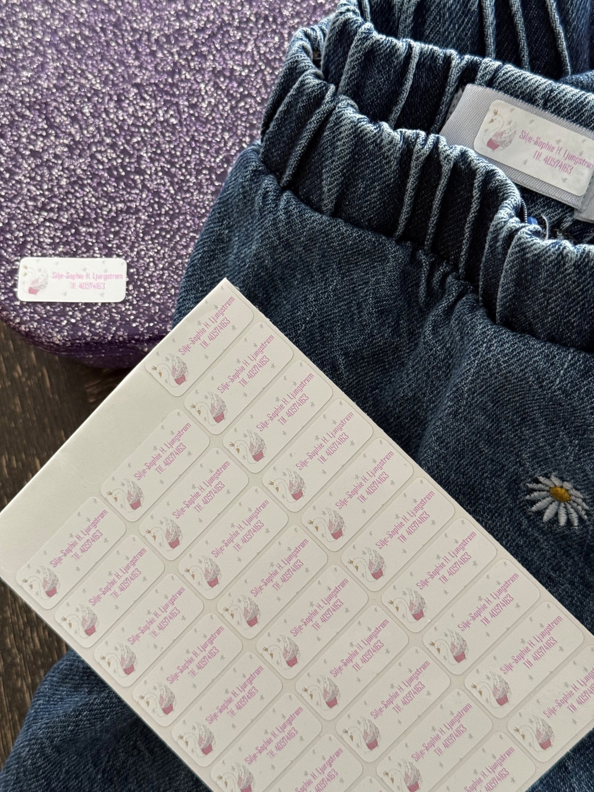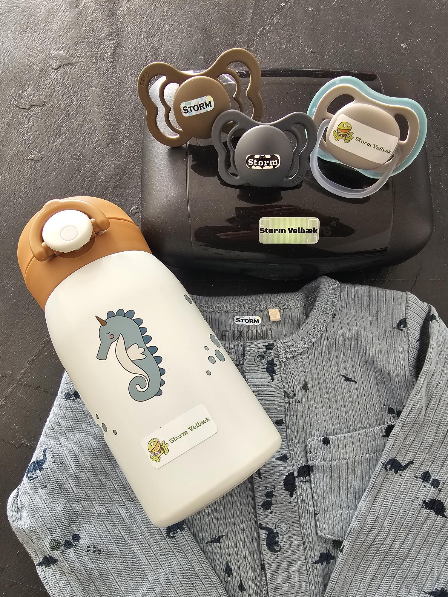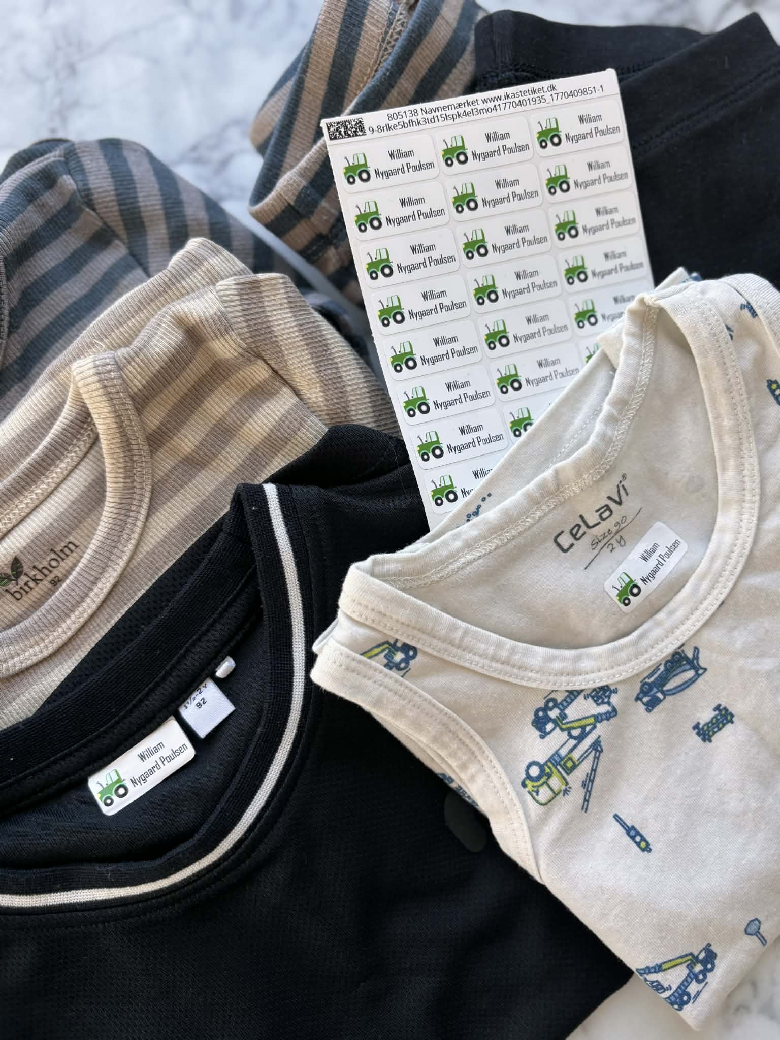 Navnemærker og klistermærker der skaber overblik i garderobe og skoleliv
