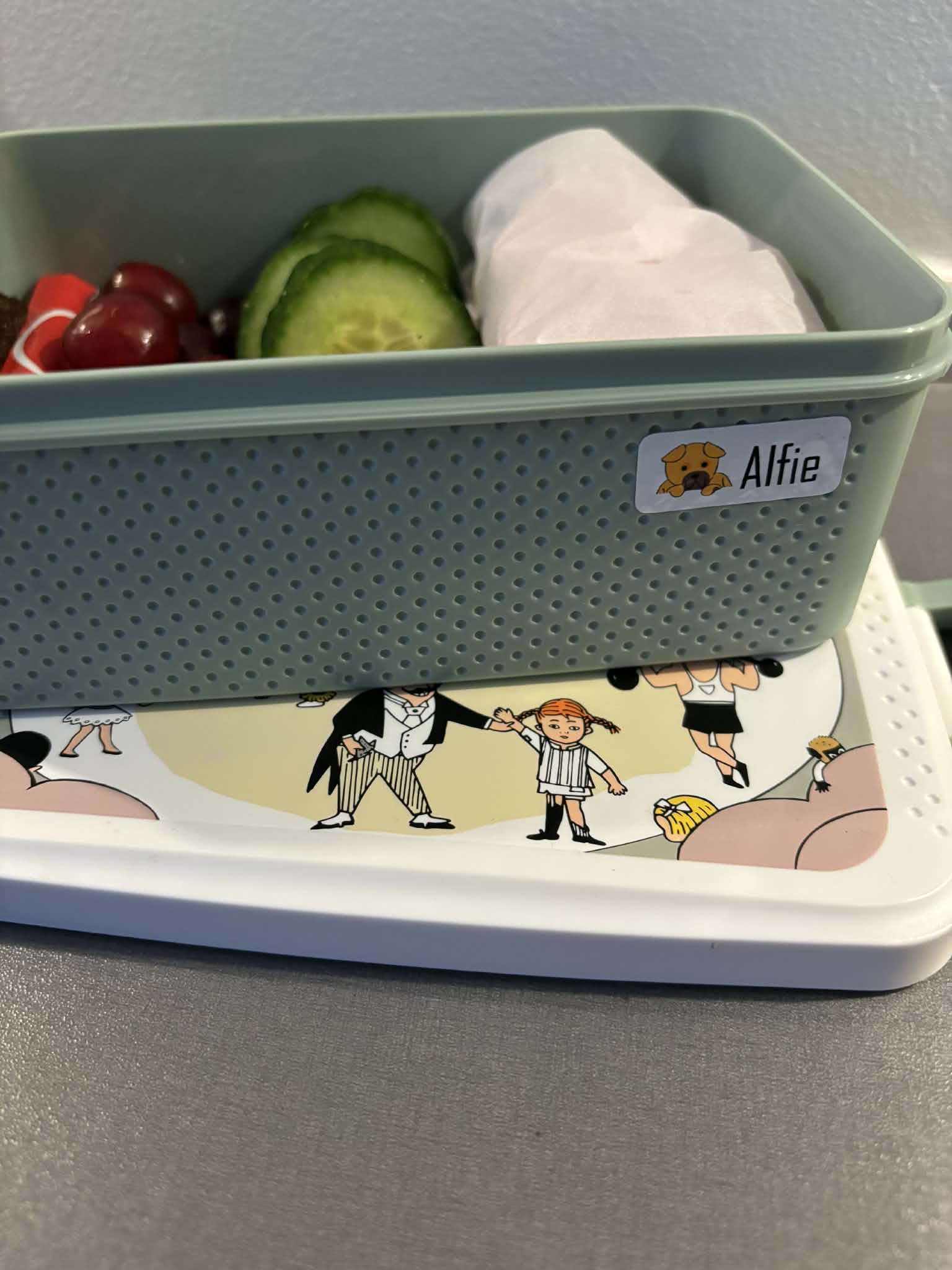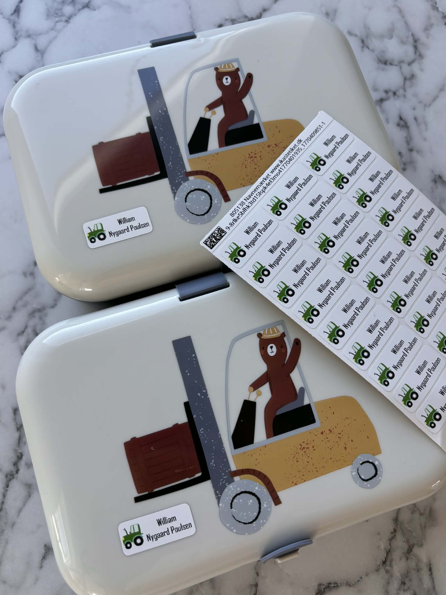 Hun fremhæver især, at mærkerne sidder rigtig godt fast, både i vaskemaskine og opvaskemaskine, og at det er nemt at bestille dem i et design, der passer til barnets interesser. Da hendes søn var mindre, var det en stor hjælp, at han kunne kende sine ting på motivet, selv før han kunne læse sit navn.