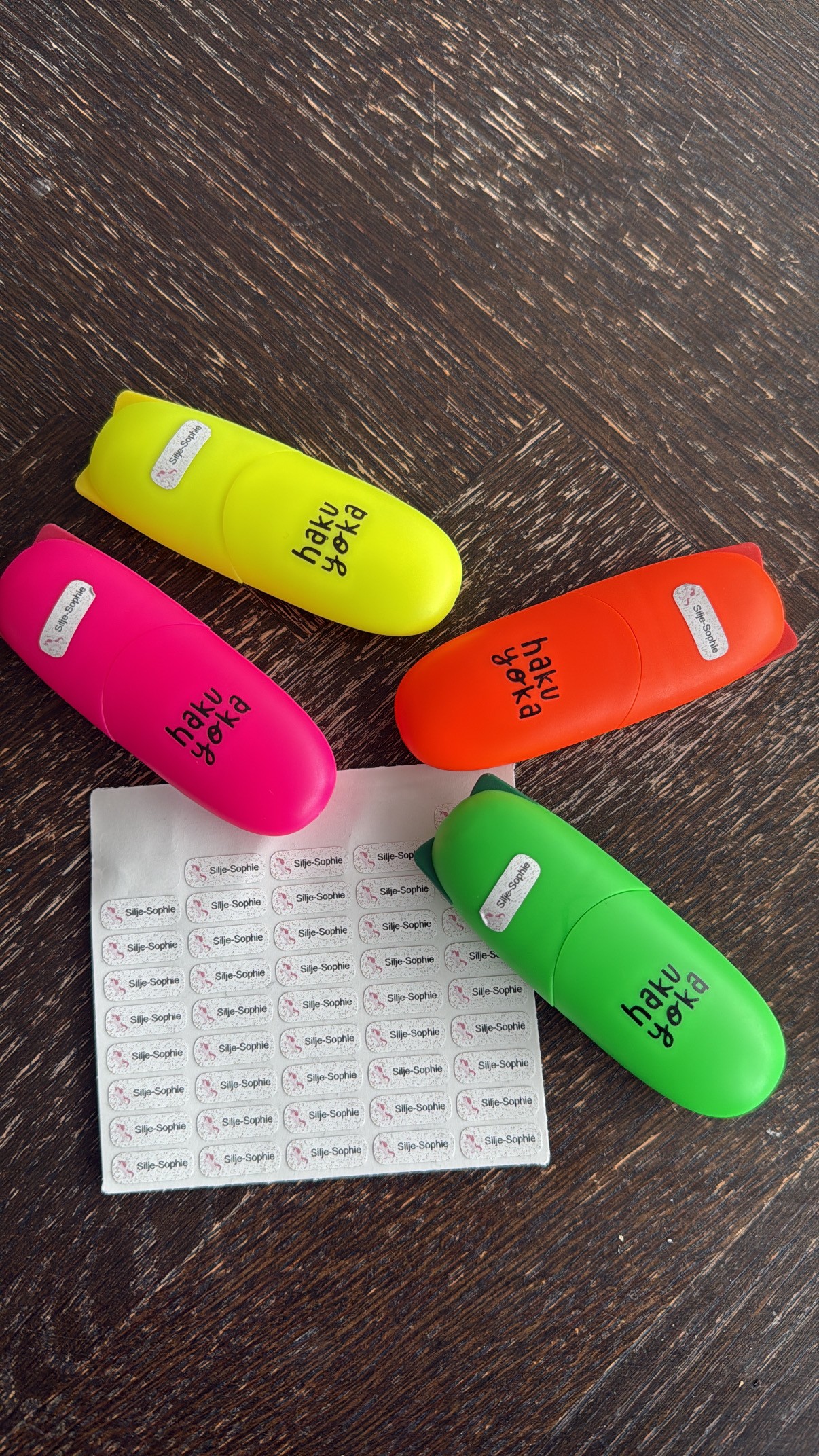 Som noget nyt har de testet minimærker, og det er især blevet en favorit til de små ting i penalhuset og til hårpynt, hvor almindelige navnemærker ofte er for store.