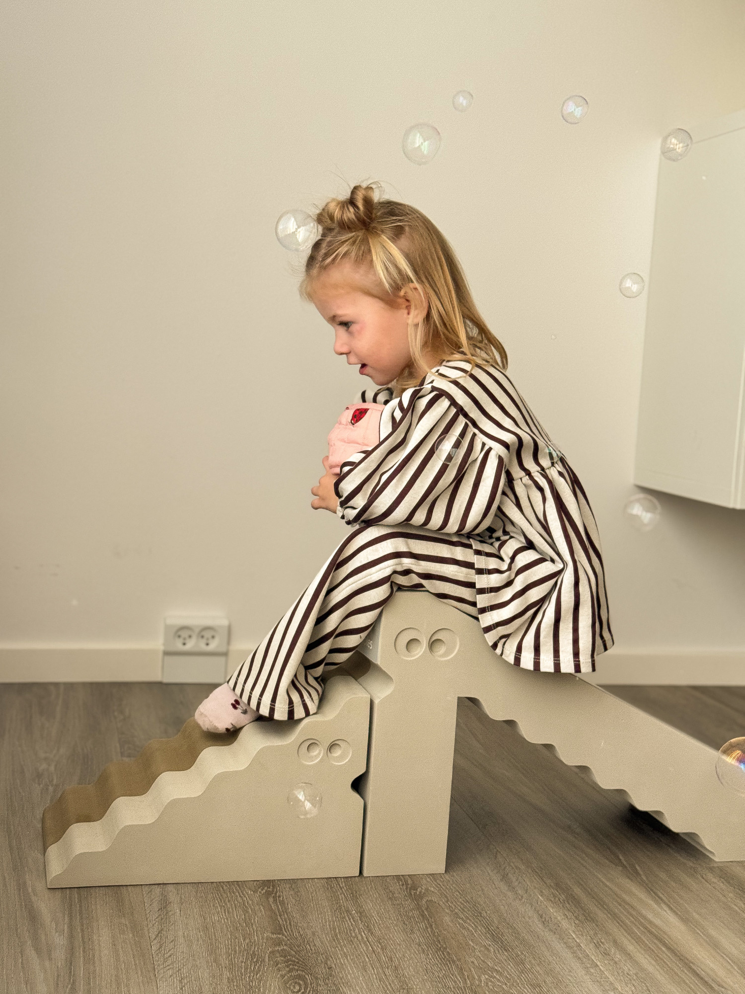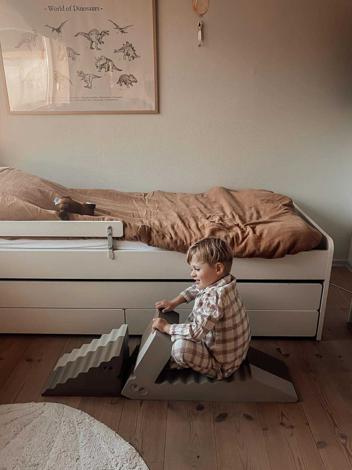 Flere af vores testfamilier har den seneste mĂĽned testet Dino Sand Grey (1.599 kr.) og Dino Plade (129 kr.) fra bObles â et motorikmøbel designet til at kombinere leg, bevĂŚgelse og udvikling. Dinoen kan bruges som balanceelement, siddemøbel, klatrestativ og rutsjebane, og med den medfølgende akrylplade kan den forvandles til en glat slide, der giver ekstra fart i legen.