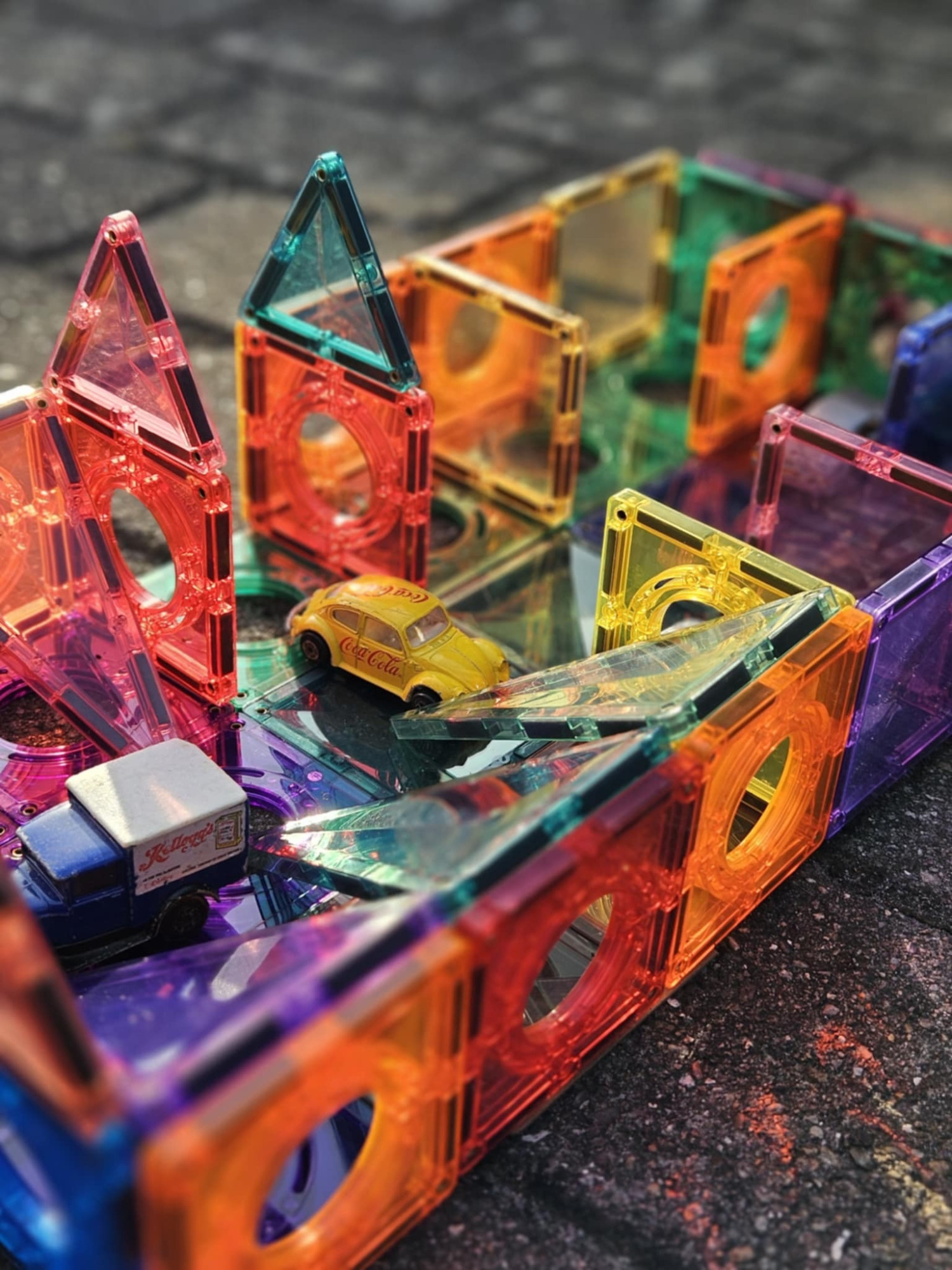 Flere familier fremhæver især, at Connetix Tiles skaber leg, der kan udvikle sig i takt med barnet – fra simple konstruktioner til mere avancerede byggeprojekter.