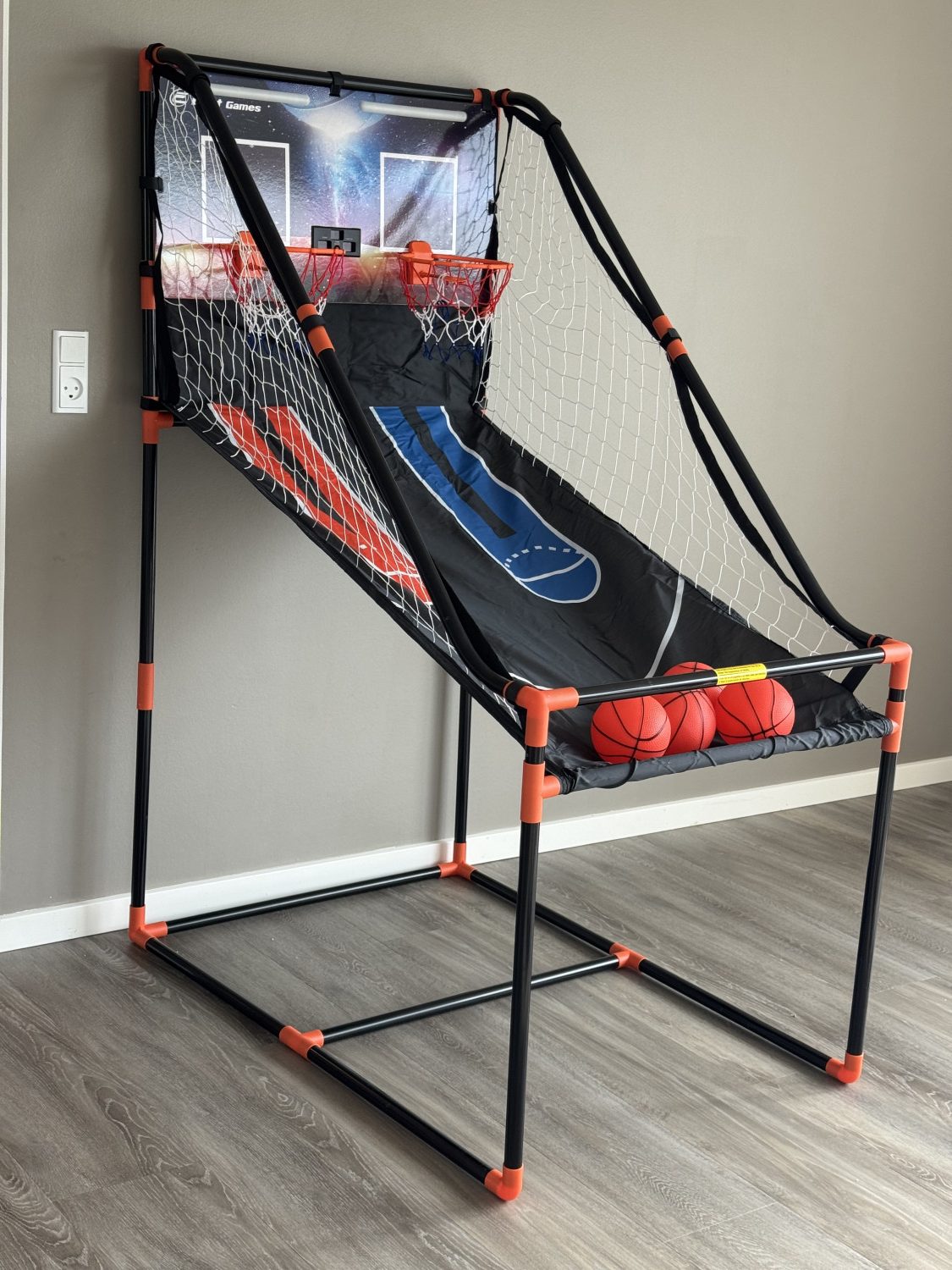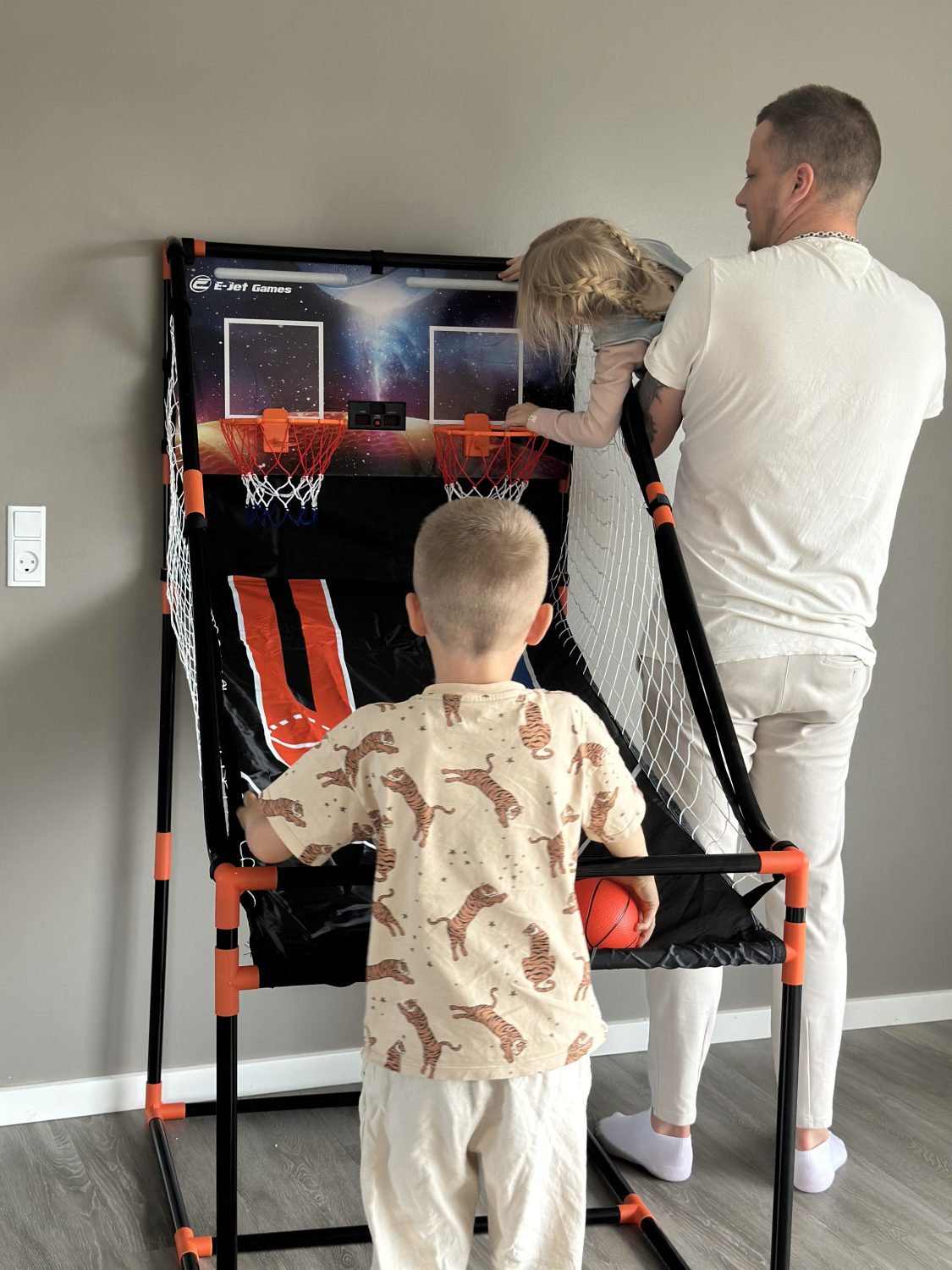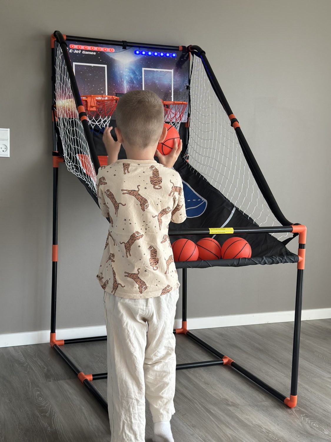 Hvis dine børn elsker fart, konkurrence og boldspil, er Electronic Arcade Game Basketball Double Shot et spil, der hurtigt kan blive samlingspunktet derhjemme. Det elektroniske basketspil er designet til to spillere og kombinerer bevĂŚgelse, pointjagt og lyseffekter i ĂŠt underholdende setup. Med LED-lys, lydeffekter og digital pointtavle føles det nĂŚsten som en mini-arkade derhjemme â og netop den følelse er en stor del af oplevelsen.