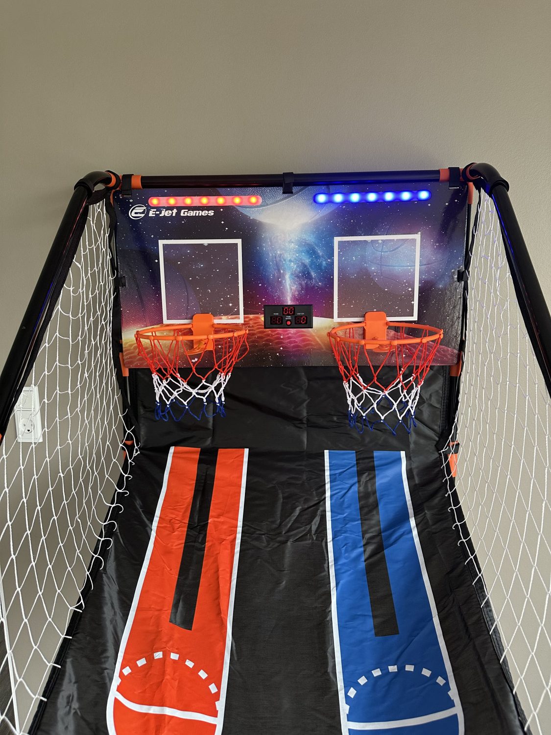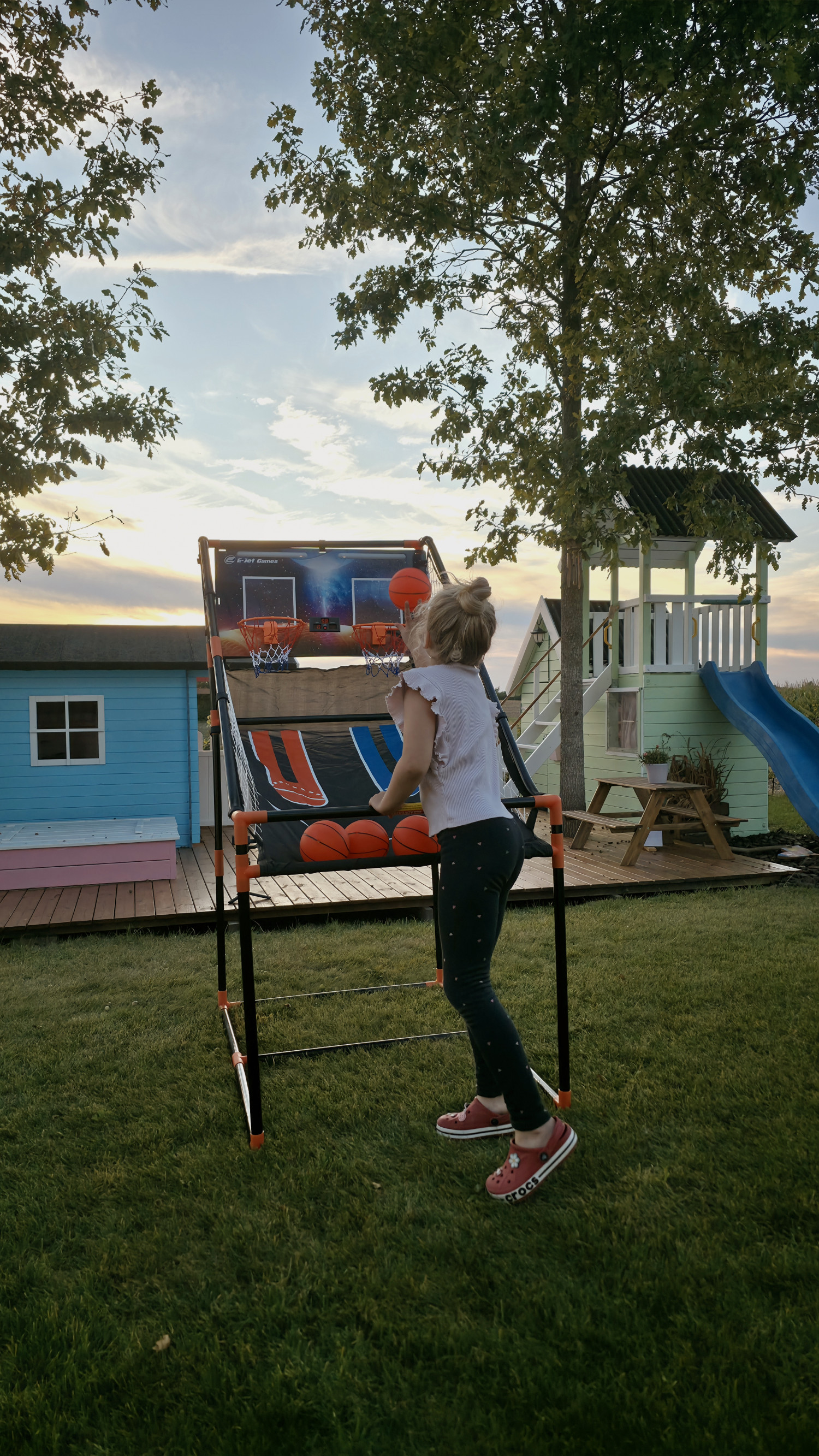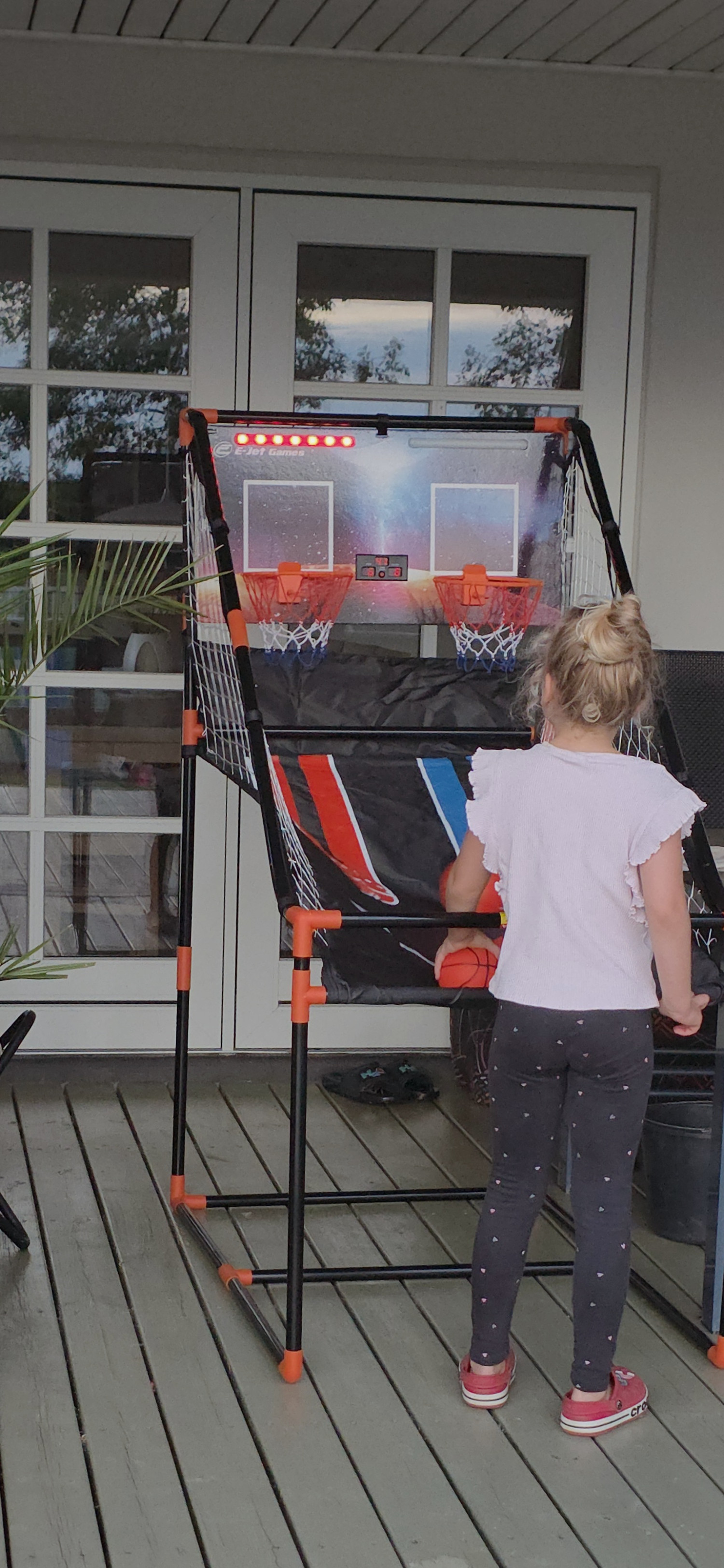 Hvis dine børn elsker fart, konkurrence og boldspil, er Electronic Arcade Game Basketball Double Shot et spil, der hurtigt kan blive samlingspunktet derhjemme. Det elektroniske basketspil er designet til to spillere og kombinerer bevĂŚgelse, pointjagt og lyseffekter i ĂŠt underholdende setup. Med LED-lys, lydeffekter og digital pointtavle føles det nĂŚsten som en mini-arkade derhjemme â og netop den følelse er en stor del af oplevelsen.
