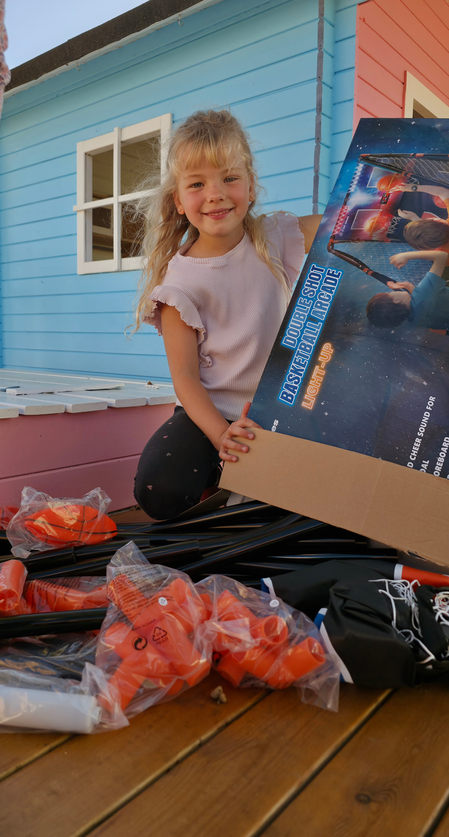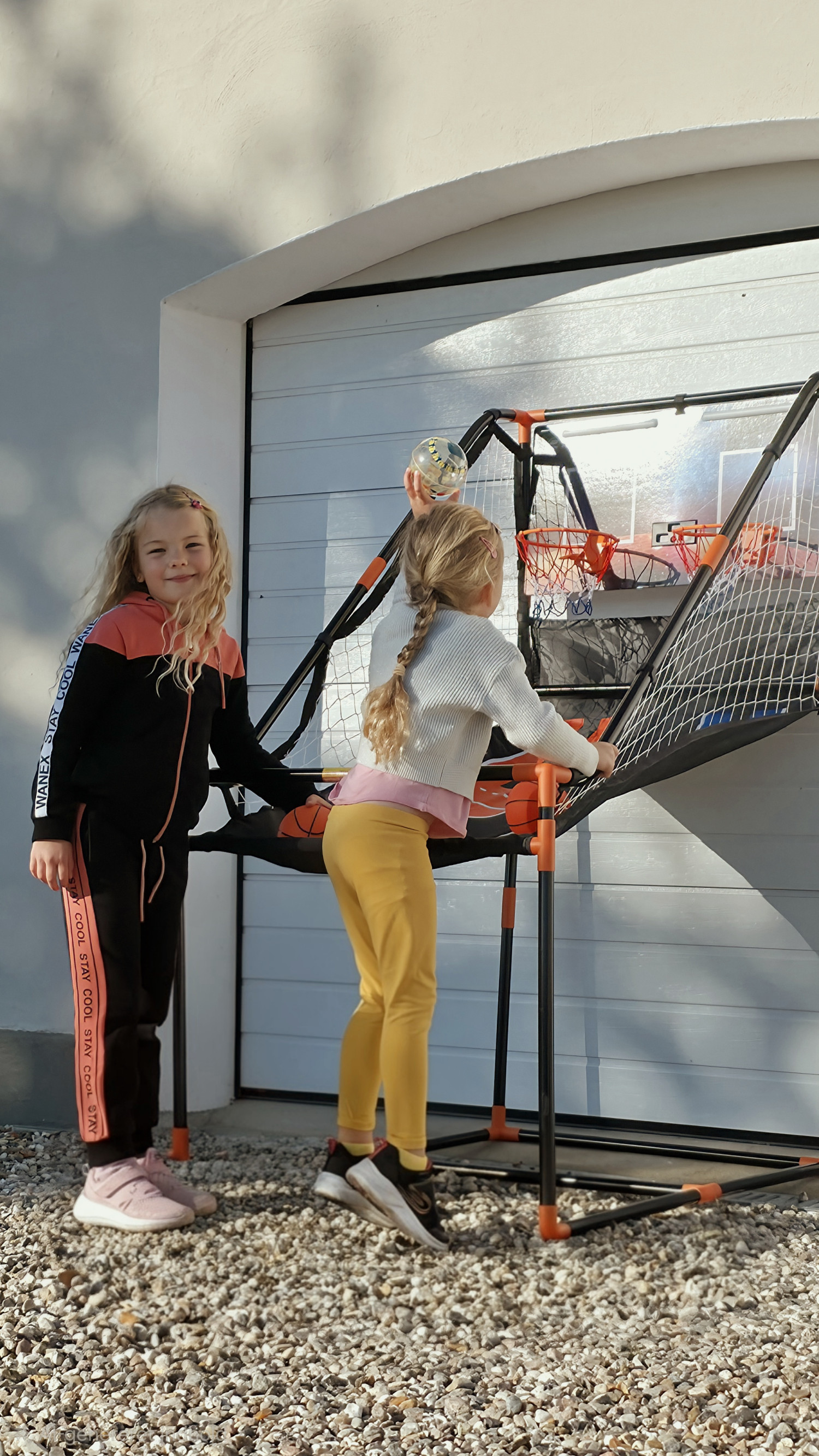 Spillet samles uden vÌrktøj pü omkring et kvarter og leveres med fire bolde og pumpe, sü legen kan begynde med det samme. De 60 sekunders runder gør spillet intenst og tempofyldt, mens pointtavlen pü begge sider giver overblik og konkurrence. Samtidig trÌner børn büde motorik, timing og talforstüelse, mens de leger.