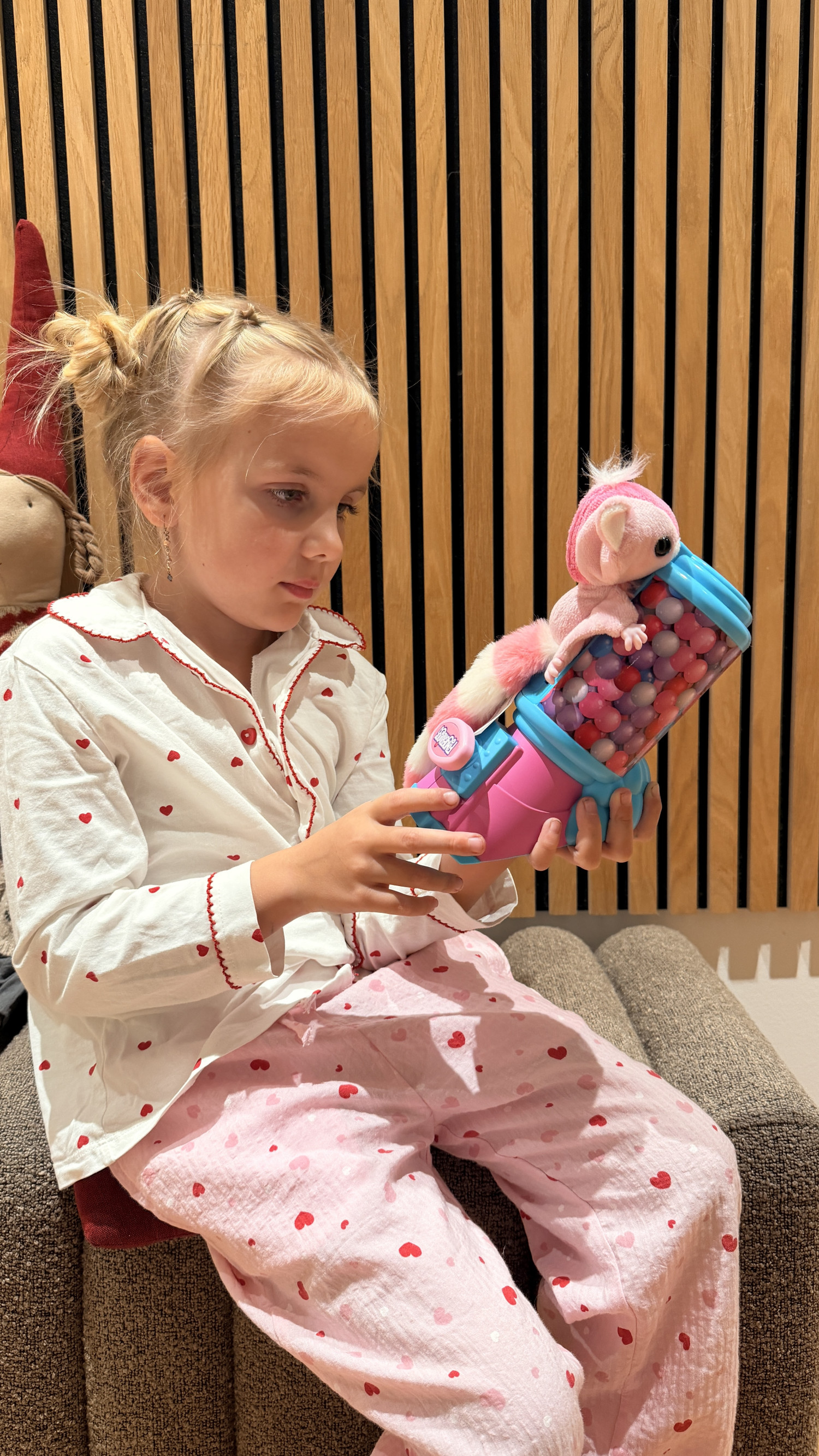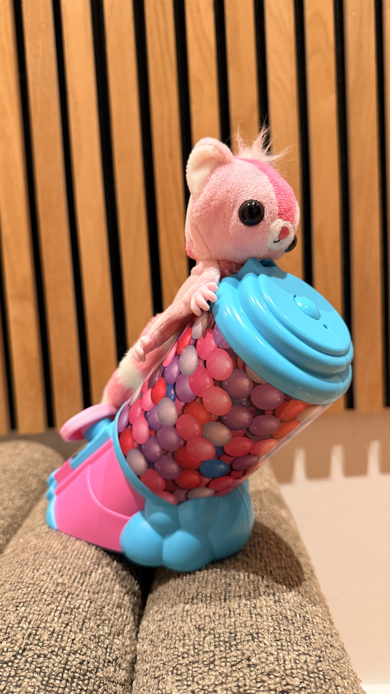 Ud over selve figuren følger der en affyringsrampe formet som en tyggegummimaskine. Her kan sugar glideren âskydes afstedâ og fanges igen â en funktion der bringer bevĂŚgelse og action ind i legen. Samtidig er den bløde plys og det nuttede design med til at gøre den til en hyggelig putteven om aftenen. Kombinationen af aktiv leg og rolig nĂŚrhed gør, at legetøjet kan bruges pĂĽ flere mĂĽder i hverdagen.