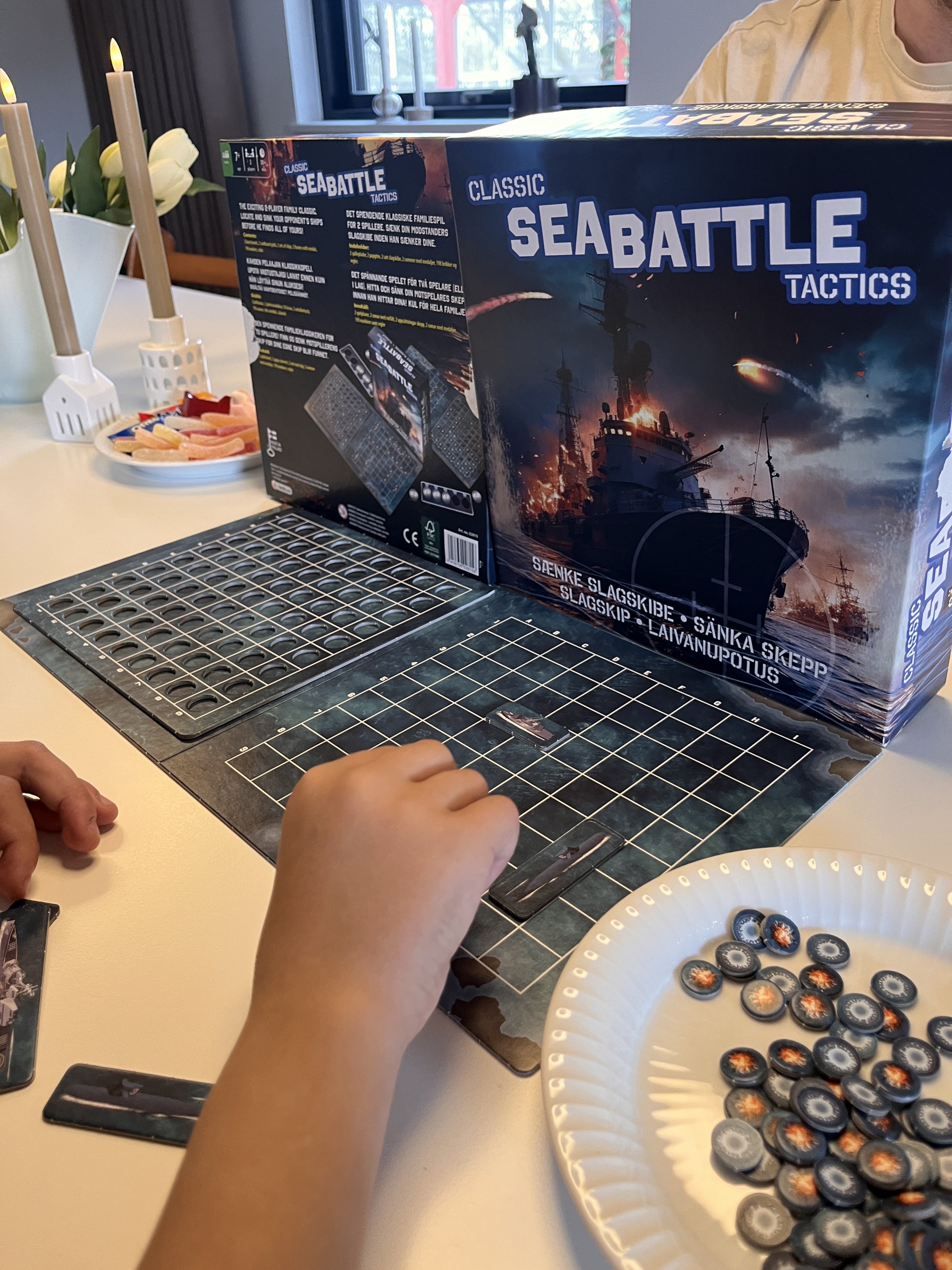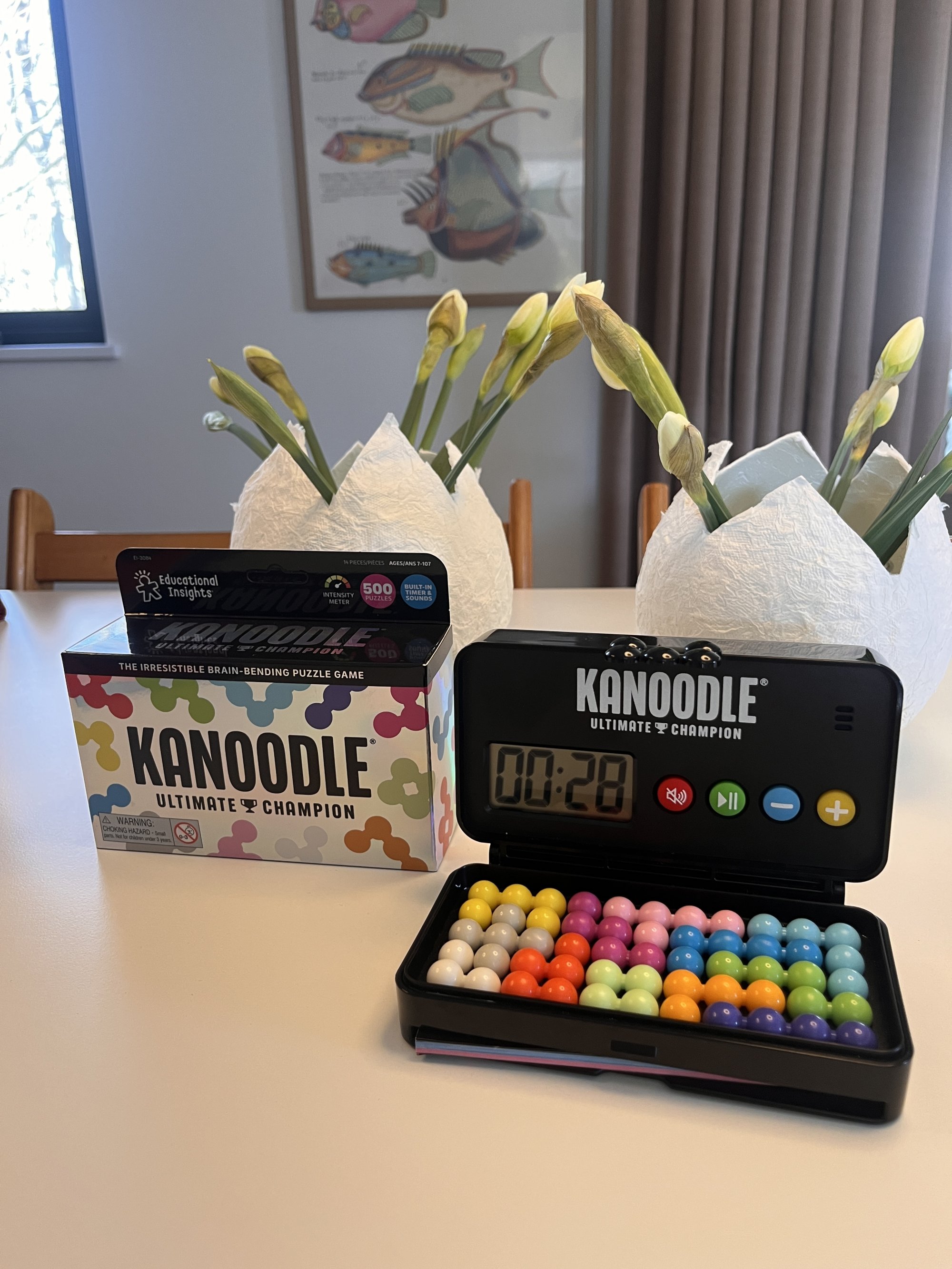 Logikspillet Kanoodle blev hurtigt en favorit – især på køreture, hvor det fungerede som et godt alternativ til skærm. Samtidig har klassiske spil som skak og sænke slagskibe skabt hyggelige stunder, hvor børnene bliver udfordret på en anden måde.