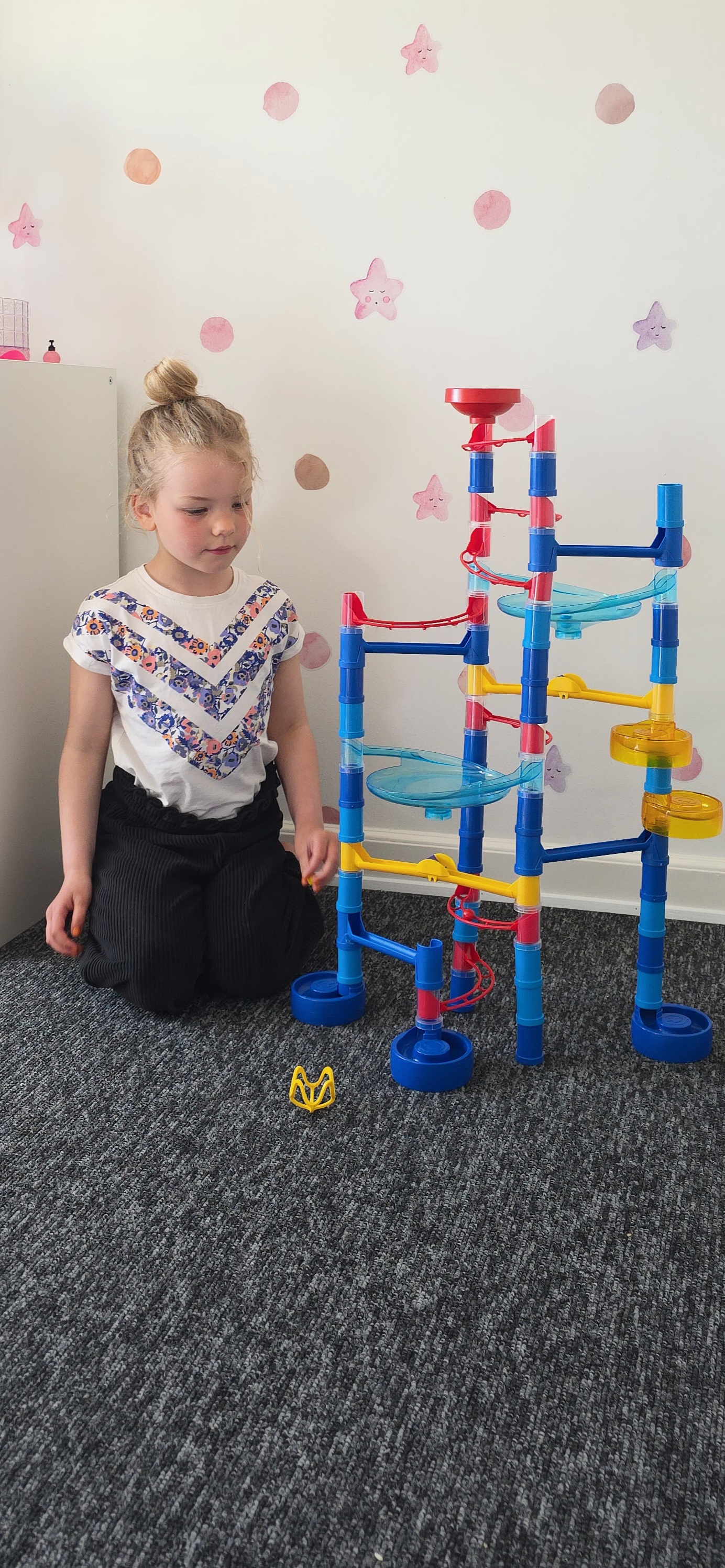 Samtidig oplevede Irina, at kuglebanen motiverede Anita til at tĂŚnke logisk, eksperimentere og bruge sin finmotorik â alt sammen gennem leg.