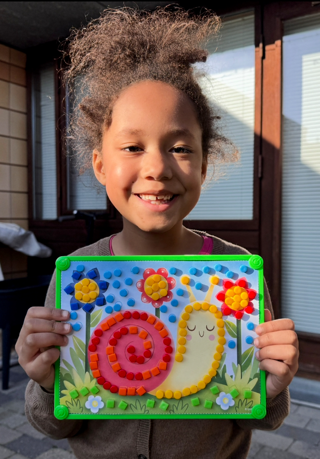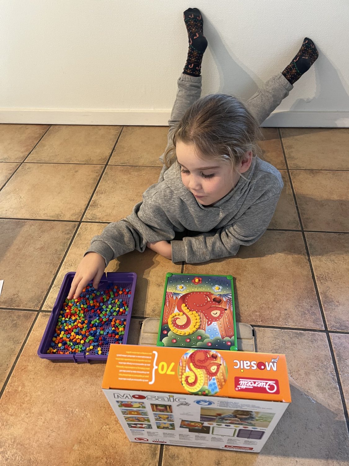 Samtidig styrker mosaikken bĂĽde finmotorik og rumforstĂĽelse og introducerer barnet til elementer fra grafik og kunst.