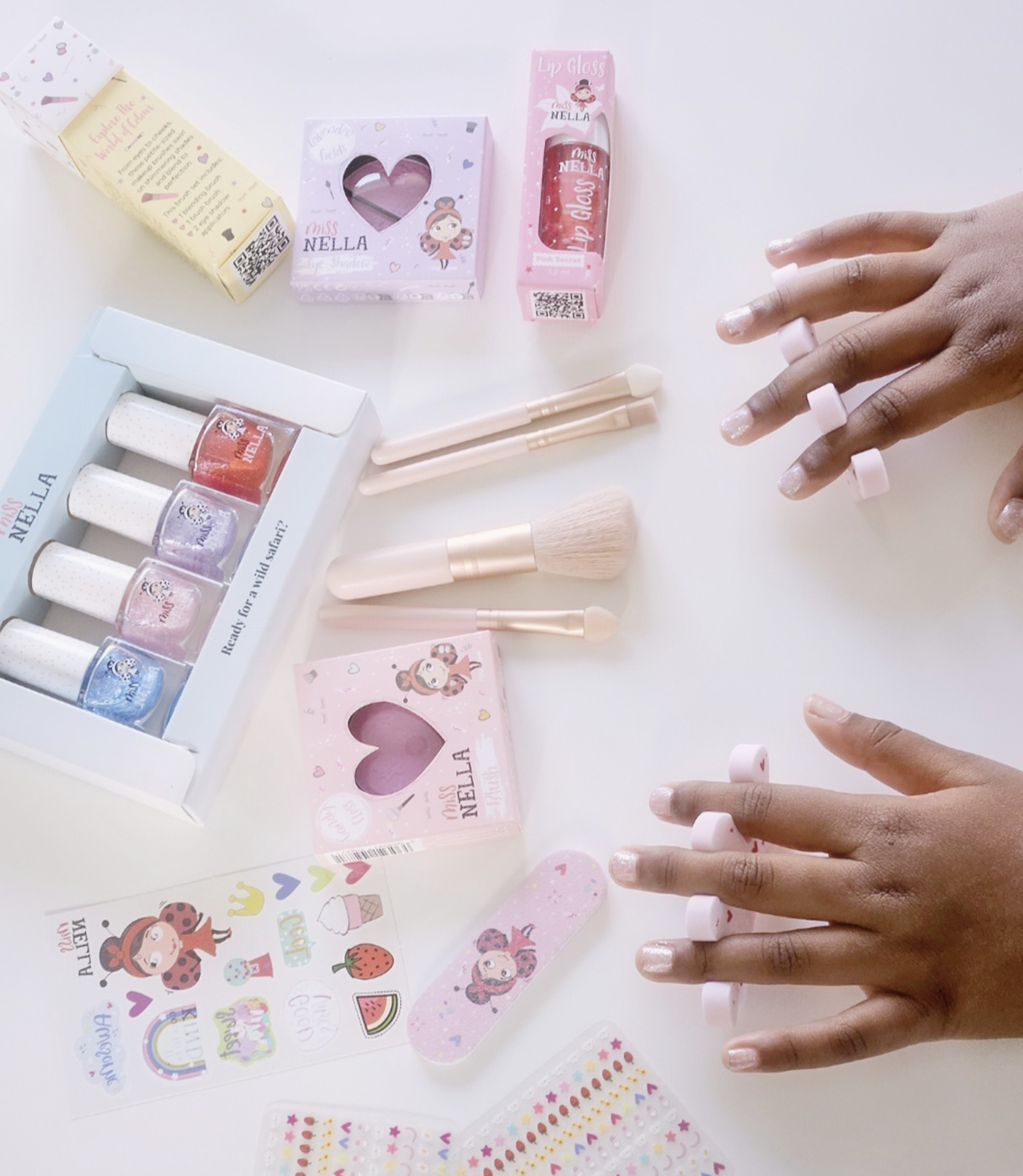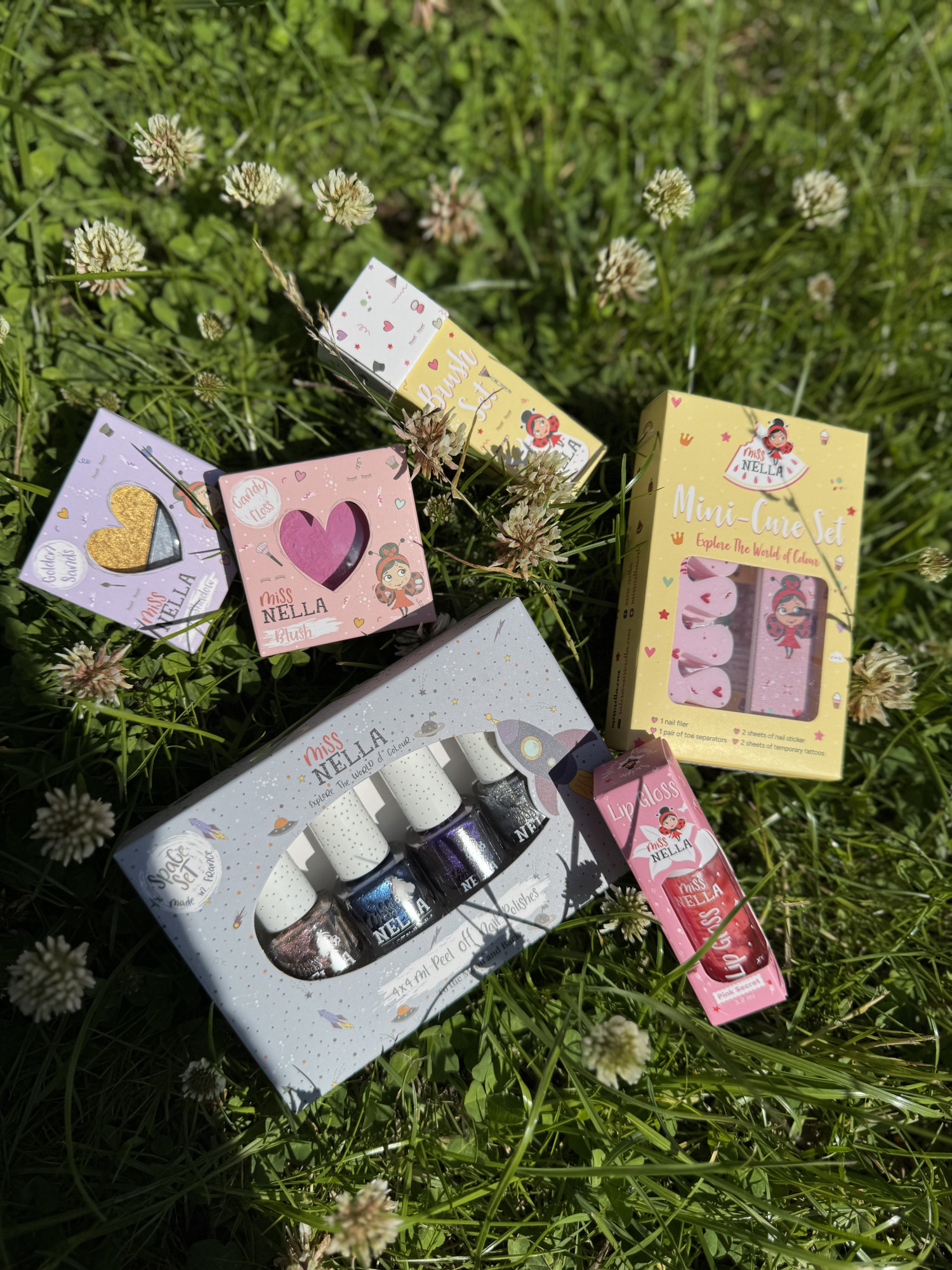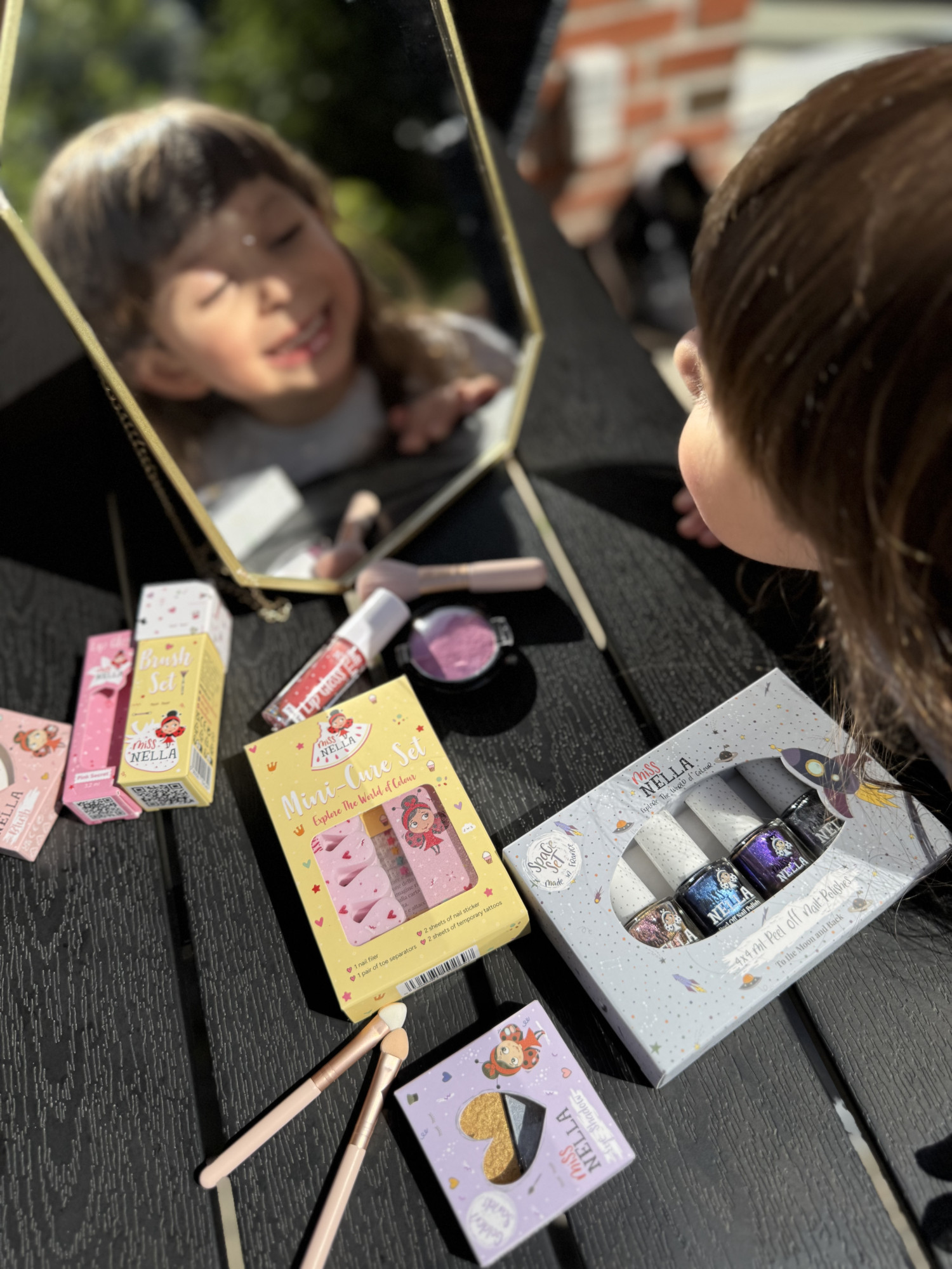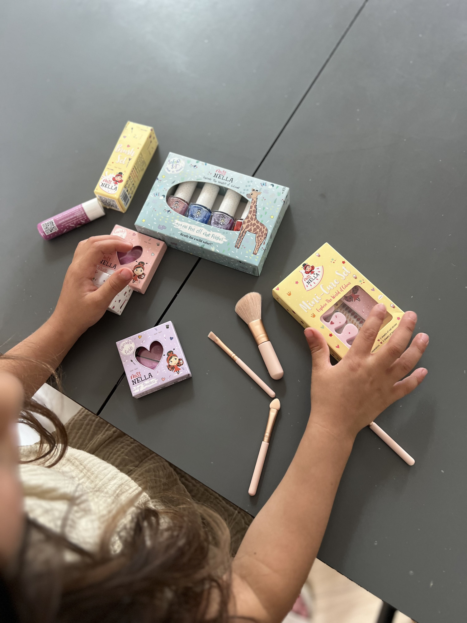 Miss Nella er udviklet specielt til børn og kombinerer det sjove ved make-up, neglelak og accessories med et vigtigt fokus pü børns sarte hud og trygge ingredienser. Produkterne er vandbaserede, lugtfrie og fri for skadelige stoffer som parabener og andre uønskede kemikalier, hvilket gør dem mere velegnede til børn end traditionel make-up.