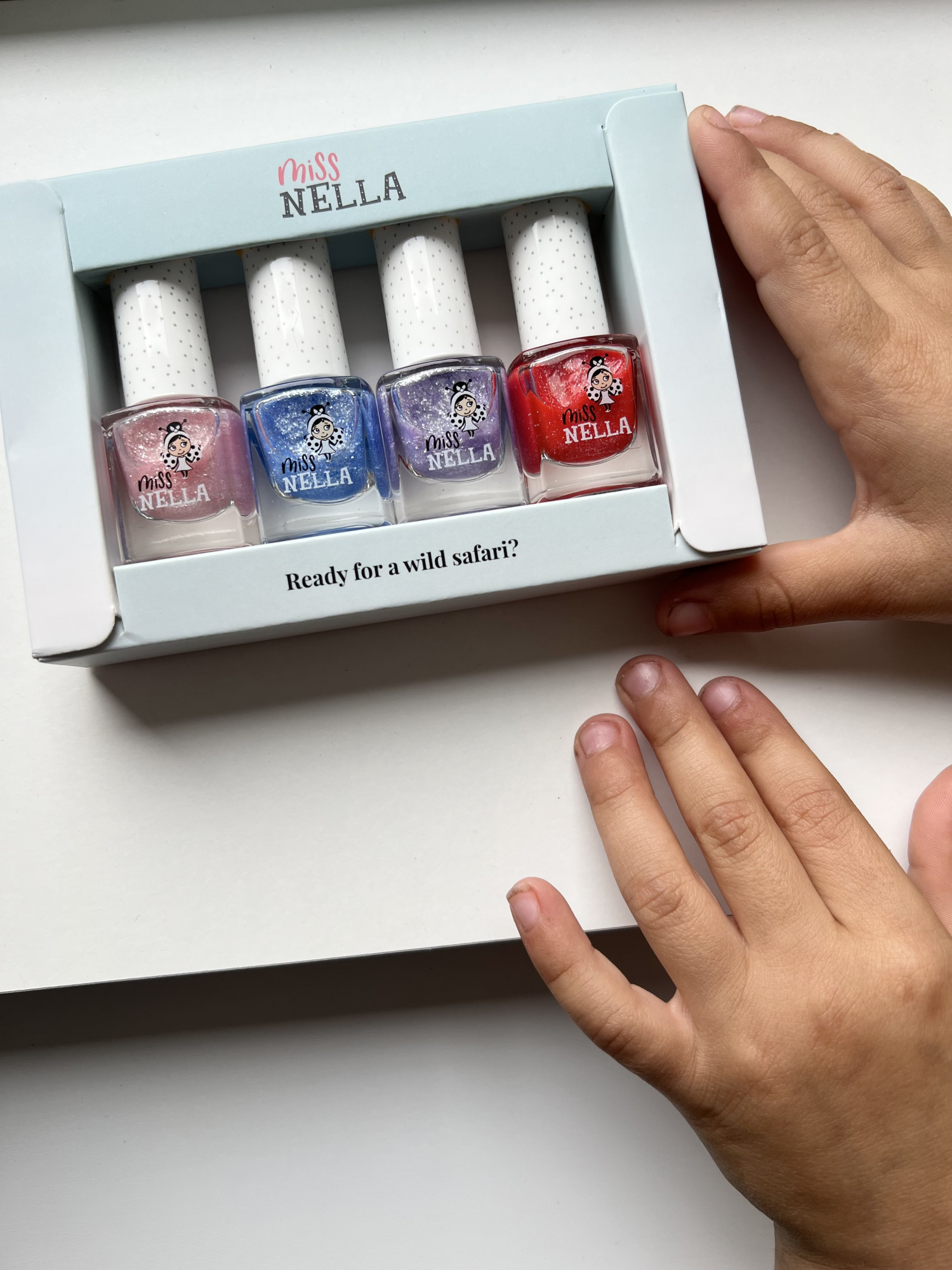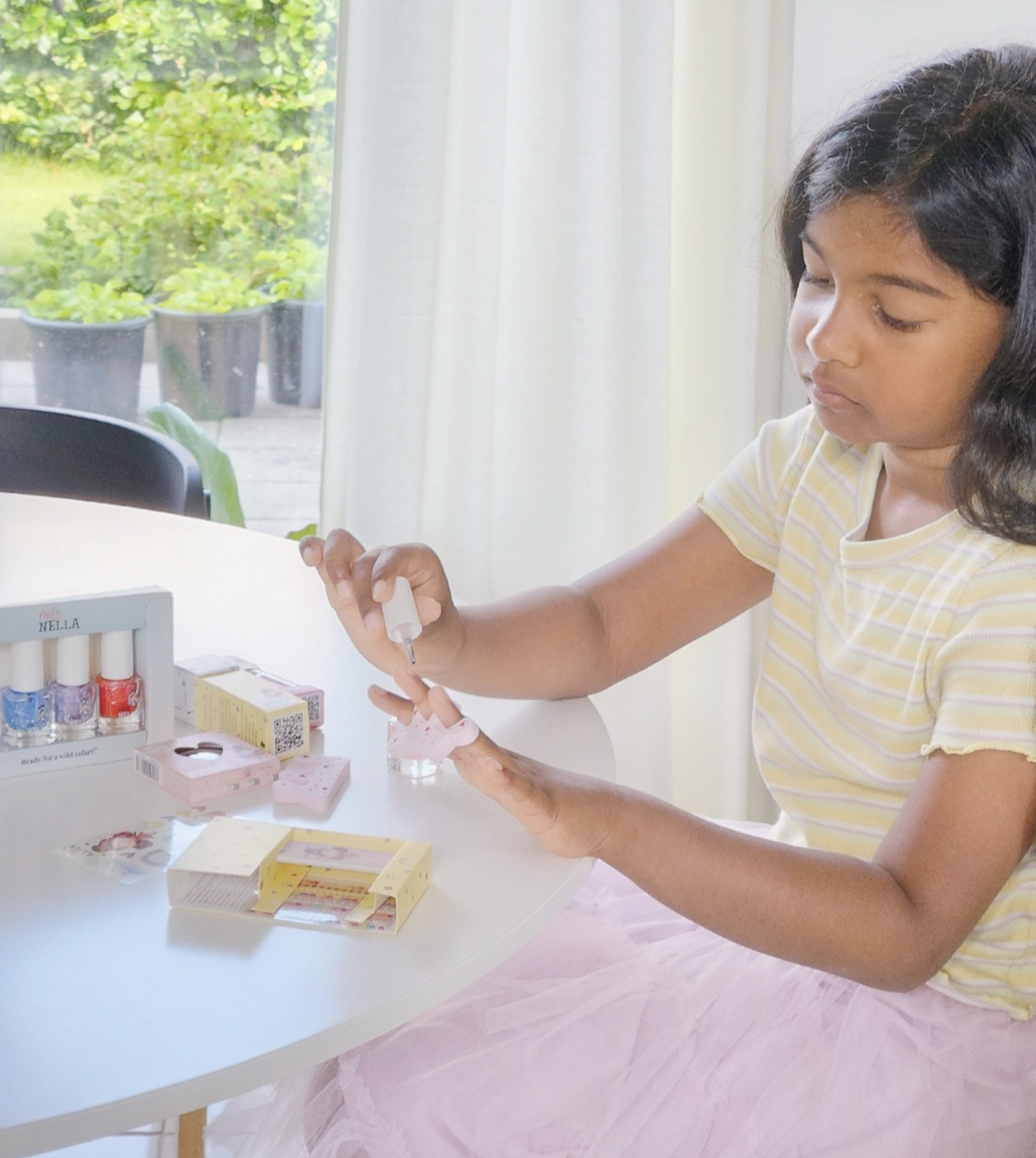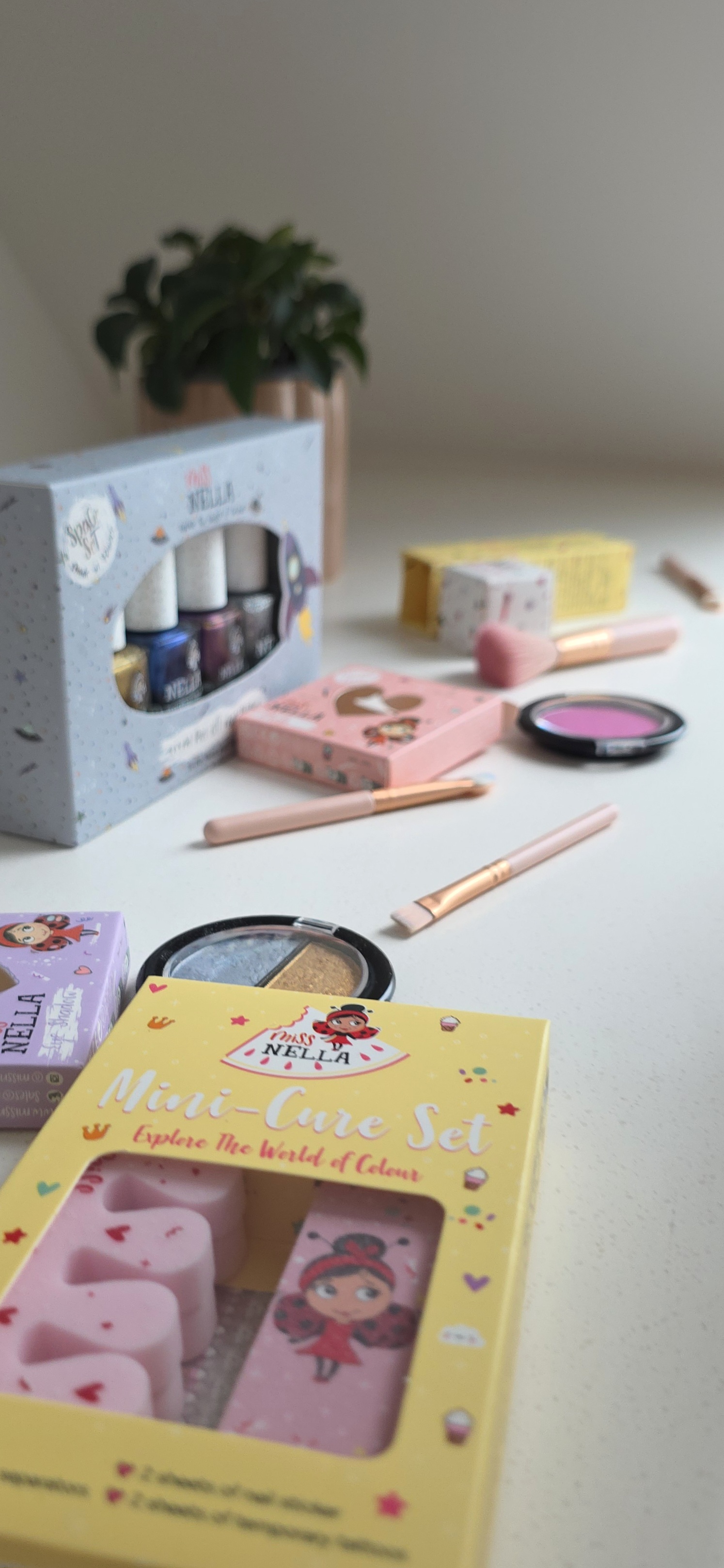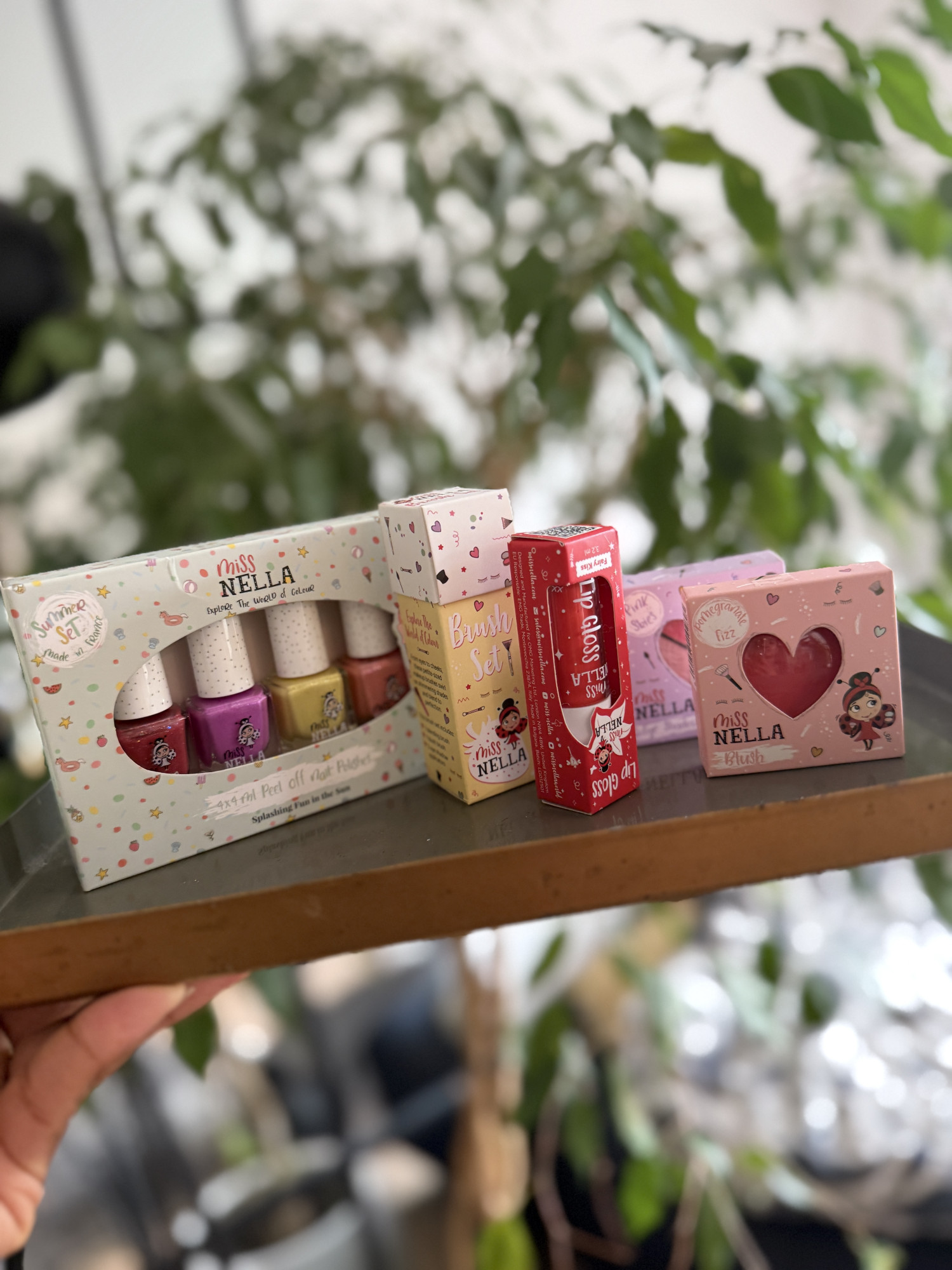 Miss Nella er udviklet specielt til børn og kombinerer det sjove ved make-up, neglelak og accessories med et vigtigt fokus pü børns sarte hud og trygge ingredienser. Produkterne er vandbaserede, lugtfrie og fri for skadelige stoffer som parabener og andre uønskede kemikalier, hvilket gør dem mere velegnede til børn end traditionel make-up.