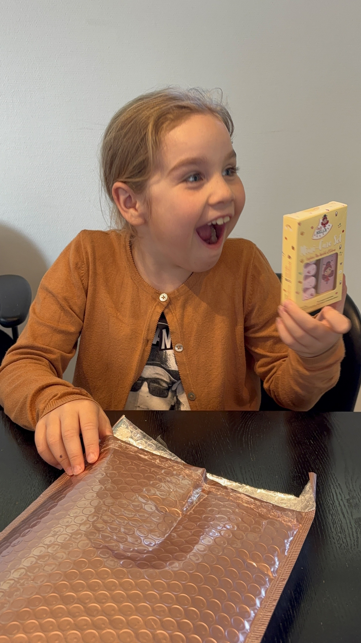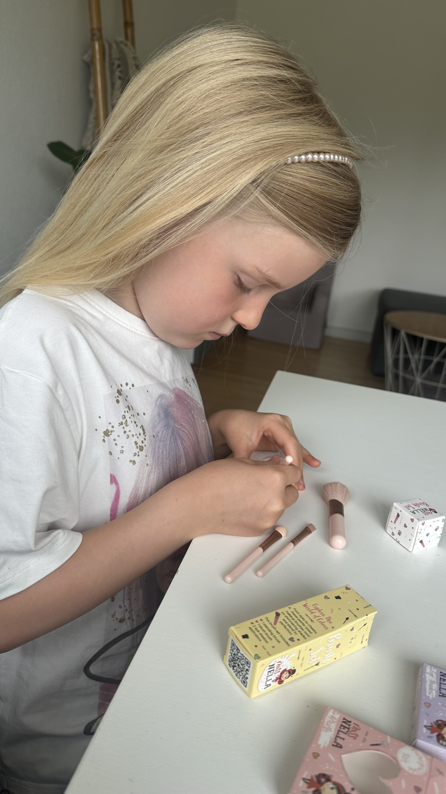 da hun ĂĽbnede pakken med legemake-up fra Miss Nella.â