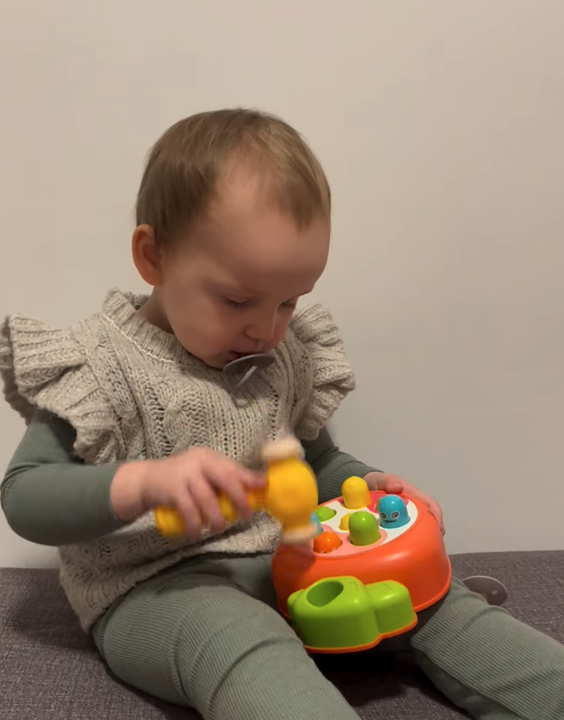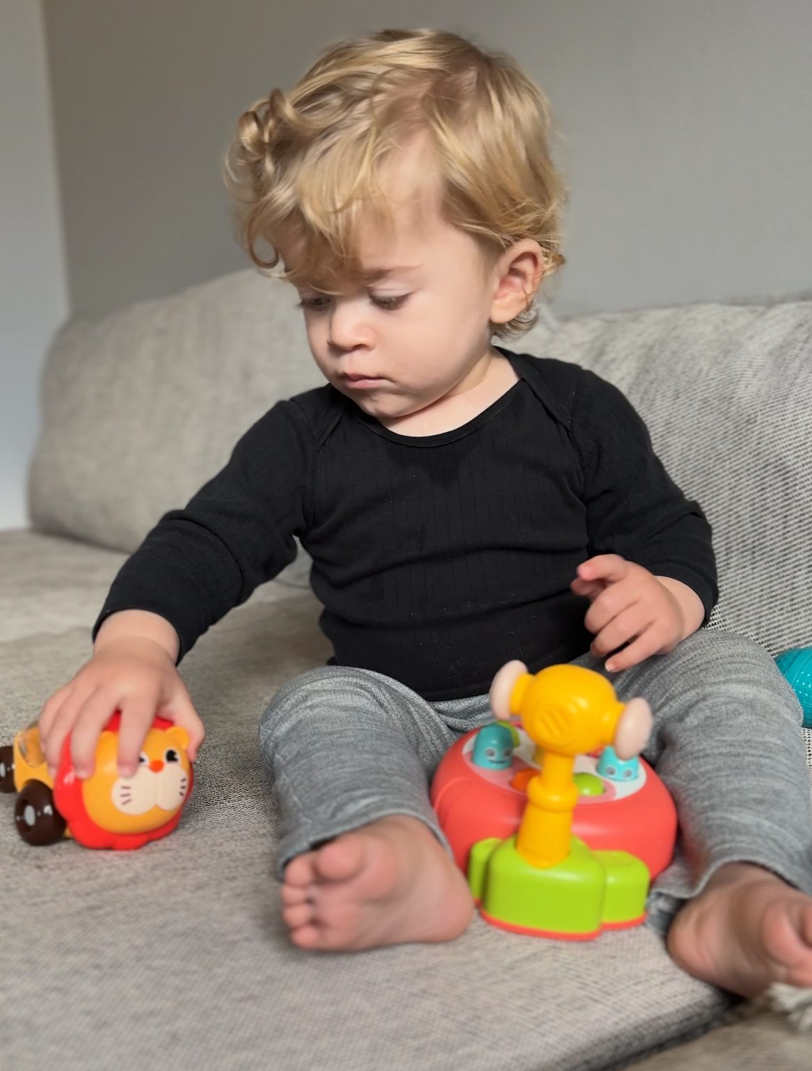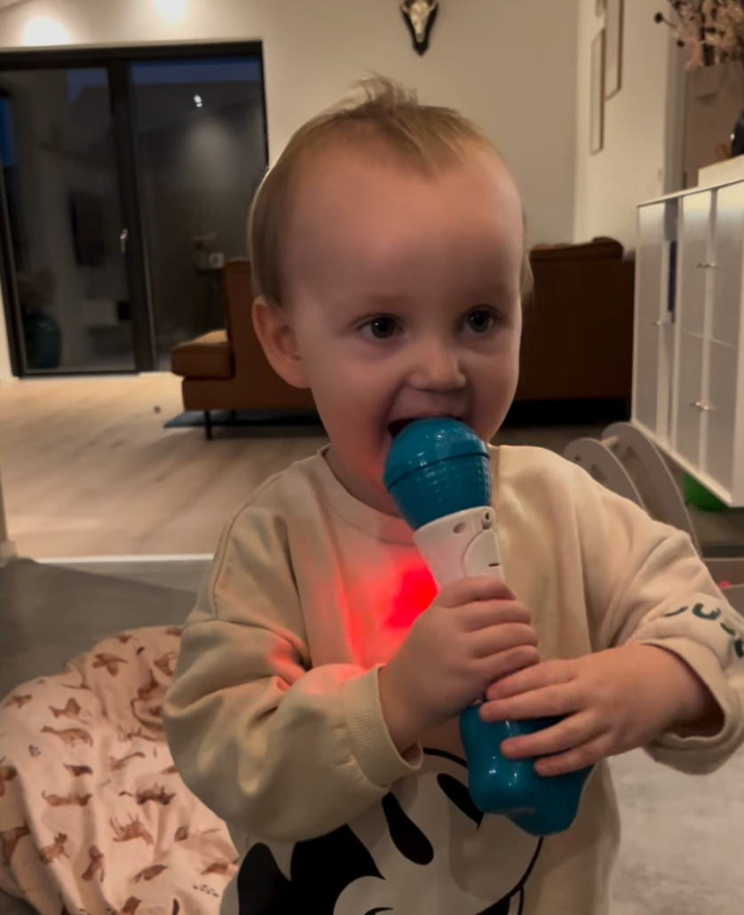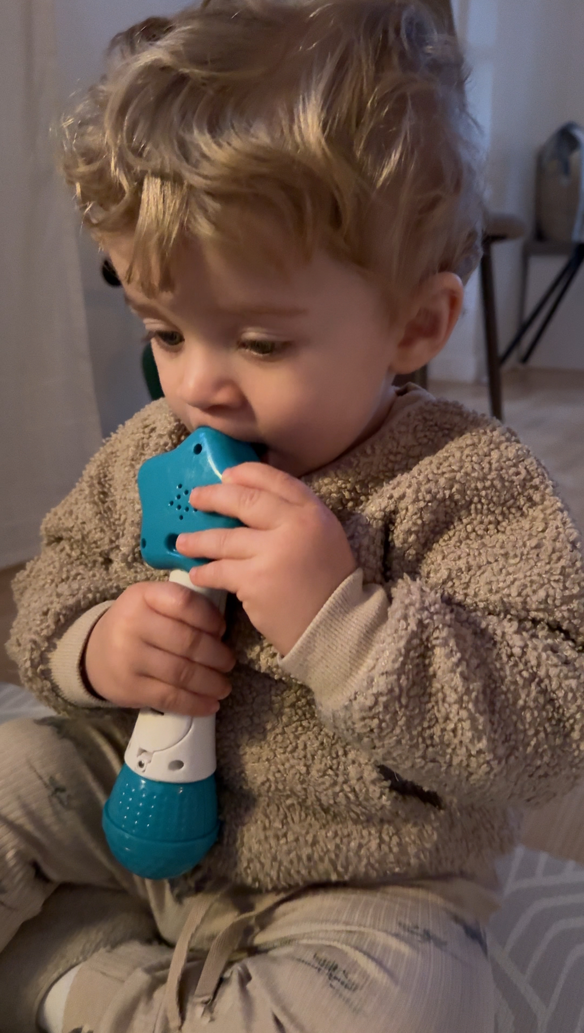 “Harvey har virkelig elsket sin nye lege mikrofon. Han bruger den til at lave sine første små ‘sange’, og de sjove lyde holder hans opmærksomhed længe.”