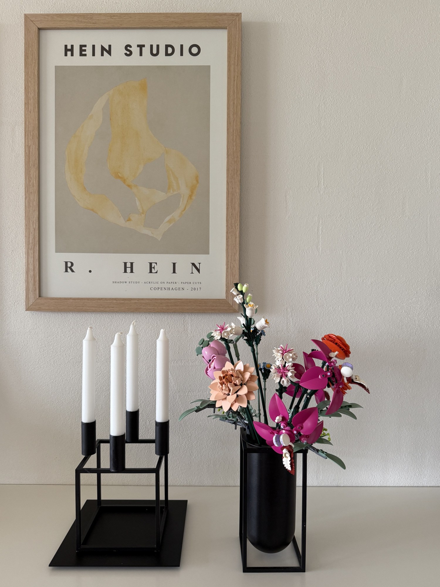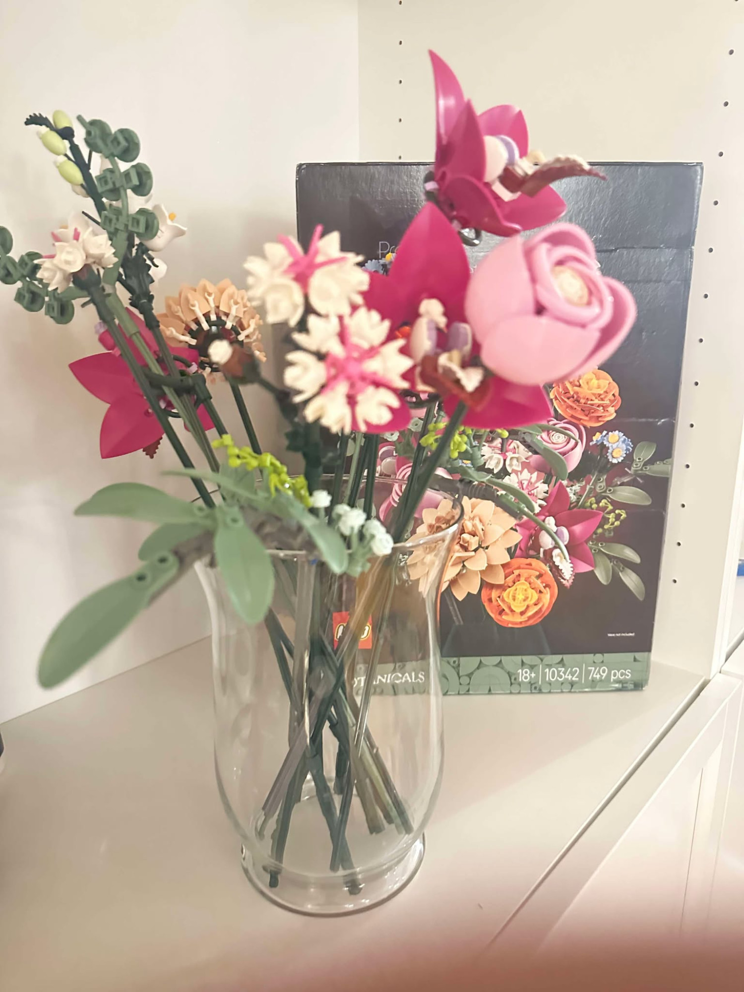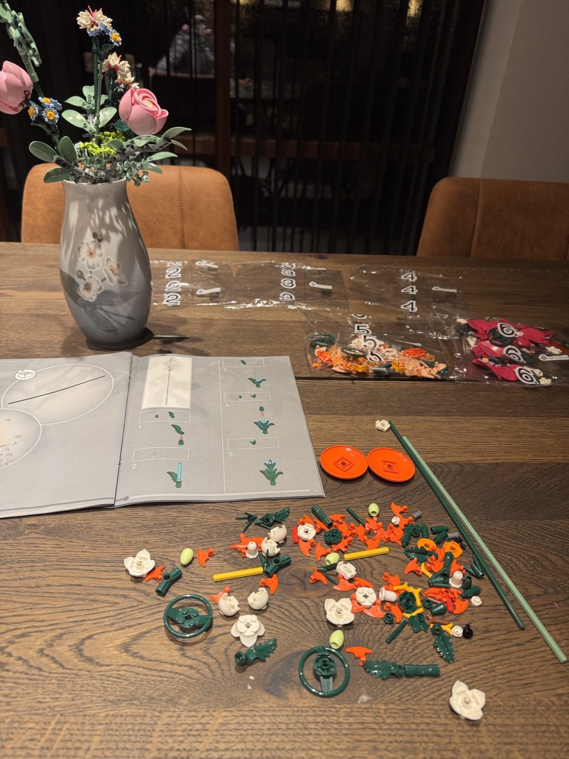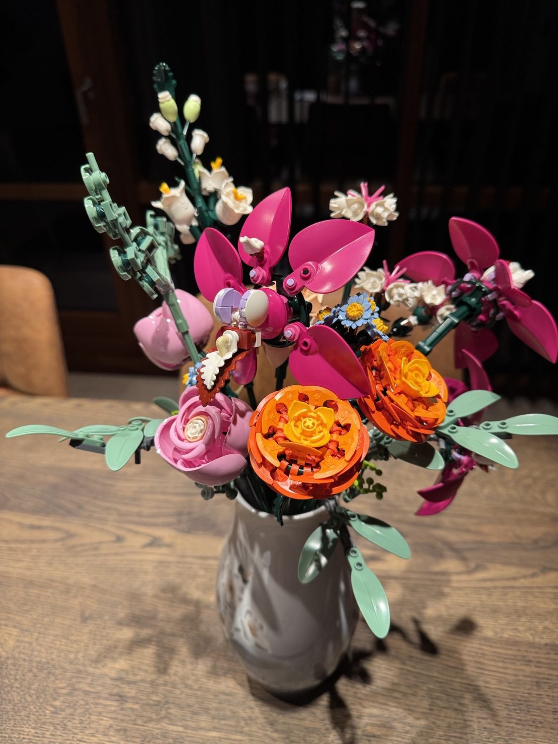 Den fĂŚrdige LEGO blomsterbuket pynter smukt i hjemmet