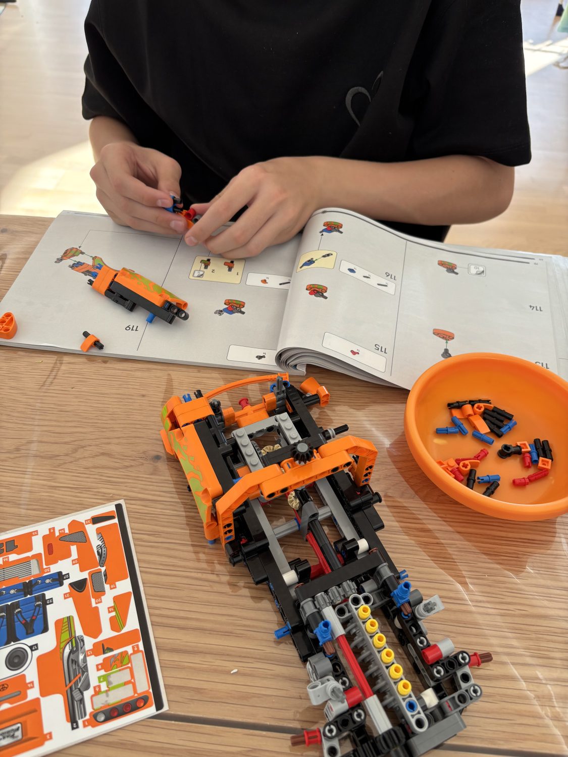 For Mie og hendes søn Anton på 6 år blev sættet et fælles projekt over flere uger. De byggede i etaper takket være de nummererede poser, hvilket gjorde opgaven overskuelig. Særligt de tekniske detaljer – som motorens bevægelse når hjulene drejer – imponerede og gjorde byggeprocessen ekstra spændende.