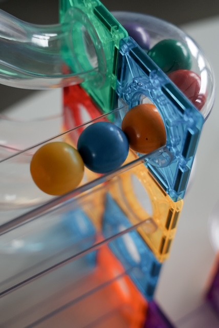 Robust kuglebane, kreativitet og byggeri med hjĂŠlp.