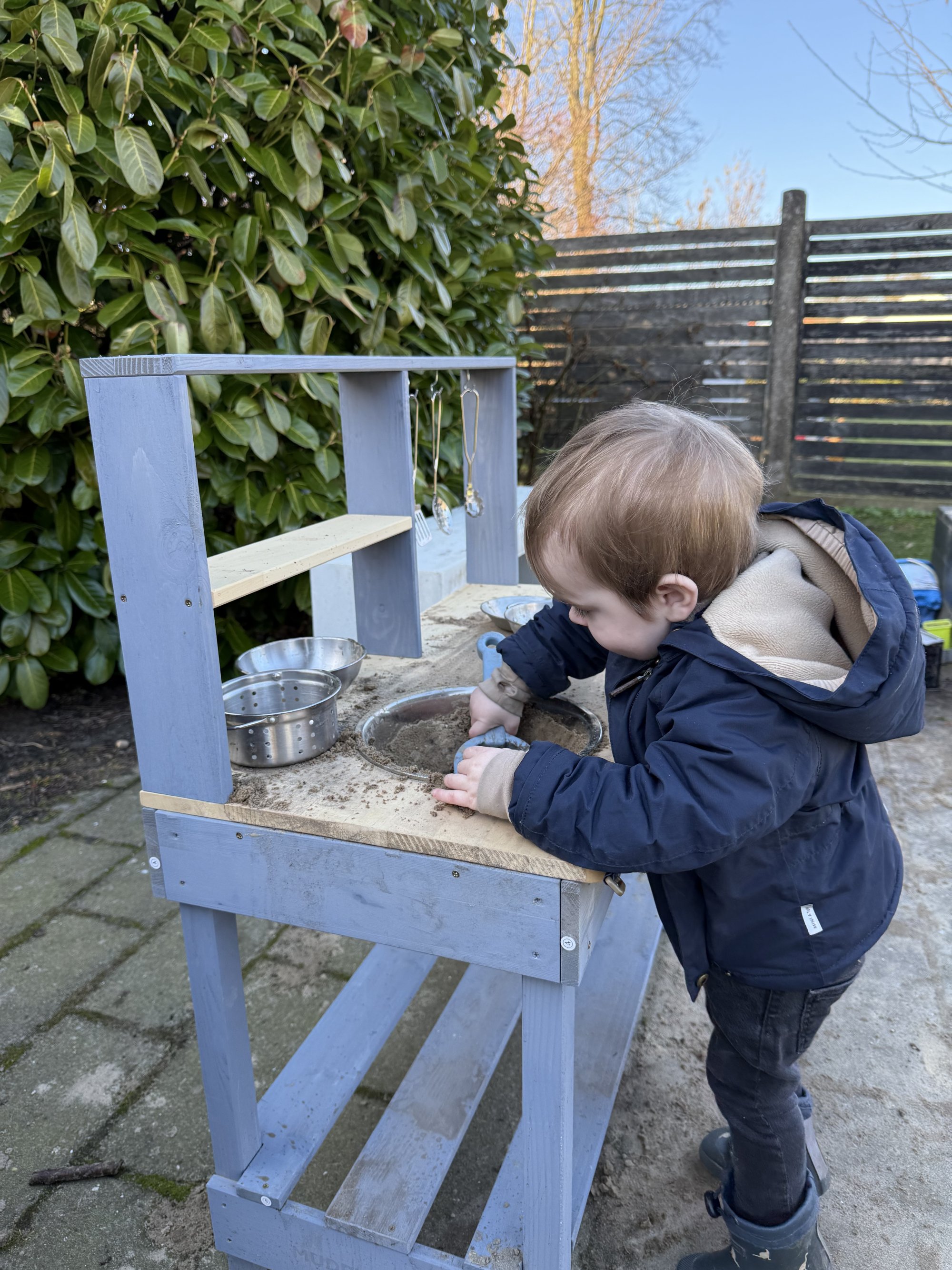 Vi har testet et lækkert mudderkøkken, som er et udendørs legekøkken i træ, der indbyder til rolleleg med sand, vand og mudder.