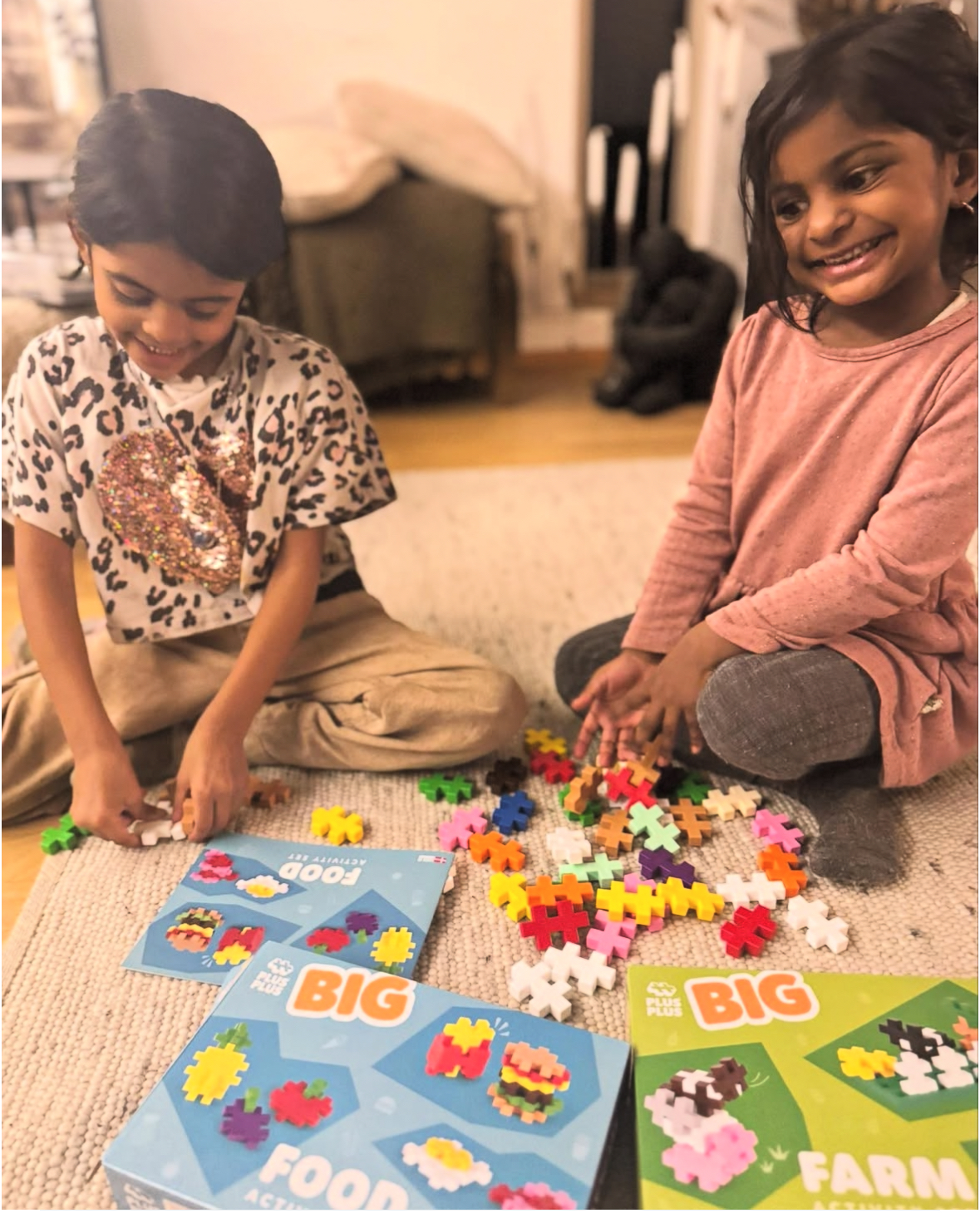 Vores tester Charmilie har testet Plus-Plus BIG Aktivitetsæt Bondegård og Plus-Plus BIG Aktivitetsæt Mad sammen med sine piger.