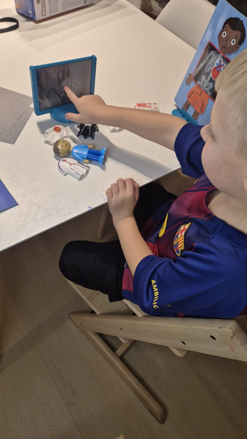 ââMor hvor sidder lungerne?â og âkan du huske da jeg brĂŚkkede en knogle i min fod?â â han er blevet meget optaget af kroppen og dens funktioner. Det varmer virkelig mit hjerte, at hans nysgerrighed kan fĂĽ lov at udfolde sig gennem leg.â