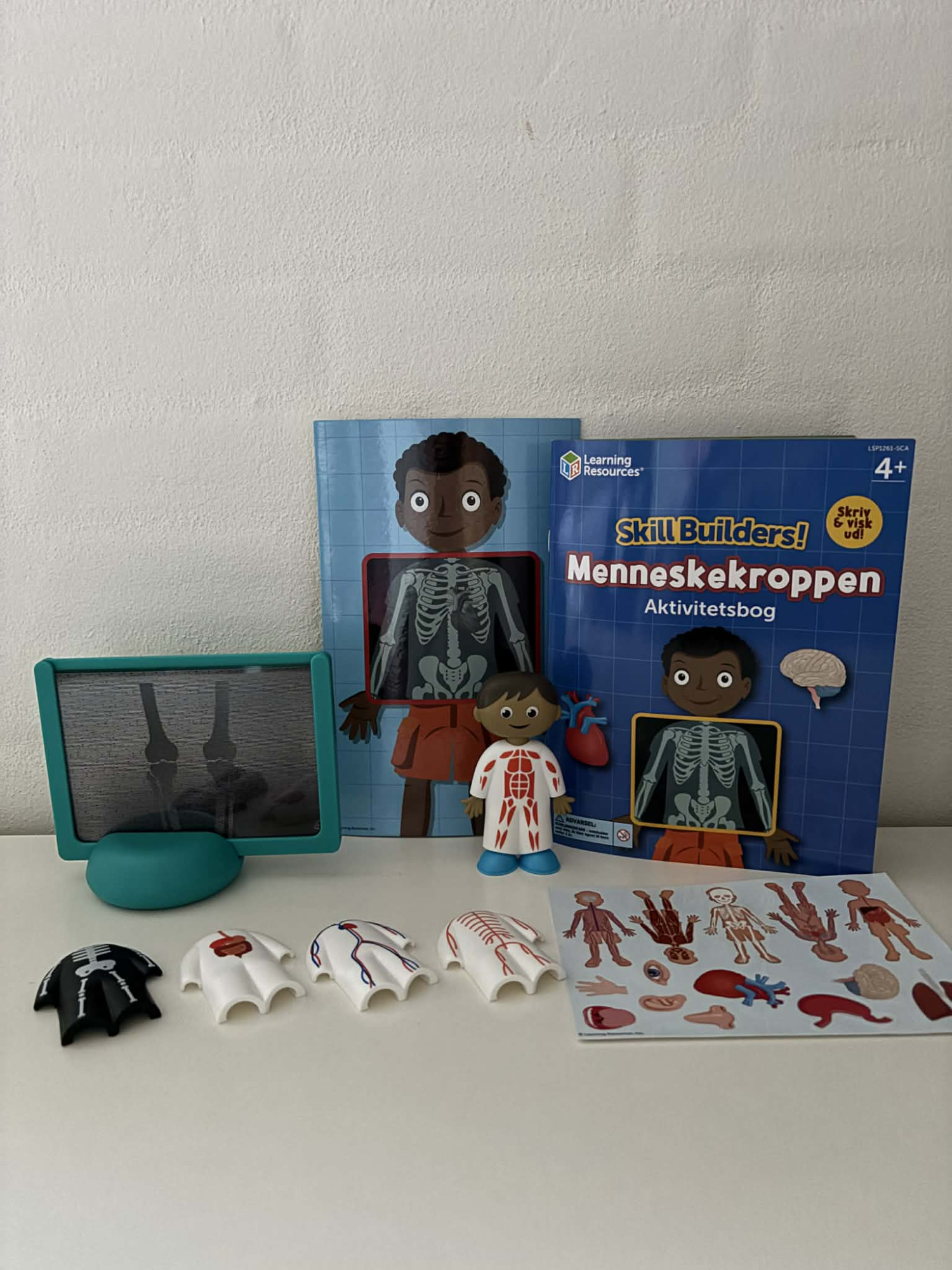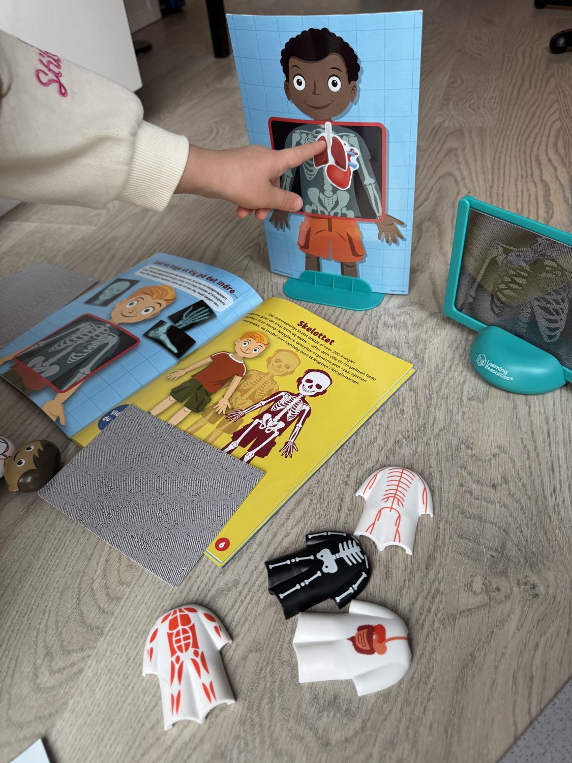 âMed dette aktivitetssĂŚt om menneskekroppen lĂŚrer og leger du med de forskellige lag i kroppen, sĂŚtter organer og sanser pĂĽ kroppen og leger med røntgen. Sjov og lĂŚrerig leg der fremmer nysgerrighed.â