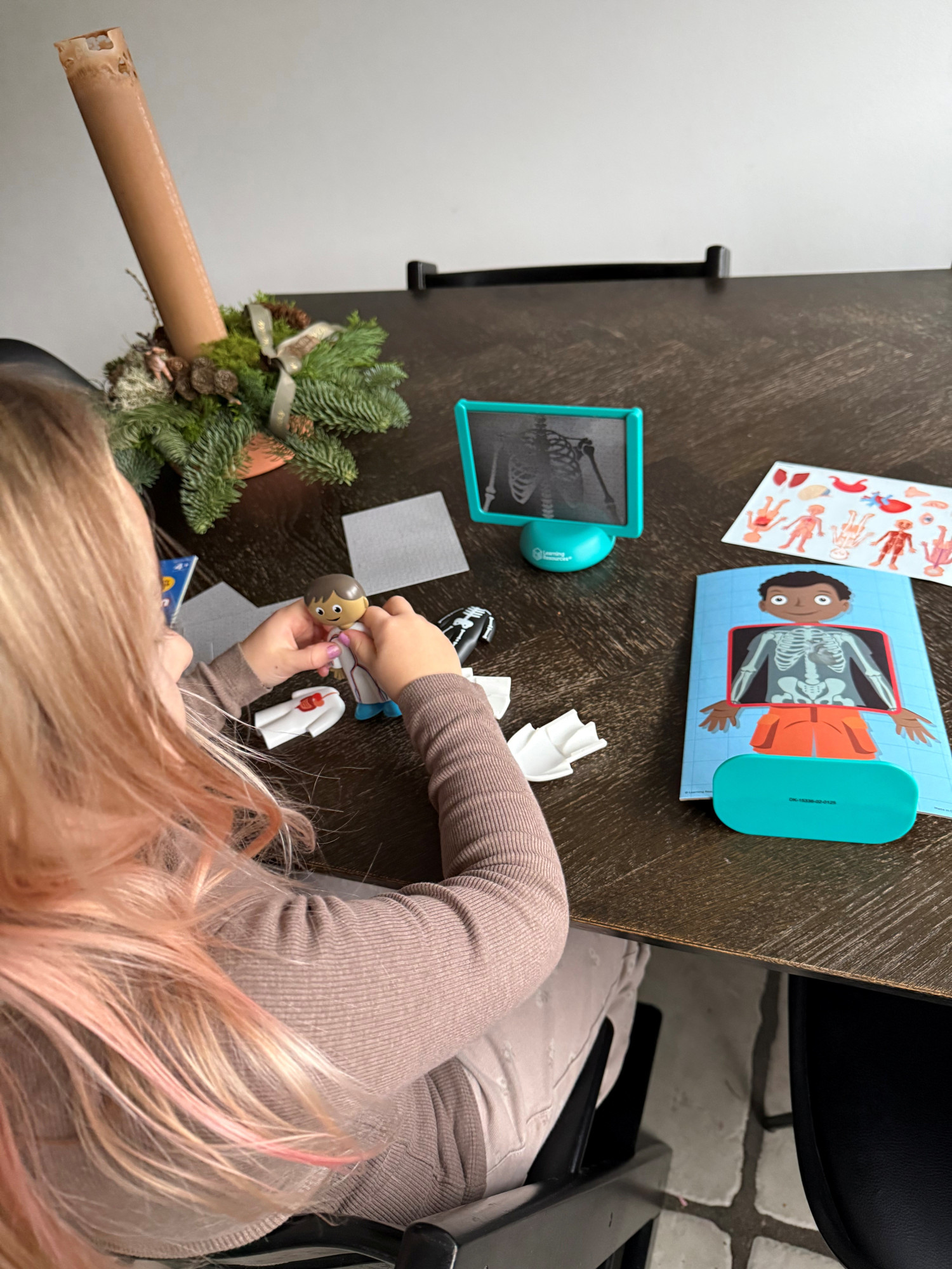 âSilje er sĂŚrligt glad for røntgenapparatet, som viser knoglerne i forskellige kropsdele. AktivitetssĂŚttet har givet anledning til mange gode snakke, spørgsmĂĽl og lĂŚring.â