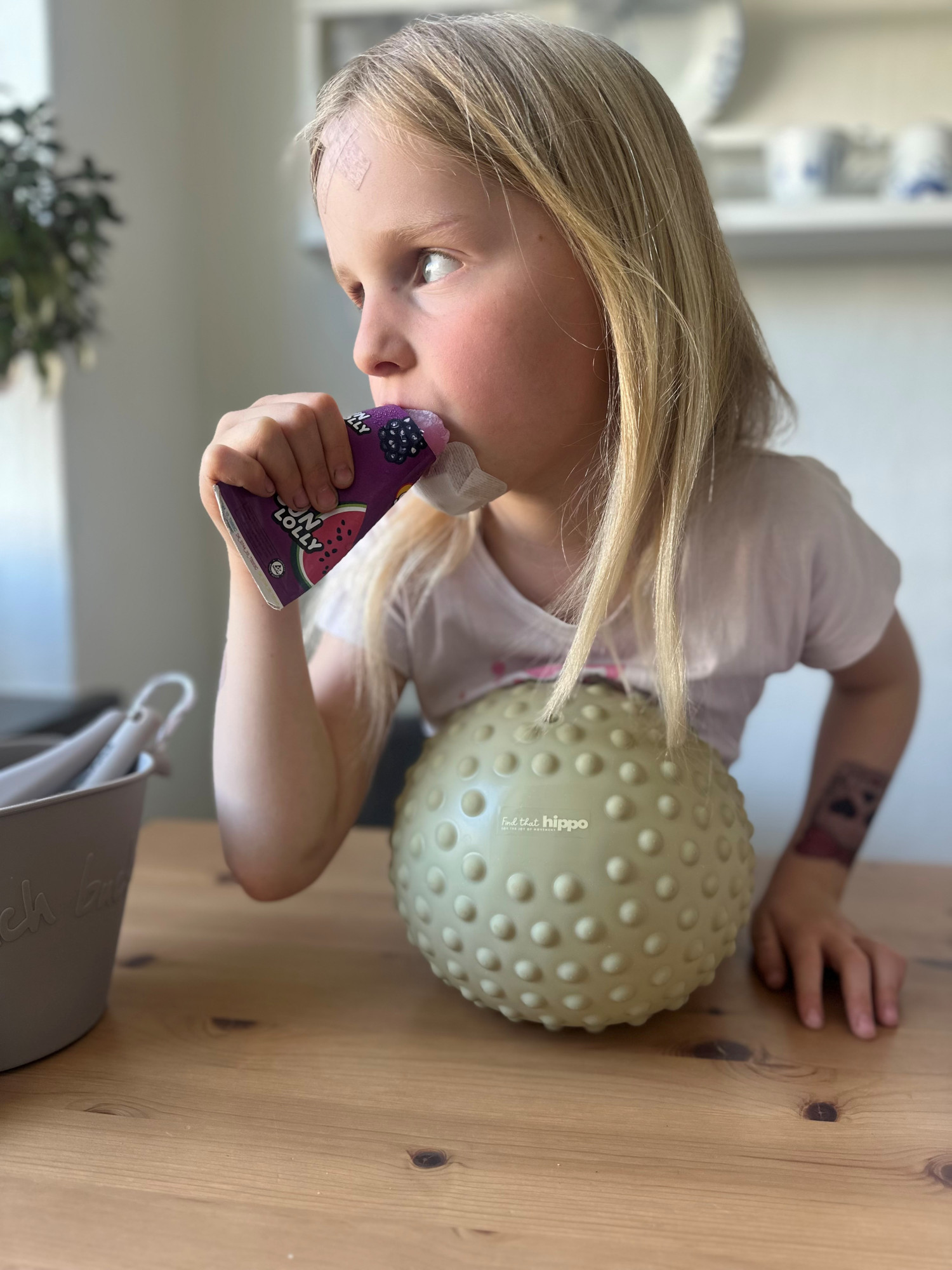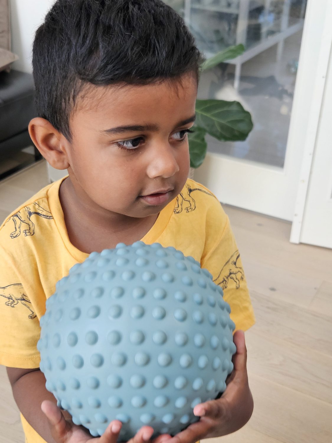 “Sansebolden blev straks taget ud af pakken og dimset rundt med – begge børn havde hurtigt interesse for den.”