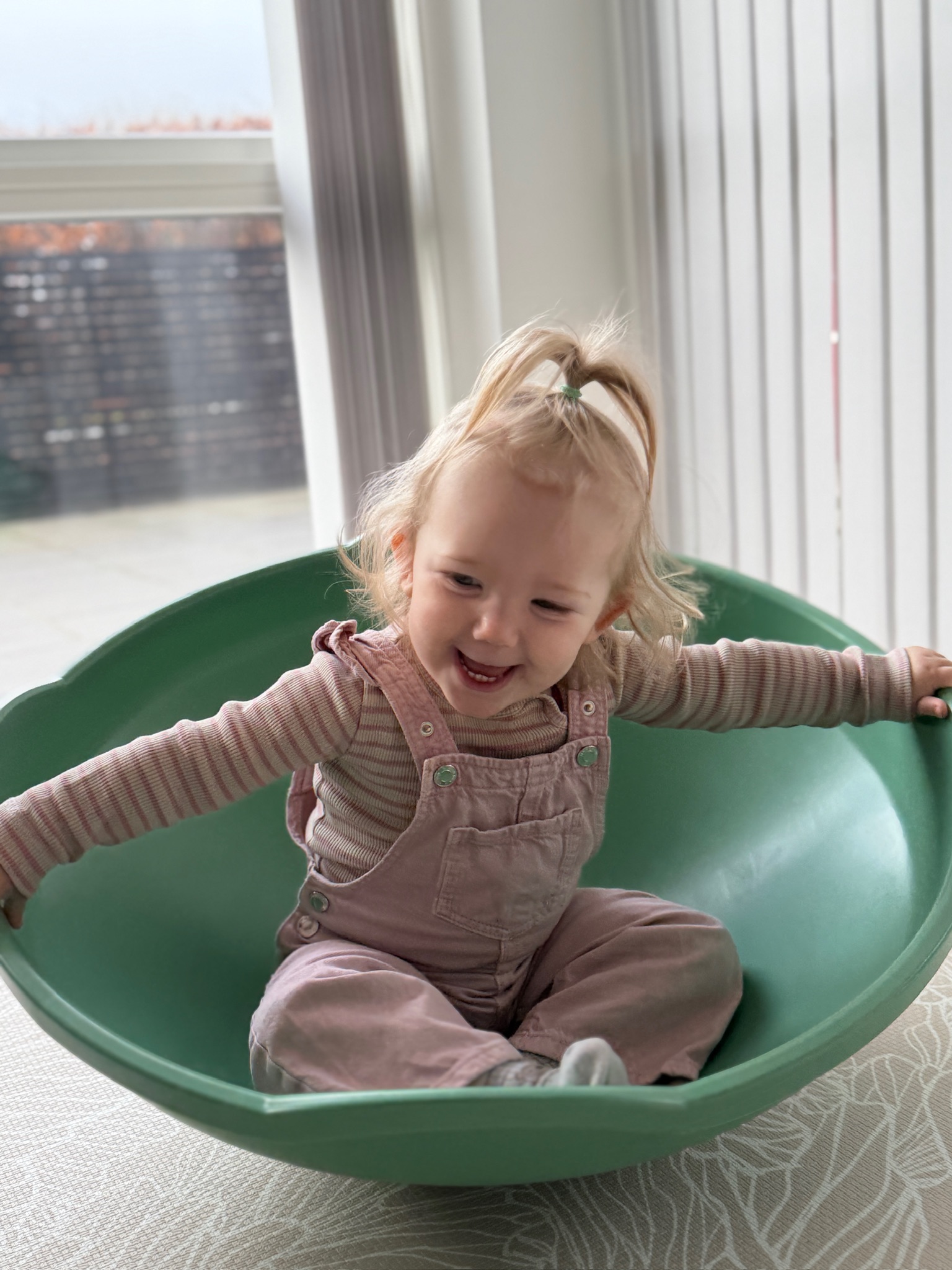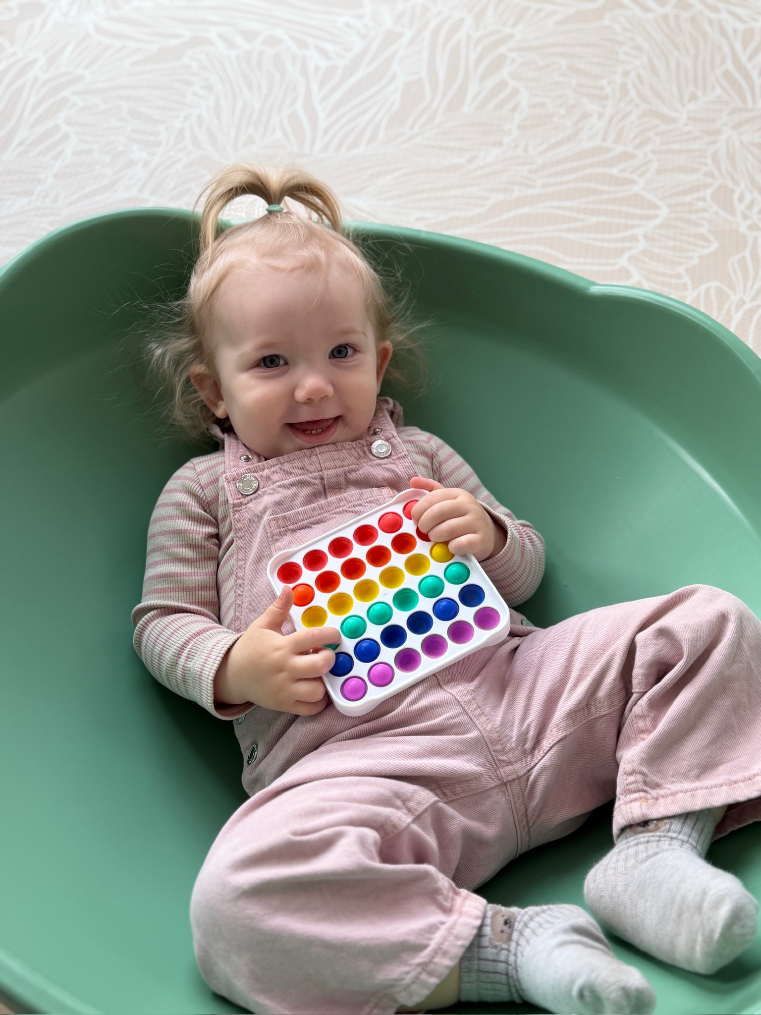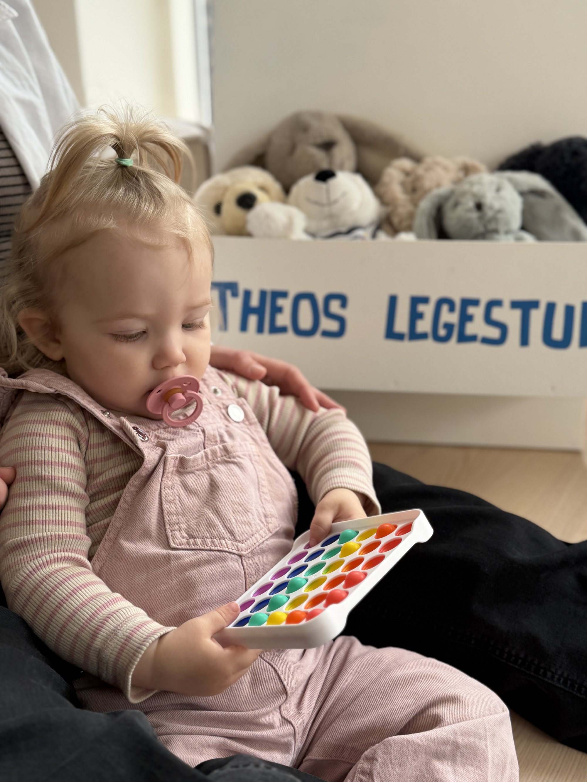 Legetøjet fungerede bĂĽde til baby og lidt større børn â og skabte fĂŚlles leg.
