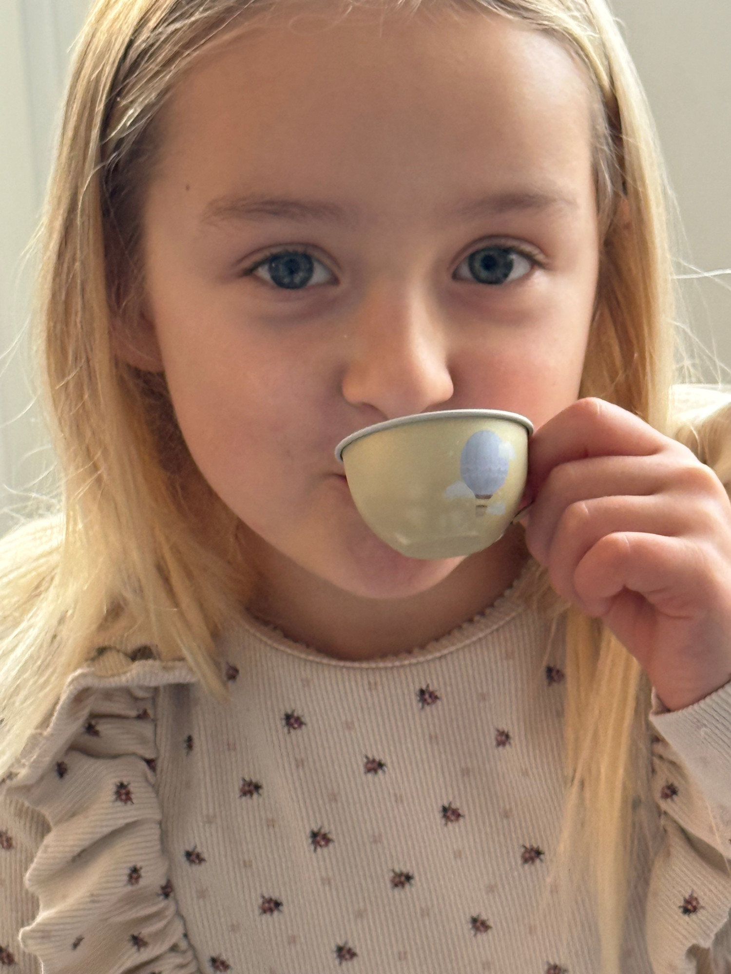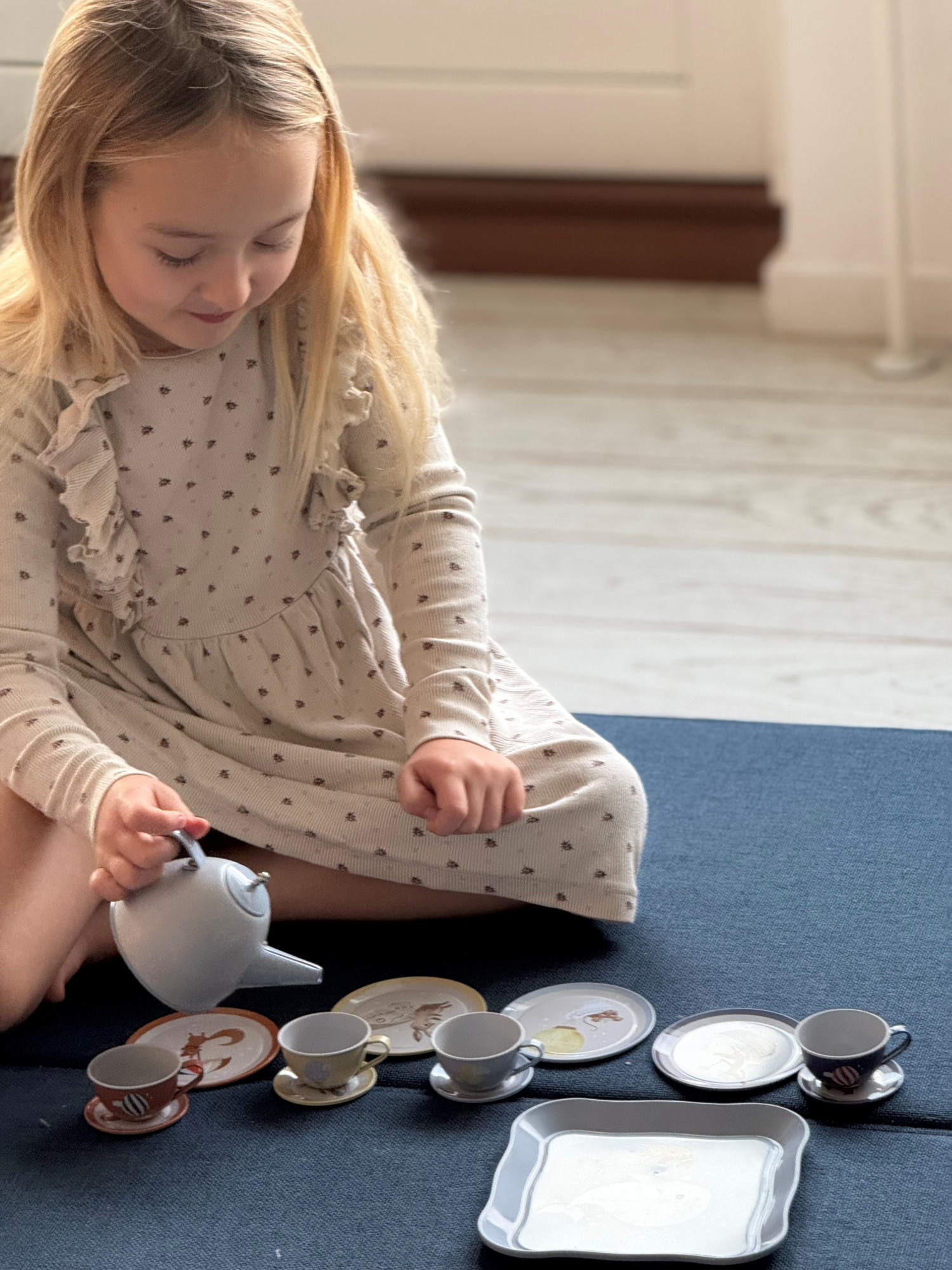 “Silje elsker rollelege og har flittigt inviteret på te og kage siden hun fik det fine sæt.”