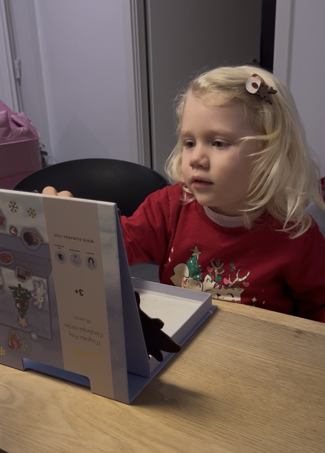 “Begejstringen var stor, da denne pakke kom ind ad døren. Silje elsker alt, der har med vinter og jul at gøre – og det gør moren også.”