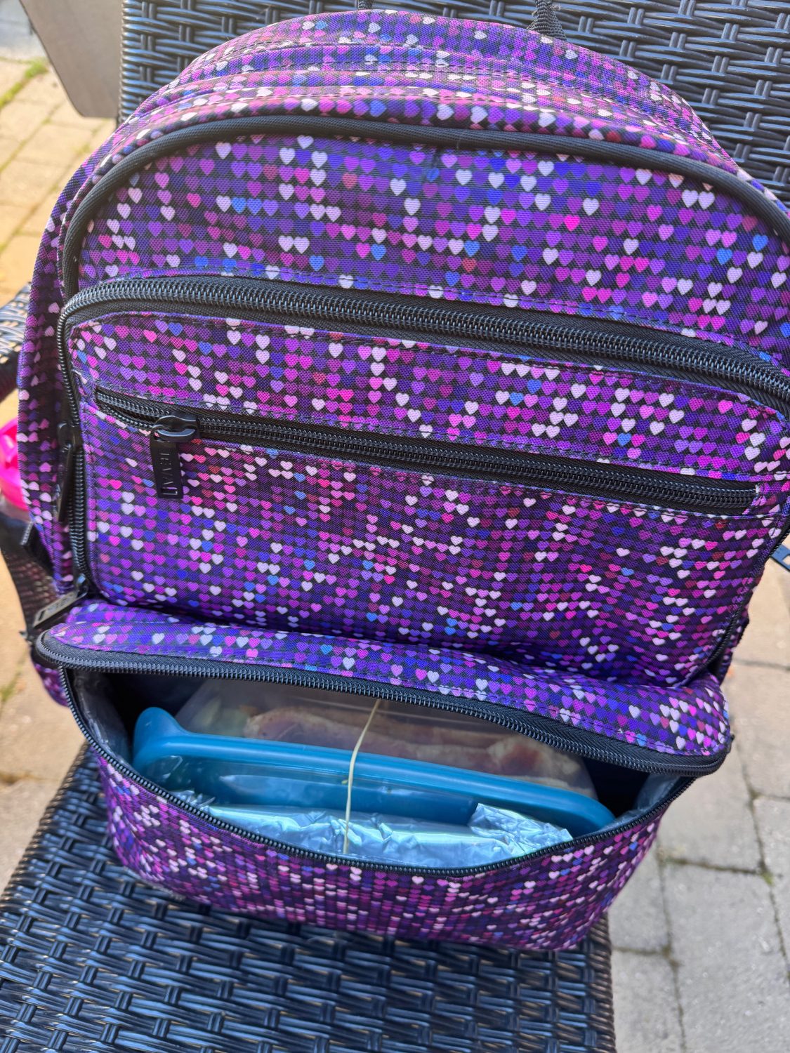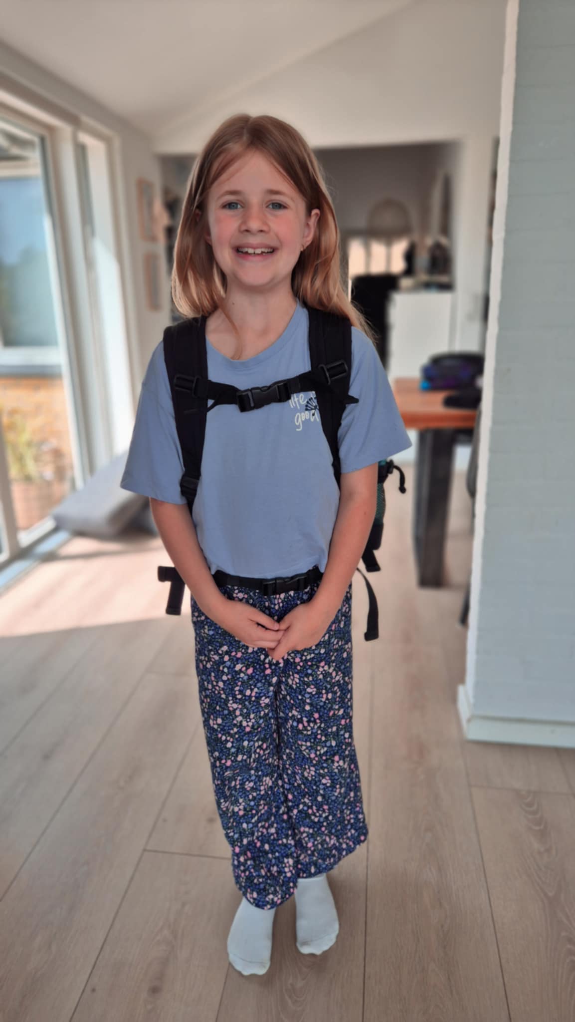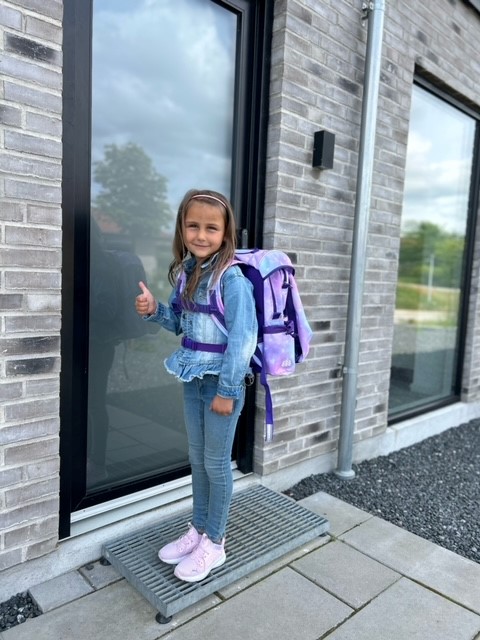 Caylee pü 6 ür har testet JEVA Square med hoftespÌnde. Selvom modellen egentlig henvender sig til børn i 3. til 5. klasse, oplevede familien, at den passede virkelig godt til hende allerede nu. Louise fremhÌver isÌr taskens overskuelighed, de mange rum og den gode ergonomi.