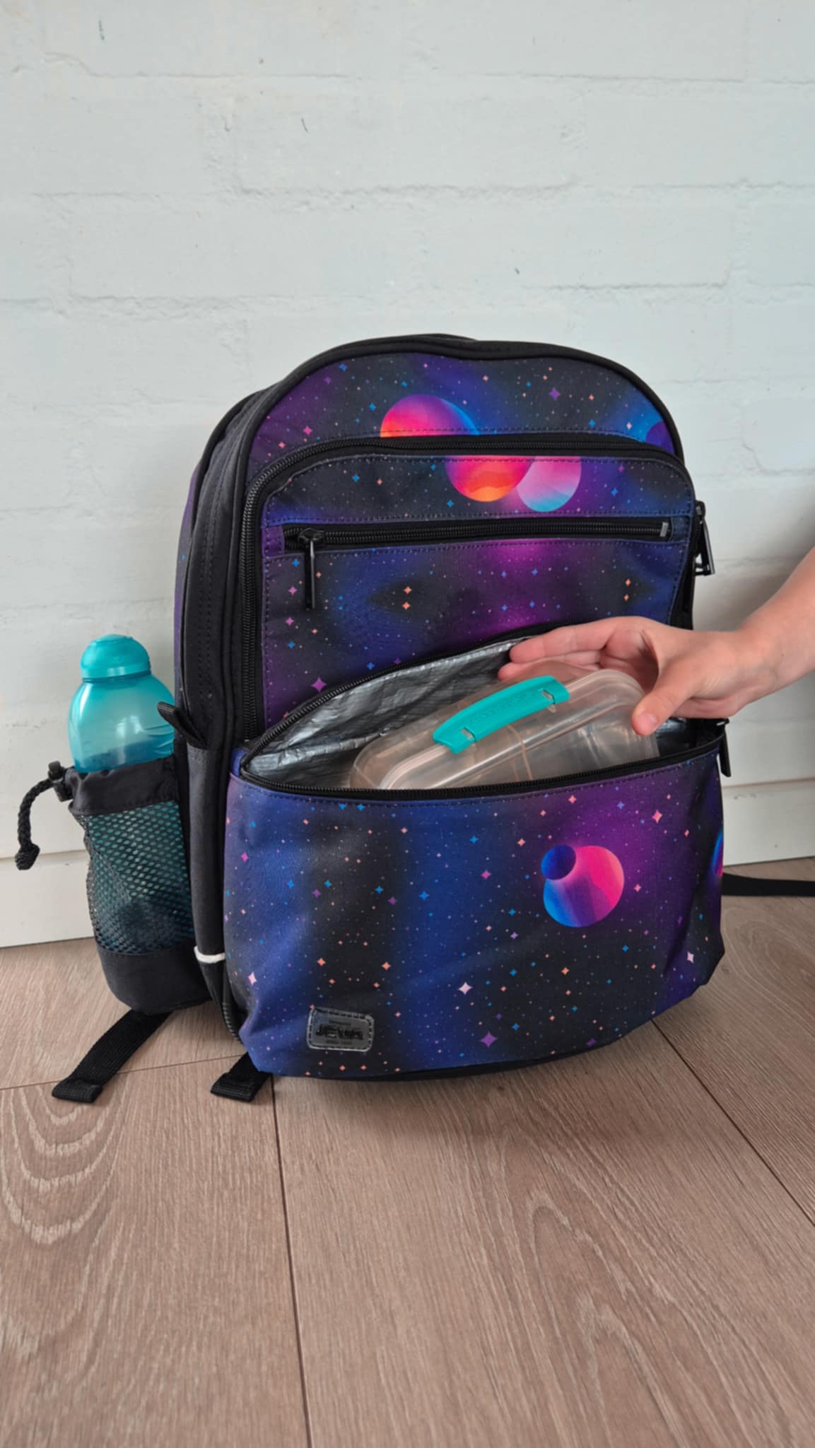 JEVA Square i Jupiter-print â en rummelig og ergonomisk skoletaske til de større skolebørn