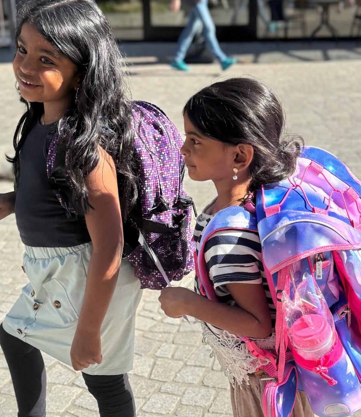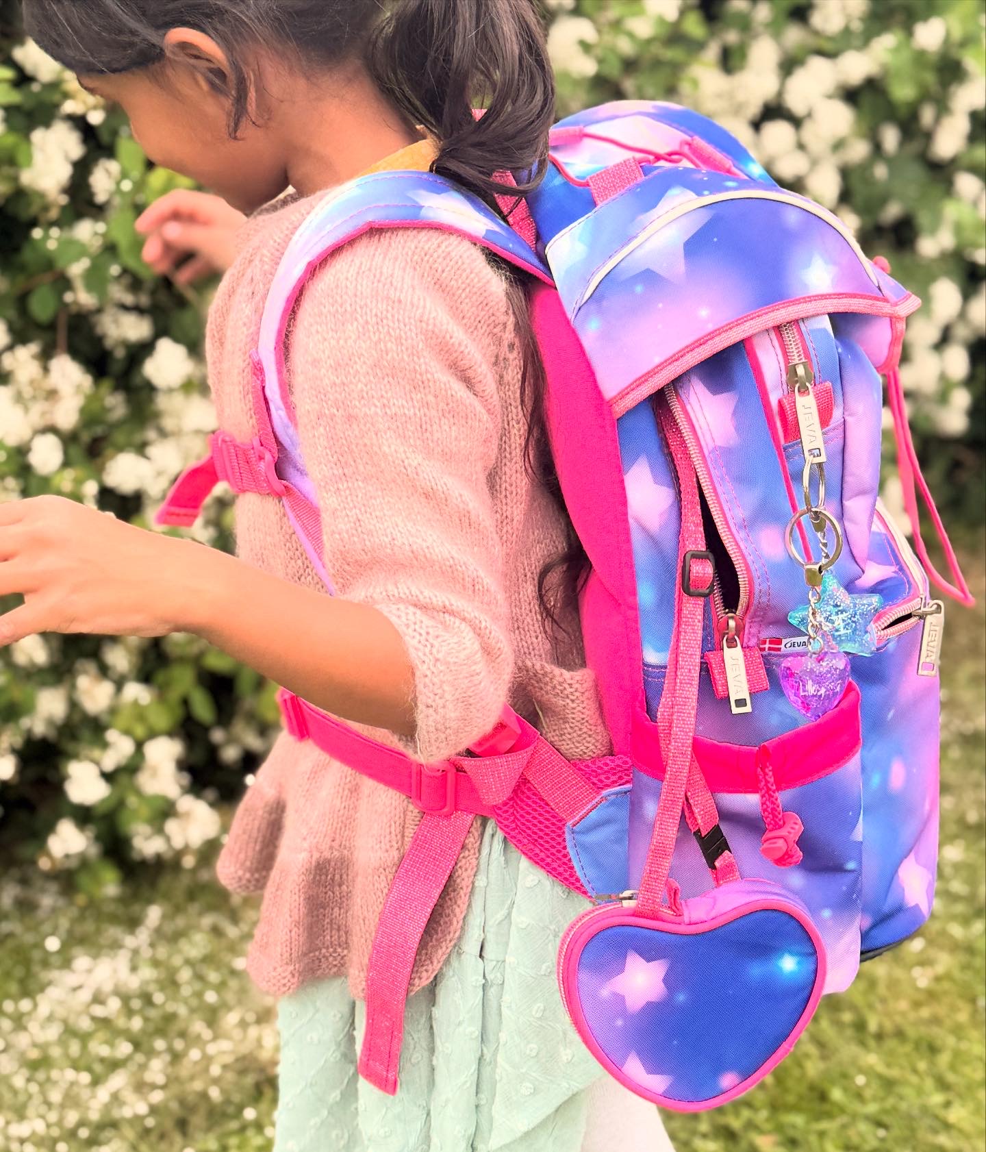 Charmilies piger har testet to modeller fra JEVA. Anjali testede Supreme, mens Imaya testede Intermediate. Familien oplever, at modellerne passer rigtig godt til hver deres alder og behov, og de fremhÌver isÌr de polstrede stropper, den gode rygstøtte og taskernes brugervenlighed.