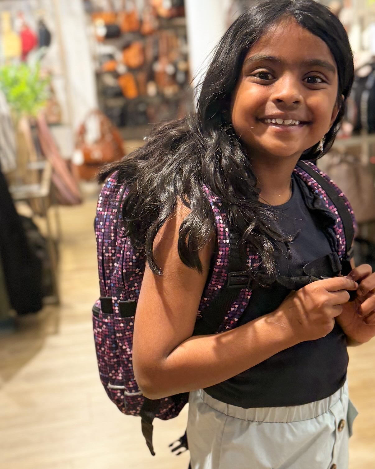 âMalia var flyvende og havde virkelig en fest, da hun fik lov til at vĂŚlge sin egen skoletaske, penalhus og drikkedunk.â