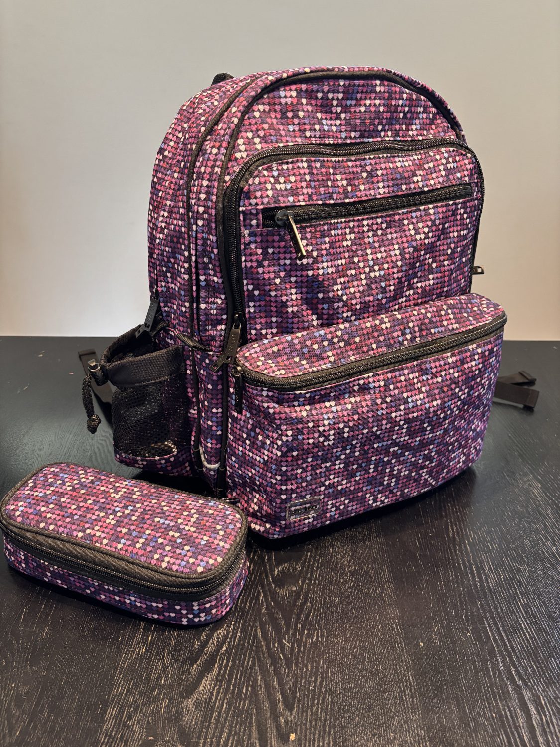 âGymnastikpose, penalhus, drikkedunk og en lille hjerteformet taske gør tasken ekstra spĂŚndende for barnet.â
