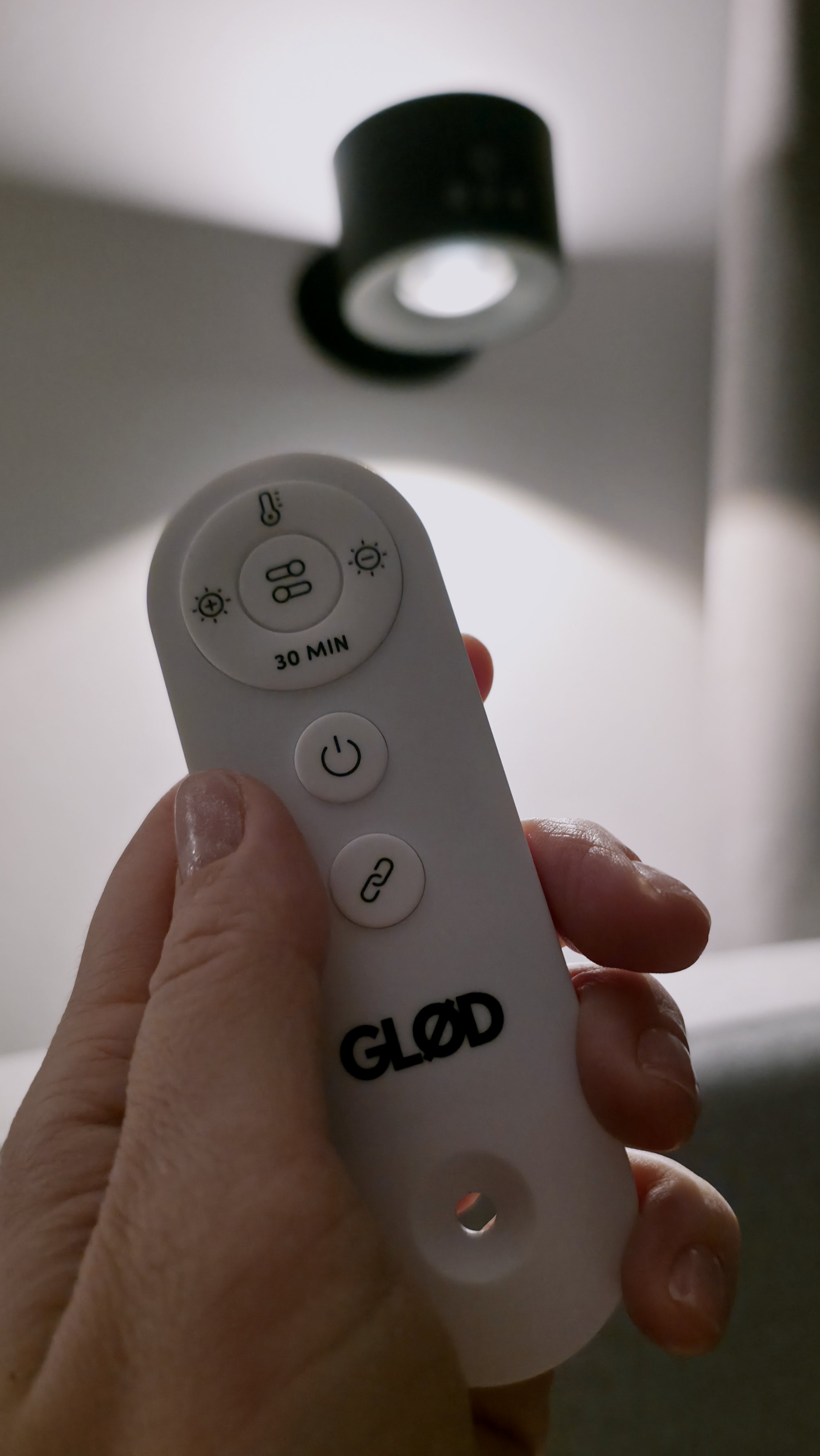 âLampen kan tĂŠndes og slukkes direkte pĂ„ enheden eller via fjernbetjening.â