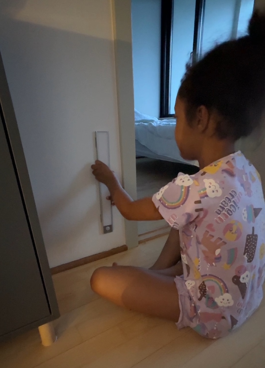 âPĂ„ badevĂŠrelset giver de et behageligt lys om natten, og under vores datters seng fungerer den som en smart natlampe.â