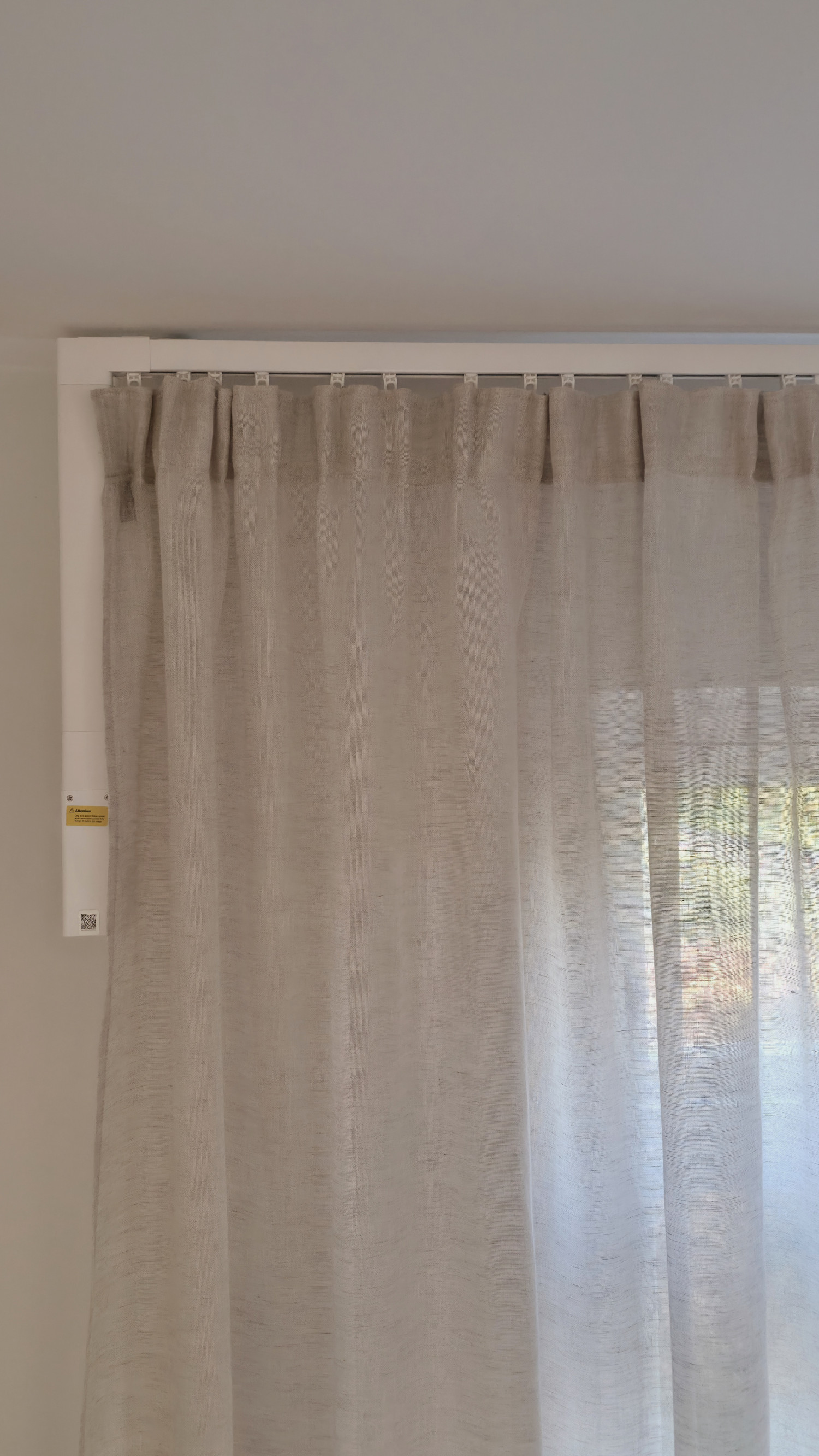 Skinnen kan monteres bĂĽde i loft og pĂĽ vĂŚg og fĂĽs i flere lĂŚngder, sĂĽ den passer til forskellige vinduer og rum. Den diskrete motor drives af et genopladeligt USB-C-batteri, som nemt skjules bag gardinet og kun skal oplades cirka ĂŠn gang om ĂĽret. Det betyder ingen synlige ledninger og et stilrent udtryk, der passer perfekt ind i moderne hjem.