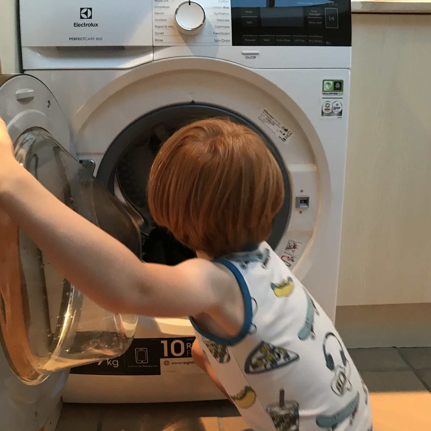 âMed to børn ryger der en del tøj igennem maskinen. Det er smart, at den selv beregner vasketiden alt efter fyldning. Og sĂĽ er det altid dejligt med en lille hjĂŚlper.â