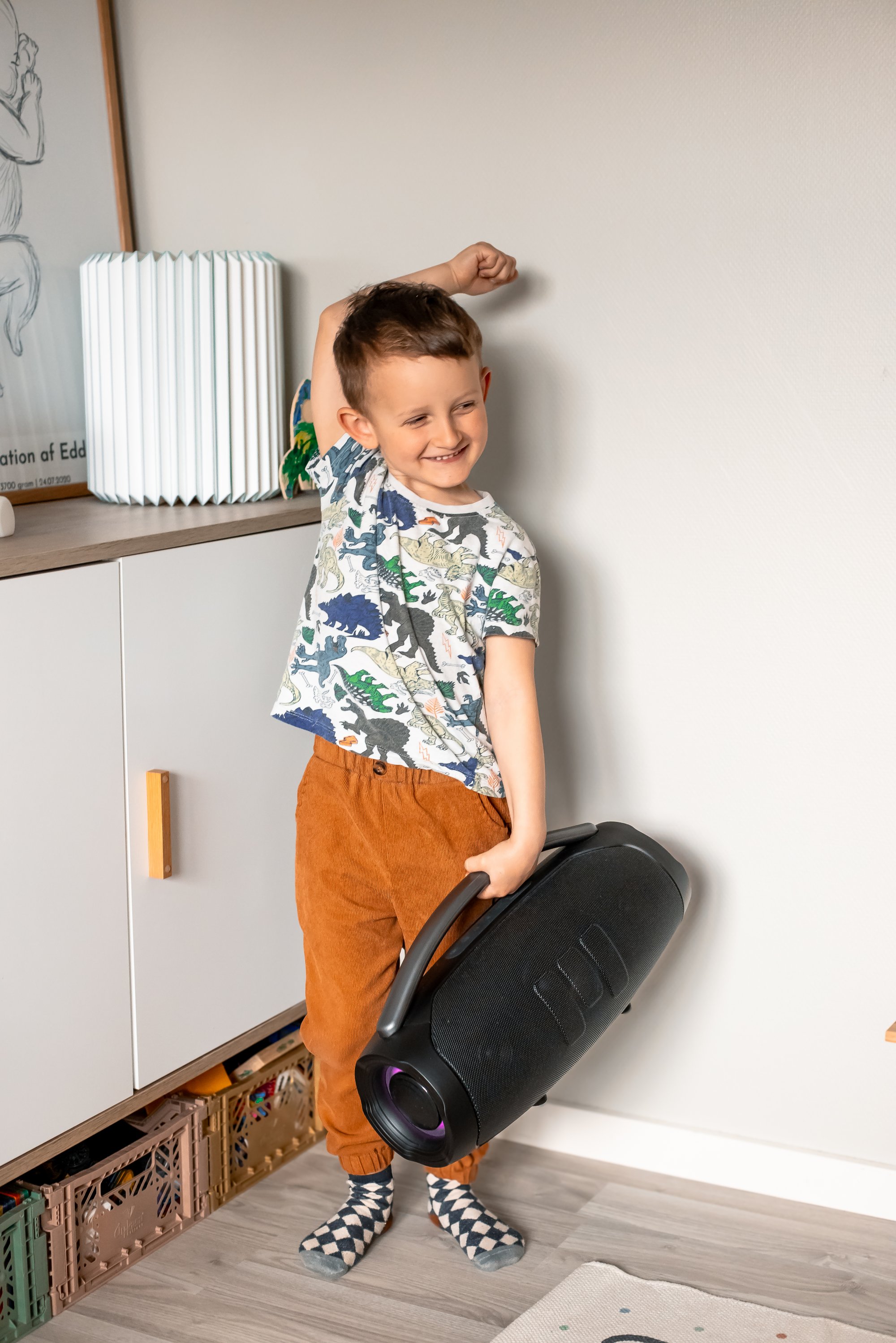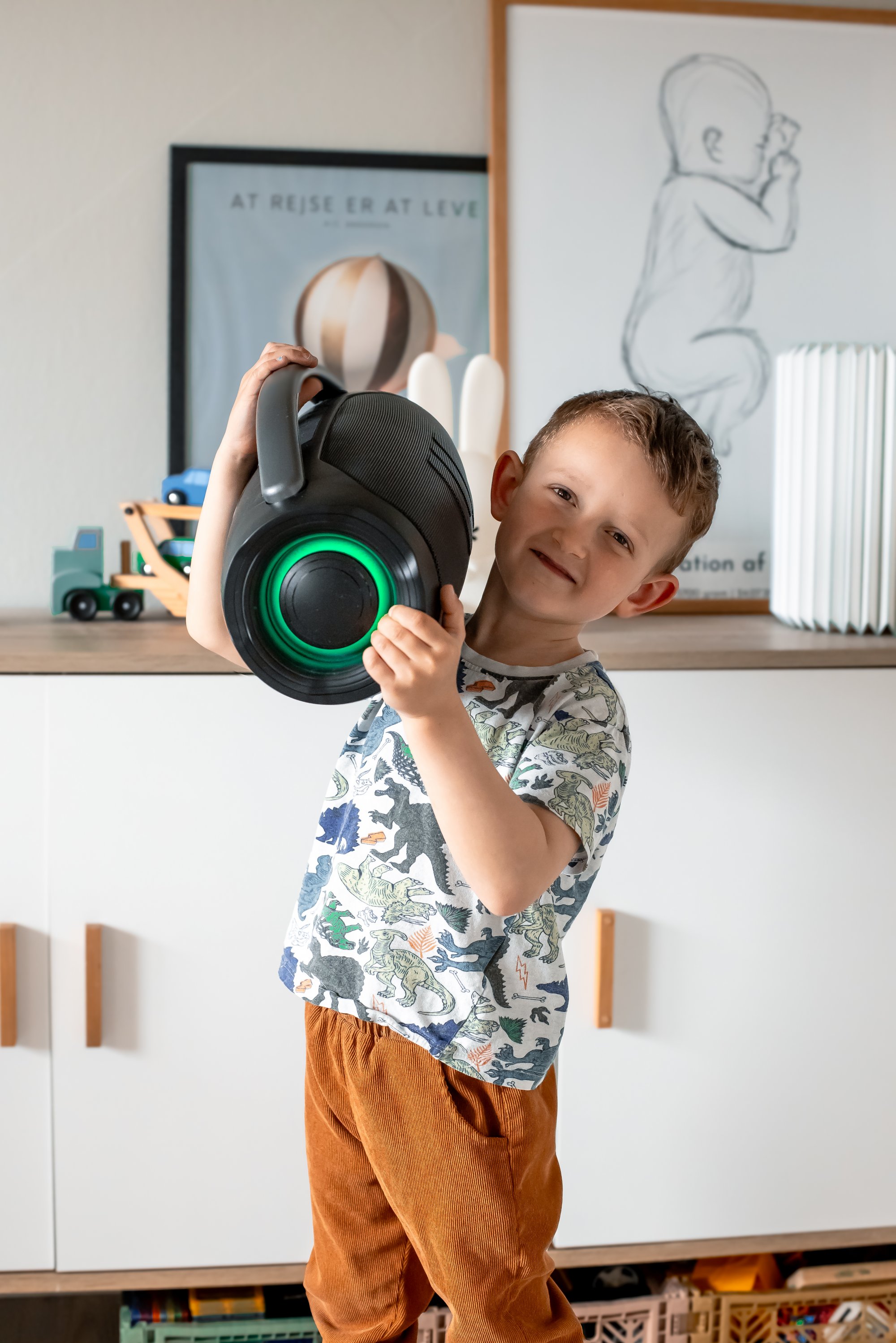 Højttaleren samler familien â hvad enten det er til leg pĂĽ vĂŚrelset, hygge i haven eller spontane dansefester.