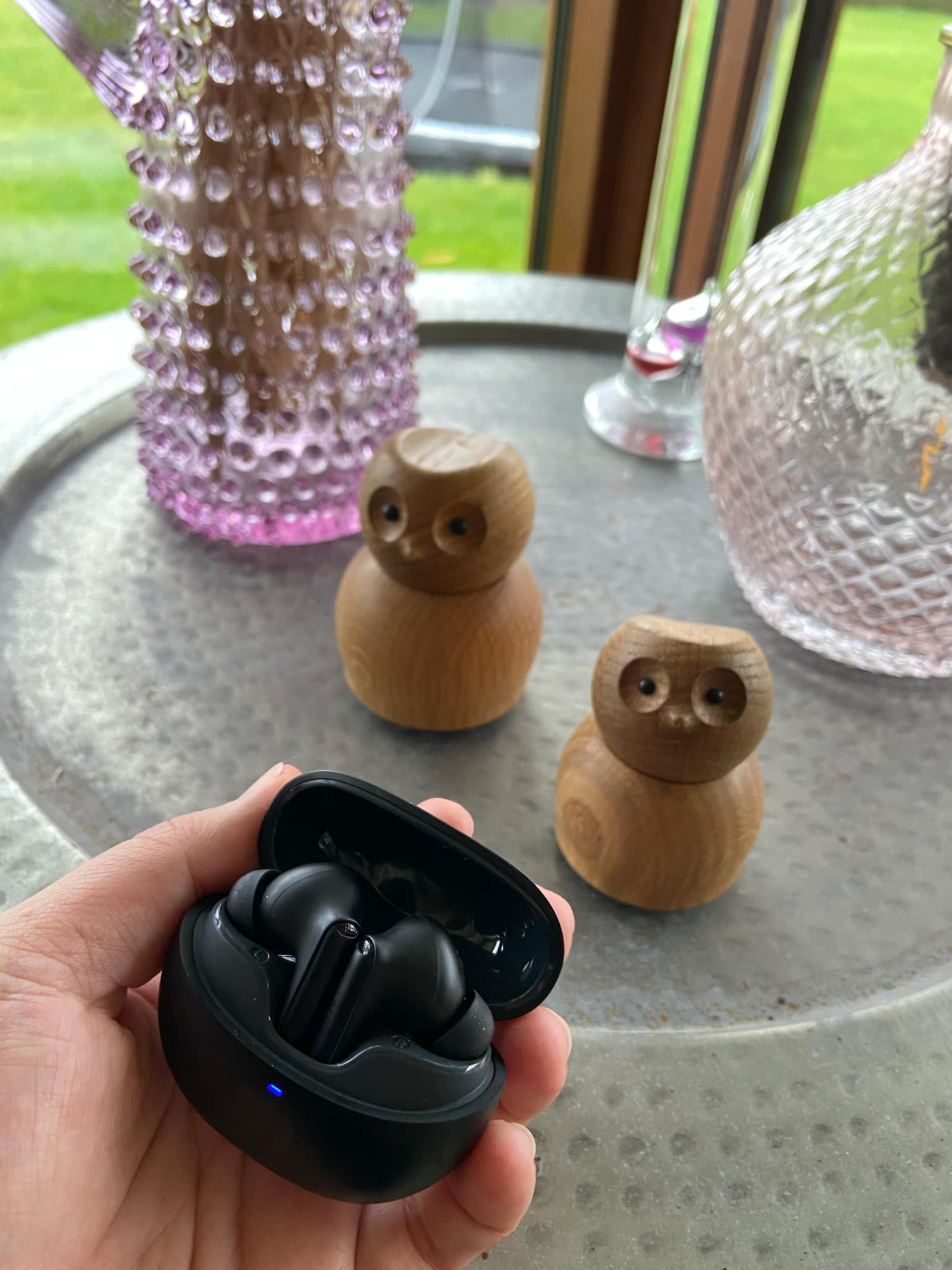 Kunne helt sikkert godt finde på at købe eller ønske mig produktet selv. Det er ikke noget, jeg bruger helt vildt til hverdag, men når jeg putter vores søn, som nogle gange godt kan tage lang tid, eller når jeg går i haven, er det virkelig rart og have en podcast i ørerne, så man kan holde sig underholdt. Det eneste er, at de er ret følsomme, så når jeg indimellem har skulle rette på dem, eller har skulle skubbe dem helt på plads har jeg lige fået pauset det, jeg har hørt, men det er jo nemt at trykke start på dem igen, så det er ikke det helt vilde problem.